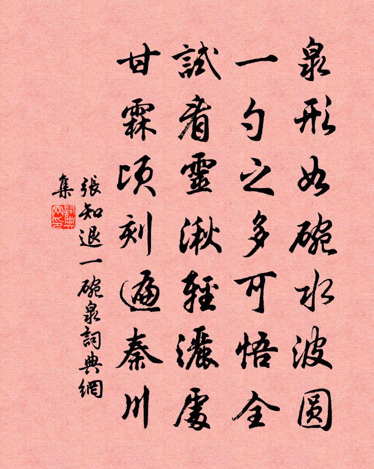 詩詞名句歷史字典書法欣賞書法字典國語詞典說文解字康熙字典古漢語字典標 題 作 者 詩 句 一盌泉作者:張知退 朝代:宋代一盌泉原文泉形如盌水波圓,一勺之多可悟全。試看靈湫輕灑處,甘霖頃刻遍秦川。詩詞問答問:一盌泉的作者是誰?答:張知退問:一盌泉寫於哪個朝代?答:宋代張知退一盌泉書法欣賞一盌泉書法作品詩詞推薦和趙仲白陳宓〔宋代〕不踏人間桃李場,要看梅花帶嚴霜。敷成妙賦飄飄意,吐出新詩字字香。爽致青山期取友,高情春晝與俱長。蘇黃大中祥符封禪十首真宗〔宋代〕祗若封祀,神宗配天。禮樂明備,奠獻精虔。景靈來格,休祥藹然。於昭垂慶,億萬斯年。尋趙安道舊居趙與予為昭武隔政交承窗前種竹王洋〔宋代〕周家卜政幾專城,曾見長身掩重名。但願常教劉向在,不應異姓敢爭明。贈郭翰二首織女〔唐代〕河漢雖雲闊,三秋尚有期。情人終已矣,良會更何時。朱閣臨清溪,瓊宮銜紫房。佳情期在此,只是斷人腸。思佳客陳允平〔宋代〕一曲清歌酒一鍾。舞裙搖曳石榴紅。寶箏弦矗冰蠶縷,珠箔香飄水麝風。嬌婭奼,笑迎逢。合歡羅帶兩心同。彩雲菩薩蠻(廣陵盛事)蔡伸〔宋代〕水光山影浮空碧。柳絲搖曳春無力。柳岸系行舟。 * 憶舊遊。舊遊堪更憶。望斷迷南北。千古恨悠悠。長江空自北邙山沈佺期〔唐代〕北邙山上列墳塋,萬古千秋對洛城。城中日夕歌鐘起,山上唯聞松柏聲。句林憲〔宋代〕絕無聲色動凡情。句邵伯溫〔宋代〕白頭老守無風味,不解尋春只杜門。南紀黃文雷〔宋代〕南紀沾王澤,涵濡已百年。故應逢小劫,何得怨蒼天。舊觀寧無日,浮生自可憐。永懷千古事,感慨淚漣漣。恭上人求偈戲贈二首劉克莊〔宋代〕爾祖西來無文字,受持一句心是佛。煩恭藏主試問他,楞伽四卷是何物。遣季子壽黃循齋二首陽枋〔宋代〕五峰高處五雲新,黃石先生非避秦。圯上未空書出袖,岩前元自易無塵。煙霞窟冷苦留客,雲霧窗虛亦可人。好為賀新郎佚名〔宋代〕一點芳心事。秋夕不寐寄樂天劉禹錫〔唐代〕洞戶夜簾卷,華堂秋簟清。螢飛過池影,蛩思繞階聲。老枕知將雨,高窗報欲明。何人諳此景,遠問白先生。酬秦系山人題贈皎然〔唐代〕雲林出空烏未歸,松吹時飄雨浴衣。石語花愁徒自詫,吾心見境盡為非。次韻和純甫秋陰悶書強至〔宋代〕乾坤泱漭作秋容,節物情懷兩莫窮。山雨欲來陰竟日,溪雲不斷氣浮空。賴存樽酒時傾綠,更有歌裙可醉紅。偶爾奉和御製讀五代史後唐史夏竦〔宋代〕長興秉鈞者,子晦道攸隆。剛介昌言遠,忠清茂澤豐。懿文常體道,妙略早從戎。可惜虧同德,當年阻建功。偈頌二十一首釋堅璧〔宋代〕及時陽焰欲燒空,中有清涼一徑通。眾苦不來寒暑盡,鐵崑崙臥水晶宮。雨蘇軾〔宋代〕風師挾帝令,號呼肆徂征。雲師畏推逐,蓄意不敢爭。雨師曠厥官,所苟朝夕生。帝眷一夕回,旱識旦暮行。翻然獨酌試藥玉滑盞,有懷諸君子。明日望夜,月蘇軾〔宋代〕熔鉛煮白石,作玉真自欺。琢削為酒杯,規摹定州瓷。荷心雖淺狹,鏡面良渺彌。持此壽佳客,到手不容辭。曹侯名句推薦雲雷,屯;君子以經綸。佚名《易傳·象傳上·屯》 見人不正,雖貴不敬也;見人有污,雖尊不下也。司馬遷《史記·日者列傳》 堂前撲棗任西鄰,無食無兒一婦人。杜甫《又呈吳郎》 厭見千門萬戶,經過北里南鄰。王維《田園樂七首·其一》 日日雨不斷,愁殺望山人。賈島《望山》 以不忍人之心,行不忍人之政,治天下可運之掌上。孟子《孟子·公孫丑章句上·第六節》 玉在山而草木潤,淵生珠而崖不枯。荀子《荀子·勸學》 路上有飢人,家中有剩飯。佚名《增廣賢文·上集》 簾控鉤,掩上珠樓,風雨替花愁喬吉《春閨怨·不系雕鞍門前柳》 不是誠齋無月,隔一林修竹。楊萬里《好事近·七月十三日夜登萬花川谷望月作》
