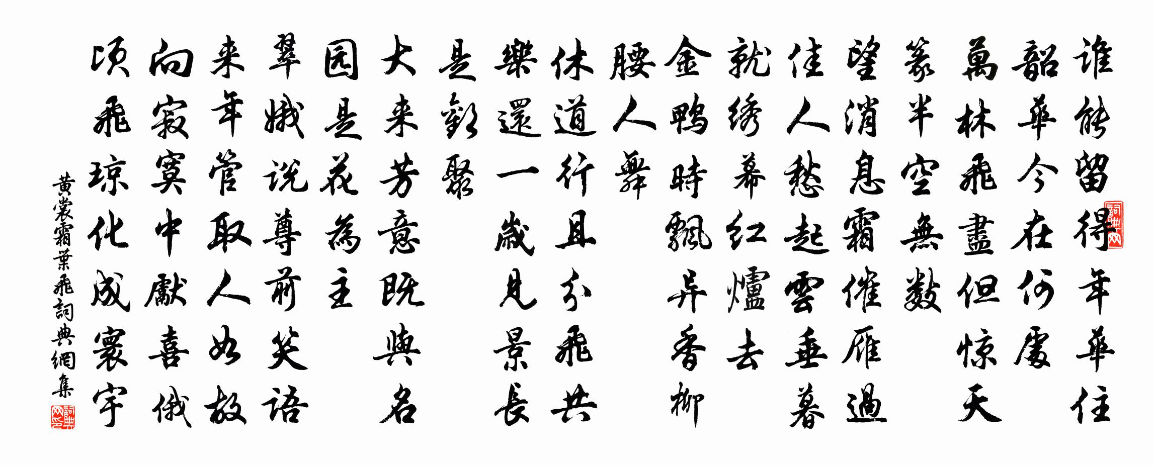 詩詞名句歷史字典書法欣賞書法字典國語詞典說文解字康熙字典古漢語字典標 題 作 者 詩 句 霜葉飛作者:黃裳 朝代:宋代霜葉飛原文誰能留得年華住。韶華今在何處。萬林飛盡,但驚天篆,半空無數。望訊息、霜催雁過,佳人愁起雲垂暮。就繡幕、紅爐去。金鴨時飄異香,柳腰人舞。休道行且分飛,共樂還一歲,見景長是歡聚。大來芳意,既與名園,是花為主。翠娥說、尊前笑語,來年管取人如故。向寂寞,中先喜,俄頃飛瓊,化成寰宇。詩詞問答問:霜葉飛的作者是誰?答:黃裳問:霜葉飛寫於哪個朝代?答:宋代問:霜葉飛是什麼體裁?答:詞黃裳霜葉飛書法欣賞霜葉飛書法作品詩詞推薦偶題(前首一作杜光庭詩)鄭遨〔唐代〕似鶴如雲一個身,不憂家國不憂貧。擬將枕上日高睡,賣與世間榮貴人。帆力劈開滄海浪,馬蹄踏破亂山青。浮名清平樂(居厚弟生日)劉克莊〔宋代〕人間喘汗。無計翻銀漢。有個至人來震旦。宴坐補陀岩畔。吾聞福壽難量。待看海底生桑。乞取淨瓶一滴,普教大哭柏岩和尚賈島〔唐代〕苔覆石床新,師曾占幾春。寫留行道影,焚卻坐禪身。塔院關松雪,經房鎖隙塵。自嫌雙淚下,不是解空人。奉和詠風應魏王教虞世南〔唐代〕逐舞飄輕袖,傳歌共繞樑。動枝生亂影,吹花送遠香。劉氏館集隱客、歸和、子元、及之、子蒙、晦之元稹〔唐代〕濕墊緣竹徑,寥落護岸冰。偶然沽市酒,不越四五升。詩客愛時景,道人話升騰。笑言各有趣,悠哉古孫登。縣齋秋懷程公許〔宋代〕藍案環吏牘,朱墨勘舛差。自公借隙光,書函眩眼花。千里有命駕,同心樂無涯,秋空霜月明,秋山雲氣佳。留連青玉案元好問〔金代〕熙春台下花無數。紅紫映桃溪路。蝶往蜂來知幾許。翠筠亭外,綠楊堤畔,時聽嬌鶯語。綺筵羅列開尊俎。總是神數日訴牒苦多憊甚戲作陸游〔宋代〕江南五月暑猶薄,梅子正黃風雨惡。庭中訟獠不貸人,急甚常如虎遭縛,空齋鼠跡留幾塵,賦詩飲酒疑前身。脫歸下京口埭夜行孫逖〔唐代〕孤帆度綠氛,寒浦落紅曛。江樹朝來出,吳歌夜漸聞。南溟接潮水,北斗近鄉雲。行役從茲去,歸情入雁群。菩薩蠻佚名〔宋代〕昔年曾伴花前醉。今年空灑花前淚。花有再榮時。人無重見期。故人情義重。不忍營新寵。日月有盈虧。妾心無改夜坐油盡戲作陸游〔宋代〕金樽畫燭少年豪,白首孤燈不厭勞。夜漏雖深書未竟,半缸誰與續殘膏?菩薩蠻(雙松庵月下賞梅)李廌〔宋代〕城陰猶有松間雪。松間暗淡城頭月。月下幾枝梅。為誰今夜開。尊前簪素髮。自擁繁枝折。疑是在瑤台。寶燈攜手和段相公登武擔寺西台姚向〔唐代〕開閣錦城中,餘閒訪梵宮。九層連晝景,萬象寫秋空。天半將身到,江長與海通。提攜出塵土,曾是穆清風。送陸侍御歸越盧方春〔宋代〕喈喈風雨余,出晝意何如。鏡里無慚色,囊中有諫書。寒崖立松柏,清廟失璠璵。海內看霜月,光明只似初。憶王孫汪元量〔宋代〕心中無事氣神和。不覺忻忻言語多。劍用衠磨更磨。害風哥。割了舌頭趕退魔。塞外雜詠林則徐〔清代〕天山萬笏聳瓊瑤,導我西行伴寂寥。我與山靈相對笑,滿天晴雪共難消。無題三首馬廷鸞〔宋代〕口語甘時心獨異,中邊甜處味方宜。詩情合薦東坡老,慚愧當年蜜荔枝。送李堅甫中舍奉使還闕文同〔宋代〕曾歌出塞愁,又遣使西州。去國星辰動,還家歲月流。褒斜新路晚,鄠杜故園秋。歸對延和殿,從容問講求。登潤州芙蓉樓崔峒〔唐代〕上古人何在,東流水不歸。往來潮有信,朝暮事成非。煙樹臨沙靜,雲帆入海稀。郡樓多逸興,良牧謝玄暉。塞下曲蘇佑〔明代〕將軍營外月輪高,獵獵西風吹戰袍。觱篥無聲河漢轉,露華霜氣滿弓刀。名句推薦那年離別日,只道住桐廬。劉采春《囉嗊曲·那年離別日》 霰雪紛其無垠兮,雲霏霏而承宇。屈原《九章》 燕雀安知鴻鵠之志。司馬遷《史記·陳涉世家》 老吾老,以及人之老;幼吾幼,以及人之幼司馬光《資治通鑑·漢紀·漢紀四十二》 長者梢,深者底。宋濂、王褘《元史·列傳·卷二》 桐葉落,蓼花殘。雁聲天外寒。張淑芳《更漏子·秋》 巧言令色,鮮矣仁。孔子弟子《論語·學而篇》 善在身,介然必以自好也;不善在身,菑然必以自惡也。荀子《荀子·修身》 日往菲薇,月來扶疏。左思《三都賦》 別來春半,觸目柔腸斷。李煜《清平樂·別來春半》