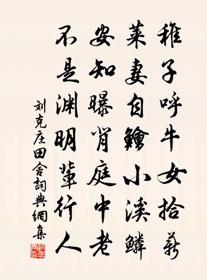 稚子呼牛女拾薪,萊妻自鱠小溪鱗。安知曝背庭中老,不是淵明輩行人。