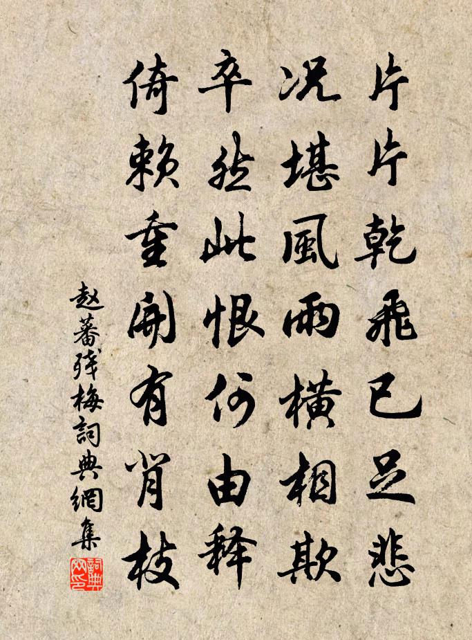 詩詞名句歷史字典書法欣賞書法字典國語詞典說文解字康熙字典古漢語字典標 題 作 者 詩 句 殘梅作者:趙蕃 朝代:宋代殘梅原文片片乾飛已足悲,況堪風雨橫相欺。卒然此恨何由釋,倚賴重開有背枝。詩詞問答問:殘梅的作者是誰?答:趙蕃問:殘梅寫於哪個朝代?答:宋代趙蕃殘梅書法欣賞殘梅書法作品詩詞推薦工部尚書致仕王懿敏公輓詞王珪〔唐代〕慷慨當年論太平,諫書雖在已塵生。三秋勝氣橫金甲,半夜離歌掩玉笙。許下綠槐空自老,匣中長劍為誰鳴。壯圖雜曲歌辭。如意娘武則天〔唐代〕看朱成碧思紛紛,憔悴支離為憶君。不信比來長下淚,開箱驗取石榴裙。紹定閩寇平上功省府黃伯鄭清之〔宋代〕君莫愁,君莫愁,不龜澼絖能封侯。君莫愁,君莫愁。腰六相印一敝裘。看渠涎顙與躄足,千金信矣壺中流。荻花李留後家聞箏坐上作歐陽修〔宋代〕不聽哀箏二十年,忽逢纖指弄鳴弦。◇蠻巧囀花間舌,嗚咽交流冰下泉。常謂此聲今已絕,問渠從小自誰傳。樽前湘東驛至萍鄉阮閱〔宋代〕萍鄉路與醴陵通,溪上長亭草木中。行盡江南有山處,門前隔水是湘東。酬施先輩孟簡〔唐代〕襄陽才子得聲多,四海皆傳古鏡歌。樂府正聲三百首,梨園新入教青娥。臨高台佚名〔兩漢〕臨高台以軒,下有清水清且寒。江有香草目以蘭,黃鵠高飛離哉翻。關弓射鵠,令我主壽萬年。見雪王冕〔元代〕窮居忘節序,見雪卻憂寒。漸漸山河失,依依道路難。故人迷信息,無客渡乾桑。況爾西南地,疲民夜不安。冬夜讀几案間雜書得六言二十首劉克莊〔宋代〕叔夜真龍鳳矣,嗣宗猶螟蠃然。一以廣陵散死,一以勸進表全。題陳叔虎繡梅花扇楊萬里〔宋代〕掯下生寒影,針端即化工。冰痕將雪點,不受燭光融。論詩三十首·二十四元好問〔金代〕“有情芍藥含晚淚,無力薔薇臥晚枝”。拈出退之山石句,始知渠是女郎詩。以讀書破萬卷下筆如有神為韻賦十詩送趙然然方回〔宋代〕所謂先天易,諸人識不破。獨一觀物翁,入手不放過。太極是生兩,然後品物播。參以邵子言,佛老義自墮。詠梅雜詩張道洽〔宋代〕小小茅茨野老家,不隨桃李競春華。欲知格韻真孤絕,禿盡千林始一花。問調鼎邵雍〔宋代〕請將調鼎問於君,調鼎功夫敢預聞。只有鹽梅難盡善,豈無薑桂助為辛。和羹必欲須求美,眾口如何便得均。慎勿課伐木杜甫〔唐代〕長夏無所為,客居課奴僕。清晨飯其腹,持斧入白谷。青冥曾巔後,十里斬陰木。人肩四根已,亭午下山麓。尚聞早起吳儆〔宋代〕積雨霽窮秋,柴扃立清曉。溪光照煙岫,未覺秋容老。溪邊烏臼林,他日沒飛鳥。濃綠半枯枝,殷紅亂衰草。搖落待千岩姜夔〔宋代〕若人金石心,試命洞庭浪。傳聞下巴陵,瀝酒喜無恙。我行丹楓林,屢騁白苹望。烏鵲不可嗔,論功當坐上。蜀國弦劉基〔明代〕胡笳拍斷玄冰結,湘靈曲終斑竹裂。為君更奏《蜀國弦》,一彈一聲飛上天。蜀國周道五千里,蛾眉岧岧連玉壘。放舟風復不順,再泊馬當,對岸夾中馬當水府范成大〔宋代〕萬里江隨倦客東,馬當山嘴勒孤篷。無才解賦珠簾雨,誰肯相賒一席風。次韻梔杭七言劉子翬〔宋代〕酒香渾若過新豐,心事悠悠冷笑中。徹夜道傍梔葉雨,幾年馬上桂枝風。高情未許愁心挽,歸意惟應夢可通。準擬名句推薦灞原風雨定,晚見雁行頻。馬戴《灞上秋居》 去年折贈行人遠,今年恨、依然縴手。吳文英《花心動·柳》 黃埃散漫風蕭索,雲棧縈紆登劍閣。白居易《長恨歌》 透內閣香風陣陣,掩重門暮雨紛紛。王實甫《十二月過堯民歌·別情》 若是前生未有緣,待重結、來生願。樂婉《卜運算元·答施》 知文德武功,蓋因時而並用魏徵《隋書·列傳·卷三十二》 民力盡於無用,財寶虛於待客。墨子《墨子·05章 七患》 菊花何太苦,遭此兩重陽?李白《九月十日即事》 野鴉無意緒,鳴噪自紛紛。杜甫《孤雁 / 後飛雁》 相思相見知何日?此時此夜難為情!李白《三五七言 / 秋風詞》