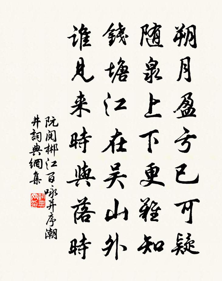 詩詞名句歷史字典書法欣賞書法字典國語詞典說文解字康熙字典古漢語字典標 題 作 者 詩 句 郴江百詠並序潮井作者:阮閱 朝代:宋代郴江百詠並序潮井原文朔月盈虧已可疑,隨泉上下更難知。錢塘江在吳山外,誰見來時與落時。詩詞問答問:郴江百詠並序潮井的作者是誰?答:阮閱問:郴江百詠並序潮井寫於哪個朝代?答:宋代阮閱郴江百詠並序潮井書法欣賞郴江百詠並序潮井書法作品詩詞推薦瑞光亭有作丘葵〔宋代〕終年蕭寺裹,人跡往來稀。雀踏梁塵落,蜂穿森屑飛。佛幡書古偈,僧壁掛禪衣。此景惟予愛,冷然契道機。望江南吳潛〔宋代〕家山好,一室白雲中。時喚道人談命蒂,也呼和尚說禪宗。孔佛老和同。淘汰盡,八面總玲瓏。欲把捉時無把捉,雨中買酒鏡湖酒樓陸游〔宋代〕陰風號大澤,暮雨上高樓。愁憶新豐酒,寒思季子裘。登臨天地迮,老病歲時遒。安得急裝去,北平防盛秋。與胡汾坐月期貫休上人不至曹松〔唐代〕掃庭秋漏滴,接話貴忘眠。靜夜人相語,低枝鳥暗遷。星圍南極定,月照斷河連。後會花宮子,應開石上禪。初識茶花陳與義〔宋代〕伊軋籃輿不受催,湖南秋色更佳哉。青裙玉面初相識,九月茶花滿路開。贈沛禪師皇甫曾〔唐代〕南嶽滿湘沅,吾師經利涉。身歸沃洲老,名與支公接。淨教傳荊吳,道緣止漁獵。觀空色不染,對境心自愜。室中春日湖上五首釋斯植〔宋代〕雨余蛙吹歇池塘,庭院人閒日正長。獨倚畫欄看不盡,海棠無處是山光。次韻沈興這稅院歲幕即事二首林表民〔宋代〕穿雲時有一鴻聲,喚雪風來冷更清,臘意未教梅萼老,春風先放柳條成。亂離每嘆兵難戢,貧賤還憂道不鳴。節物次韻劉帥出郊一首劉克莊〔宋代〕競逐朱轓載酒行,熙熙物態與人情。浴沂我欲尋儒服,涉洧公方厭鄭聲。試問冶容遨夜市,何如赤腳饁春耕。故山頌古一百二十一首釋宗杲〔宋代〕日是禍門,電激雷奔。娑竭出海,震動乾坤。被命南遷途中寄定武同僚蘇軾〔宋代〕人事千頭及萬頭,得時何喜失時憂。只知紫綬三公貴,不覺黃粱一夢遊。適見恩綸臨定武,忽遭分職赴英州。南行過能仁光孝寺欲訪聽老會府中速客遂不果入陸游〔宋代〕春日城南過寶坊,馳驅不得駐車箱。高門臨道淨如拭,傑屋凌空勢欲翔。齋近鍾魚初送響,風微松檜自生香。暫來送周器之歸潤再索王令〔宋代〕何須別子始沾衣,久有江南去夢飛。為語青山幸相望,壯夫終不白頭歸。冬夜聞蛩顧逢〔宋代〕尚有一蛩在,悲吟廢草邊。想於深夜裡,自憶早秋前。勝負皆成夢,孤寒似可憐。晚年飄泊老,此況亦同然。贈絲桐墨蕙呂能甫淮東制閫之客陳郁〔宋代〕子向詩書外,萬於藝事優。桐絲傳古意,蘭墨寫離愁。黃閣能知己,朱衣必點頭。從來奇特士,何患不封侯。為牟德范題石湖遺墨意有未盡復賦五首方回〔宋代〕日長飢雀窺鐺釜,雨過跳蛙上灶爐。莫笑曬書亡玉軸,荊州還識半人無。予控免不獲命恭讀詔書聖訓有朕正欲為卿直前岳珂〔宋代〕平生一寸心,不為世塗折。平生七尺軀,擬慕志士烈。吾門古喬木,每抱歲寒節。三世秉一心,炯炯常不滅。雖如游九鎖楊伯岩〔宋代〕亭前絕壁下飛瀑,天風夜半吹韶鹹。疑是銀河天上不,壯士挽落千丈岩。高宗皇帝輓詞五首陳居仁〔宋代〕漢日朝前殿,神堯宴大安。徒夸一時盛,誰似兩宮歡。謾采瀛洲藥,猶除荊鼎丹。傷心浙江畔,縞仗自迴鑾。杏溪十首石瀨姚合〔唐代〕散漫復潺湲,半砂半和石。清風波亦無,歷歷魚可搦。我來亦屢久,歸路常日夕。名句推薦枝枝相覆蓋,葉葉相交通。佚名《孔雀東南飛 / 古詩為焦仲卿妻作》 待何年歸去,談笑各爭雄。顧太清《高山流水·次夫子清風閣落成韻》 勞歌一曲解行舟,紅葉青山水急流。許渾《謝亭送別》 釀泉為酒,泉香而酒洌;歐陽修《醉翁亭記》 大江流日夜,客心悲未央。謝朓《暫使下都夜發新林至京邑贈西府同僚》 說詩者,不以文害辭,不以辭害志。以意逆志,是為得之。孟子《孟子·萬章章句上·第四節》 鑒懸日月,辭富山海。百齡影徂,千載心在。劉勰《文心雕龍·徵聖》 有耳莫洗潁川水,有口莫食首陽蕨李白《行路難三首》 似醉煙景凝,如愁月露泫。崔護《五月水邊柳》 賞罰如加於身,賦斂如取己物。此愛民之道也。姜子牙《六韜·文韜·國務》