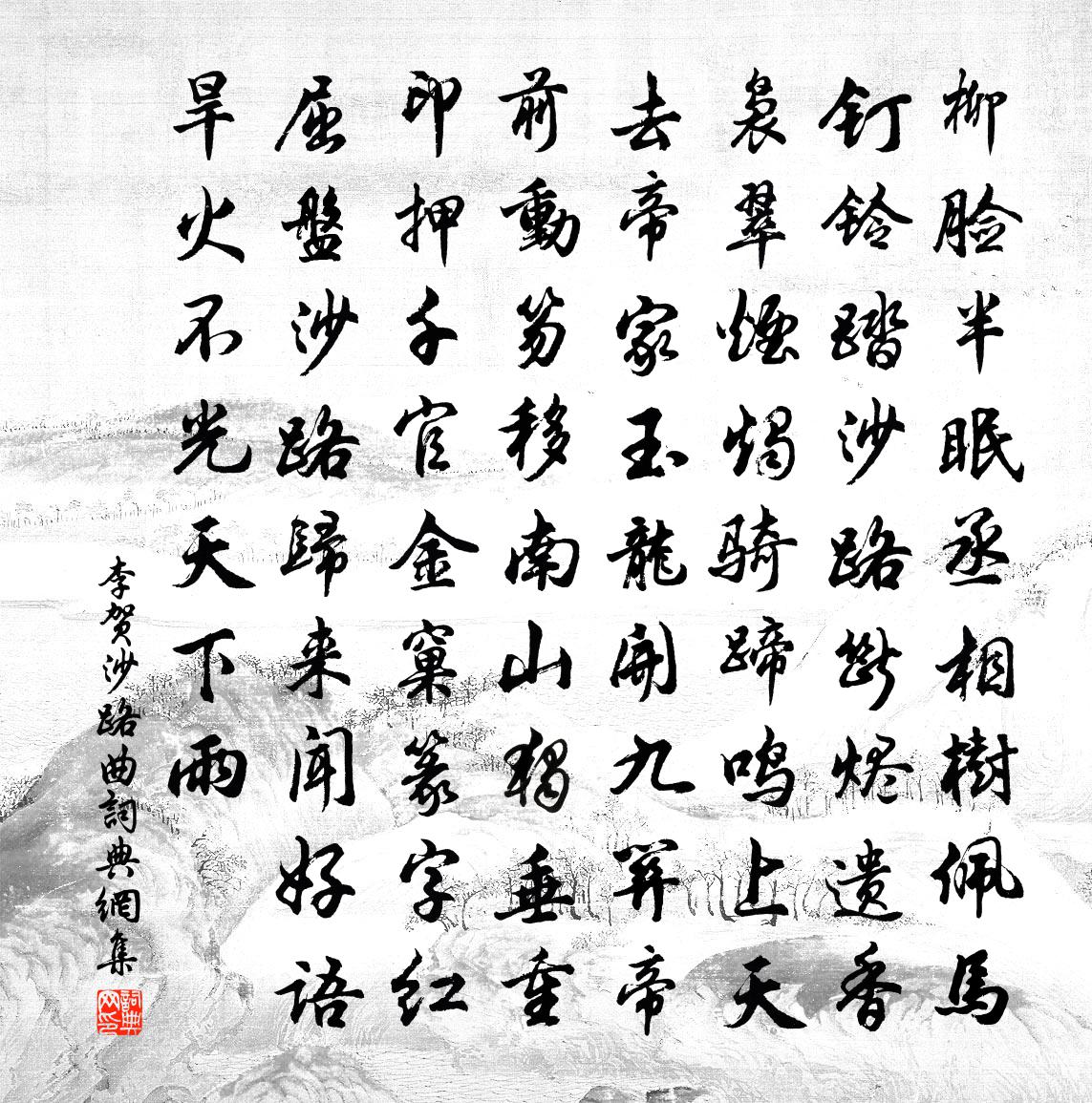 柳臉半眠丞相樹,佩馬釘鈴踏沙路。斷燼遺香裊翠煙,燭騎蹄鳴上天去。