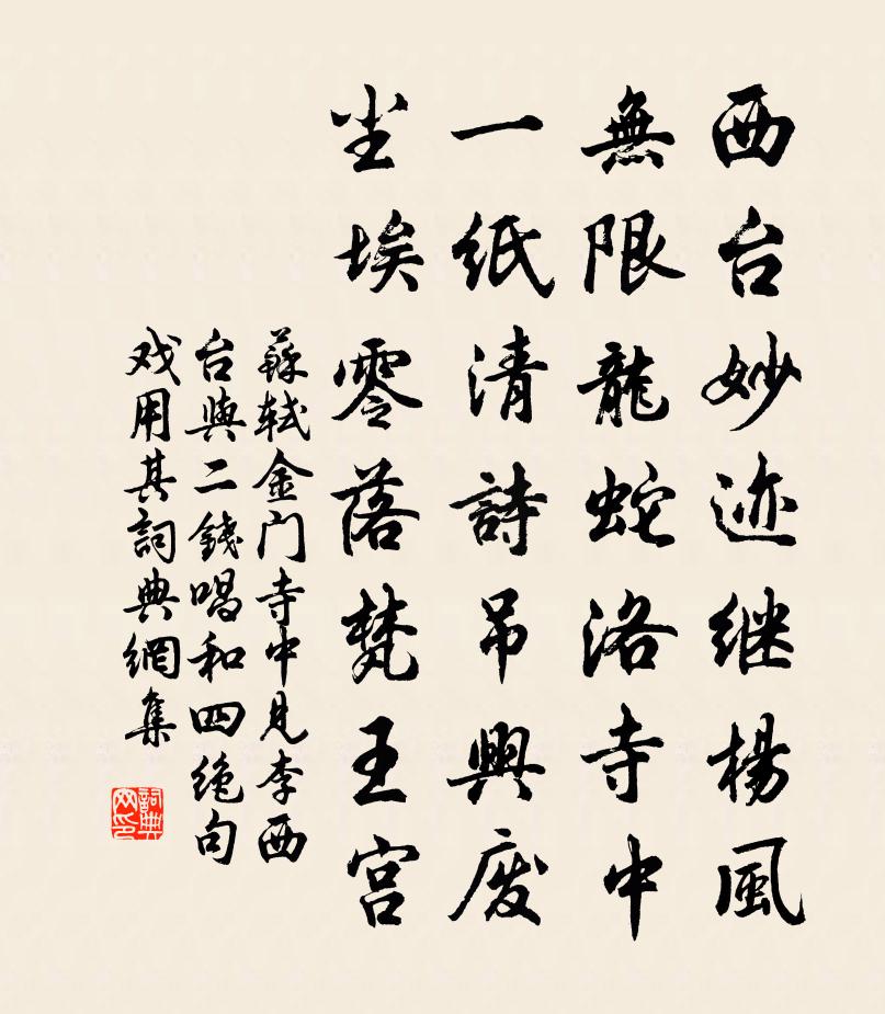 西台妙跡繼楊風,無限龍蛇洛寺中。一紙清詩吊興廢,塵埃零落梵王宮。