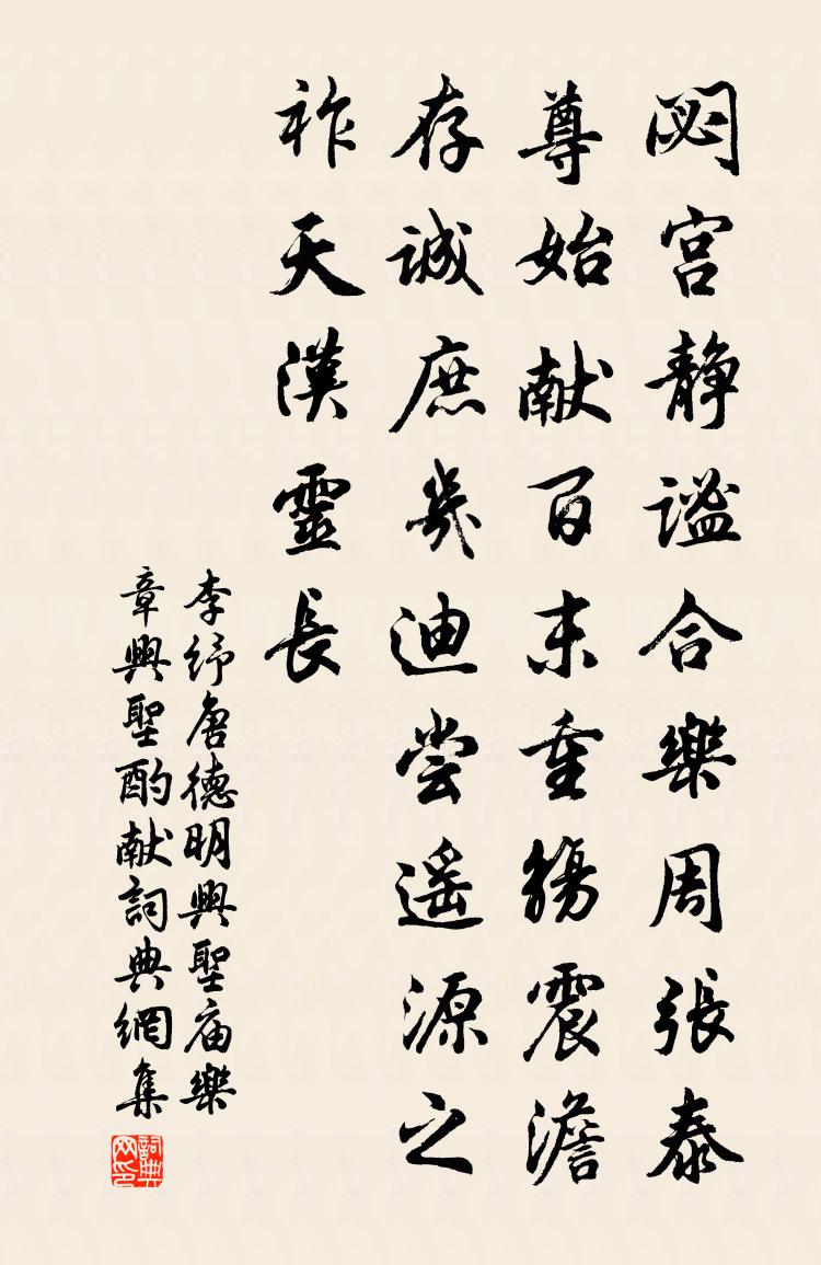 詩詞名句歷史字典書法欣賞書法字典國語詞典說文解字康熙字典古漢語字典標 題 作 者 詩 句 唐德明興聖廟樂章興聖酌獻作者:李紓 朝代:唐代唐德明興聖廟樂章興聖酌獻原文閟宮靜謐,合樂周張。泰尊始獻,百末重觴。震澹存誠,庶幾迪嘗。遙源之祚,天漢靈長。詩詞問答問:唐德明興聖廟樂章興聖酌獻的作者是誰?答:李紓問:唐德明興聖廟樂章興聖酌獻寫於哪個朝代?答:唐代李紓唐德明興聖廟樂章興聖酌獻書法欣賞唐德明興聖廟樂章興聖酌獻書法作品注釋全唐詩:卷252_20詩詞推薦奉寄旌德尉劉申之敖陶孫〔宋代〕諸劉兄弟賢,一一無可選。竹林銳頭郎,風味吾小阮。平生天機深,善閉得內楗。邇來卿何曹,不辨折腰本。稍傳擬古張九成〔宋代〕山色翠挼藍,杯中酒如玉。飲酒彈瑤琴,漫奏流水曲。音微澹無味,弦緩軫不促。不須苦求知,古人有遺躅。推琴扇子詩李石〔宋代〕江海翱翔地,舟行岸自移。無心波浪里,鷗鳥不須疑。最高樓 壽松巢次韻吳存〔元代〕南州士,人品用番川。春動九霞筵。皋比早志青雲上,角巾晚傲白雲邊。喜諸孫,蘭灑灑,玉娟娟。笑七十、曲江蟲豸詩。蜘蛛(三首)元稹〔唐代〕蜘蛛天下足,巴蜀就中多。縫隙容長踦,虛空織橫羅。縈纏傷竹柏,吞噬及蟲蛾。為送佳人喜,珠櫳無奈何。網密謹和老人夏日東山即事二首洪咨夔〔宋代〕菜把野園送,花枝鄰巷附。搗蟾和絳雪,騎鬥弄青霞。古帖臨禽李,新詩續稻瓜。晚涼隨杖履,攜酒訪魚槎。自永康還連日又告旱懇祈勤恪初四五日再得甘程公許〔宋代〕穉苗甦醒曉風涼,老魃匆匆遽俶裝。旬浹望霓心肺渴,暫須一啜露華香。送薛秀才歸鄉余靖〔宋代〕半歲接高論,一朝歸故關。道存慙設醴,別易忍登山。進即龜龍瑞,退當江海閒。無為牽俗趣,碌碌利名間。邊城獨望馬戴〔唐代〕聊憑危堞望,暗起異鄉情。霜落蒹葭白,山昏霧露生。河灘胡雁下,戎壘漢鼙驚。獨樹殘秋色,狂歌淚滿纓。寄拄杖上王使君貫休〔唐代〕拄杖鄰僧與,殊常不可名。一條黳玉重,百兩紫金輕。有乳盤春力,無心合道情。惟宜高處著,將寄謝宣城。興福院僧房陳舜俞〔宋代〕東西遊遍雨山村,梔子黃時橘滿園。唯有小軒臨小澗,病僧欹枕聽潺湲。閒居釋子淳〔宋代〕回途玉馬休相伴,背角泥牛莫下鞭。多謝乾坤垂覆載,閒雲芳草恣情眠。贈金斗相士姚勉〔宋代〕君月金斗盍自珍,持此量我非其人。欲我覓印如蘇秦,我寧滿吃三斗塵。贈徑山銛書記陸游〔宋代〕徑山老將無勍敵,百萬魔軍俱掃跡。座下何人策雋功,籌略縱橫銛記室。銛公聲名滿吳會,惟有放翁最先識。奕奕關中送別薛能〔唐代〕一行千里外,幾事寸心間。才子貧堪嘆,男兒別是閒。黃河淹華岳,白日照潼關。若值鄉人問,終軍賤不還。與青城道人飲酒作陸游〔宋代〕君不見太傅晚歲具海舟,歸欲極意東山游;翰林偶脫夜郎謫,大醉賦詩黃鶴樓。兩公窮達何足道,同是逸氣橫清秋題時覺寺在在堂十二首舒坦〔宋代〕小白山前大白山,兩山強坐屬僧閒。何時卜築三椽地,黃帽青鞋日往還。秋雨嘆三首杜甫〔唐代〕雨中百草秋爛死,階下決明顏色鮮。著葉滿枝翠羽蓋,開花無數黃金錢。涼風蕭蕭吹汝急,恐汝後時難獨立。堂上征婦詞十首劉克莊〔宋代〕寬作三年別,安知四序遷。可憐容鬢改,人有幾三年。送李講主還維揚強至〔宋代〕定憶婆娑樹,雙垂滿地陰。春風吹社燕,歸意逐淮禽。帆落橫江盡,門開小院深。先撾 * 鼓,續震海潮音。名句推薦曉月過殘壘,繁星宿故關。司空曙《賊平後送人北歸》 挽弓當挽強,用箭當用長。杜甫《前出塞九首》 撫我則後,虐我則仇。佚名《尚書·周書·泰誓》 不似春風逞紅艷,鏡前空墜玉人釵。司空圖《華下對菊》 中心愿,平虜保民安國。宋江《滿江紅·喜遇重陽》 美不美,鄉中水;親不親,故鄉人。佚名《增廣賢文·上集》 更無柳絮因風起,惟有葵花向日傾。司馬光《客中初夏》 女慕貞潔,男效才良。周興嗣《千字文·全文》 虛空落泉千仞直,雷奔入江不暫息。徐凝《廬山瀑布》 世治不輕,世亂不沮;同弗與,異弗非也。戴聖《禮記·儒行》