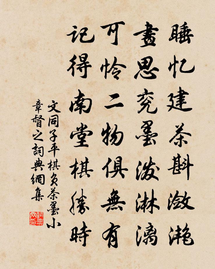 詩詞名句歷史字典書法欣賞書法字典國語詞典說文解字康熙字典古漢語字典標 題 作 者 詩 句 子平棋負茶墨小章督之作者:文同 朝代:宋代子平棋負茶墨小章督之原文睡憶建茶斟瀲灩,畫思兗墨潑淋漓。可憐二物俱無有,記得南堂棋勝時。詩詞問答問:子平棋負茶墨小章督之的作者是誰?答:文同問:子平棋負茶墨小章督之寫於哪個朝代?答:宋代文同子平棋負茶墨小章督之書法欣賞子平棋負茶墨小章督之書法作品詩詞推薦出遊陸游〔宋代〕朝行躡屩穿幽谷,暮返褰裳涉亂流。提起短筇成一笑,每煩上座為分憂。秋晚獨步華岳〔宋代〕十分秋色著岩桂,幾陣晚涼催井桐。自恨異鄉知遇少,一樽相屬與誰同。南鄉子佚名〔宋代〕欄檻對幽堂,翠葉枝頭萬朵霜。檀口乍開龍麝噴,非常。體勝佳人異骨香。花與月爭光。偏引蜂兒戲繞牆。不與群鳥栖曲二首司馬光〔宋代〕昨疏月明漏水長,羅幃翠帳華燈光。佳人起舞玉釵隋,門久鳥栖雁南過。青玉案蔡伸〔宋代〕鸞凰本是和鳴友。奈無計、長相守。雲雨匆匆分袂後。彩舟東去,櫓聲嘔軋,目斷長堤柳。涓涓清淚輕綃透。殘粉到嚴十五晦朔郡釀不佳求於都下既不時至欲借陸游〔宋代〕桐君故隱兩經秋,小院孤燈夜夜愁。名酒過於求趙璧,異書渾似借荊州。溪山勝處身難到,風月佳時事不休。安得江上暫別蕭四劉三旋欣接遇陳子昂〔唐代〕昨夜滄江別。言乖( 一作乘 )天漢游。寧期此相遇。尚接武陵洲。結綬還逢育。銜杯且對劉。波潭一瀰瀰。臨白雲峽范成大〔宋代〕雙溪疑從銀漢下,我欲窮源問仙舍。飛瀾濺沫漱籃輿,卻望兩崖天一罅。疏疏暑雨滑危梯,策策山風掖高駕。幽尋和袁郎中破賊後經剡縣山水上太尉李嘉祐〔唐代〕受律仙郎貴,長驅下會稽。鳴笳山月曉,搖旆野雲低。翦寇人皆賀,回軍馬自嘶。地閒春草綠,城靜夜烏啼。破竹泛清溪入齊山孔武仲〔宋代〕轉轎南堤太阻長,不如乘興泛輕航。園林蔭翳清如簟,禽鳥將迎語有簧。溪是明河天上去,山疑方丈石中藏。衣巾和答詩十首。和雉媒白居易〔唐代〕吟君雉媒什,一哂復一嘆。和之一何晚,今日仍成篇。豈唯鳥有之,抑亦人復然。張陳刎頸交,竟以勢不完。至今題資福院平綠軒二首陳炳〔宋代〕白髮流年迅,青春盡日閒。煙消漁捨出,風約櫓聲還。往事空搔首,微官只強顏。漂零那對此,歸夢繞雲山。臨江仙范成大〔宋代〕萬事灰心猶薄宦,塵埃未免勞形。故人相見似河清。恰逢梅柳動,高興逐春生。卜晝匆匆還卜夜,仍須月墜河傾。九張機南宋無名〔宋代〕一張機,採桑陌上試春衣。風晴日暖慵無力,桃花枝上,啼鶯言語,不肯放人歸。西地錦佚名〔宋代〕嶺上初消殘雪。有梅花先坼。東君造化多成翠,巧風韻奇絕。小院黃昏時節。暗香浮、疏影橫斜。寄取和羹未晚,緩歌行謝靈運〔南北朝〕飛客結靈友。凌空萃丹丘。習習和風起。采采彤雲浮。娥皇發湘浦。霄明出河洲。宛宛連螭轡。裔裔振龍旒。三日書懷因示百僚李适〔唐代〕佳節上元巳,芳時屬暮春。流觴想蘭亭,捧劍得金人。風輕水初綠,日晴花更新。天文信昭回,皇道頗敷陳。恭己立春前七日聞有預作春盤邀客者戲作陸游〔宋代〕蓼芽蔬甲簇青紅,盤箸紛紛笑語中。一餅不分空恨望,暮年知有幾春風?縣作鹿鳴會屈致冷副端席半出詩侑一獻次其韻孫介〔宋代〕早嘆朝陽一鳳鳴,幾多風奏動延英。只今故里夸閒適,得使諸生拜老成。妙句獨先歌白雪,歡顏親自酌烏程。鹿鳴送樊眉州李流謙〔宋代〕我先君子官於涪,一時賢僚今在不。唯公直節貫華皓,千尺壽檜橫霜秋。丈人靜聽請具陳,平生契義嘣肉侔。簡池名句推薦天街曾醉美人畔,涼枝移插烏巾。吳文英《夜飛鵲·蔡司戶席上南花》 信言不美,美言不信。善者不辯,辯者不善。知者不博,博者不知。老子《老子·德經·第八十一章》 國無義,雖大必亡;人無善志,雖勇必傷。劉安及其門客《淮南子·主術訓》 我寄愁心與明月,隨君直到夜郎西。李白《聞王昌齡左遷龍標遙有此寄》 春未綠,鬢先絲。人間別久不成悲。姜夔《鷓鴣天·元夕有所夢》 微暈嬌花濕欲流,簟紋燈影一生愁。納蘭性德《浣溪沙·詠五更和湘真韻》 掩妾淚,聽君歌。李白《夜坐吟》 落月滿屋樑,猶疑照顏色。杜甫《夢李白二首·其一》 自昔佳人多薄命,對古來、一片傷心月。辛棄疾《賀新郎·用前韻送杜叔高》 綠鬢能供多少恨,未肯無情比斷弦晏幾道《破陣子·柳下笙歌庭院》