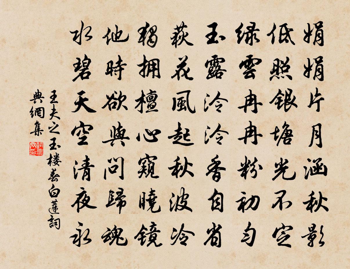 娟娟片月涵秋影,低照銀塘光不定。綠雲冉冉粉初勻,玉露泠泠香自省。
