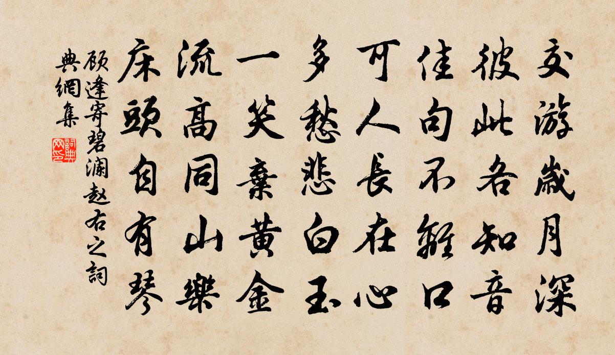 詩詞名句歷史字典書法欣賞書法字典國語詞典說文解字康熙字典古漢語字典標 題 作 者 詩 句 寄碧瀾趙右之作者:顧逢 朝代:宋代寄碧瀾趙右之原文交遊歲月深,彼此各知音。佳句不離口,可人長在心。多愁悲白玉,一笑棄黃金。流高同山樂,床頭自有琴。詩詞問答問:寄碧瀾趙右之的作者是誰?答:顧逢問:寄碧瀾趙右之寫於哪個朝代?答:宋代顧逢寄碧瀾趙右之書法欣賞寄碧瀾趙右之書法作品詩詞推薦海棠落盡葉間猶見數花姚勉〔宋代〕狼藉吹花一夜風,錦裀織就錦機空。葉間尚有餘春在,深處嬌藏四五紅。答問詩十二篇寄呈滿子權其二耒答鎛三首王令〔宋代〕我用常在金,任金適由木。苟得金為用,何惜木微曲。幸得主人隨,不恤汗行犢。必求隨主人,我用諴不足。南溪弄水,回望山園梅花楊萬里〔宋代〕梅從山上過溪來,近愛清溪遠愛梅。溪水聲聲留我住,梅花朵朵喚人回。泛舟至鏡湖旁小市陸游〔宋代〕久著朝衫負此湖,扁舟剩喜補東隅。市樓合樂醅新熟,寺壁殘詩字欲無。常日不堪愁宛轉,此行猶得笑須臾。夕陽送永叔歸乾德梅堯臣〔宋代〕淵明節本高,曾不為吏屈。斗酒從故人,籃輿傲華紱。悠然目遠空,曠爾遺群物。飲罷即言歸,胸中寧鬱郁。烏江道中聞杜鵑有感王之道〔宋代〕麻葉蓬蓬小麥肥,楊花風裡杜鵑啼。故園尚阻歸來賦,慚愧東坡雨一犁。垂虹俞桂〔宋代〕松江一景是虹橋,欲約騷人釣巨鰲。吳越封疆知幾夢,只今人物壯三高。雪天斫膾莎煙冷,秋月漁歌劍氣豪。收拾送圭士庵歸蜀釋法薰〔宋代〕昔日隨流今逆流,昔時今日有來田。李將軍本穿楊手,誤向南山射石頭。秋日後王建〔唐代〕住處近山常足雨,聞晴曬曝舊芳茵。立秋日後無多熱,漸覺生衣不著身。東西山二首洪咨夔〔宋代〕折屐碁邊情易矯,捋須箏畔淚難禁。何如拍手招元放,玉室金堂深更深。己未秋杪虜騎雲擾聖主神斷斥逐元奸台臣始有姚勉〔宋代〕窗紙暾紅枕上知,破寒初聽一聲雞。雖無風雨瀟瀟度,也勝鄰家曉不啼。素梅 五七王冕〔元代〕黃河十月冰如地,騎馬何人說好官?老子門前三丈雪,梅花開盡不知寒。玉馬山朱克家〔宋代〕水石嵌空山犖确,瘦藤扶上青雲幕。平川一望渺無際,東疑嵎夷北朔漠。駕天疊巘輸翠浪,奔野細流橫雪槊。疏峰胥集賢復舊官宋庠〔宋代〕鸞鵲驚飛詔檢開,唐家仙殿育英才。毫端誤墨讒蠅盡,塞上求群故馬來。咄咄書空徒有意,冥冥避弋本無猜。孤生公子行劉希夷〔唐代〕天津橋下陽春水,天津橋上繁華子。馬聲回合青雲外,人影動搖綠波里。綠波蕩漾玉為砂,青雲離披錦作霞。可憐訓世孝弟詩十首邵雍〔宋代〕子孝親兮弟敬哥,吁嗟分拆聽搬唉。囊中財物他嫌少,祖上田園你要多。夫婦眼前雖快樂,兒孫日後恐消磨。何如用夾穀子括吳山晚眺韻十首方回〔宋代〕湖共江寬更海寬,遙天縱玩復橫觀。雅知山對吟肩瘦,未怯霜欺醉面寒。感召豐登饒粒食,撫摩瘦敝起雕殘。生靈示元敏陸游〔宋代〕學問參千古,工夫始一經。寧論綬若若,且喜佩青青。汝業方當進,吾言要細聽。仍須知稼穡,勉為國添丁。過叔文園亭題於竹上趙蕃〔宋代〕一亭幽入徑,萬竹上參天。我欲成閒詠,君能起醉眠。清風誰為起,宿雨晝猶懸。莫砂此物聒,管弦非自然。偈頌二百零五首釋正覺〔宋代〕桃華浪里振修鱗,一躍龍門看化身。諦了十方三世事,無始的的自家春。名句推薦見梨花初帶夜月,海棠半含朝雨。万俟詠《三台·清明應制》 夫兩貴之不能相事,兩賤之不能相使,是天數也。荀子《荀子·王制》 商女不知亡國恨,隔江猶唱後庭花。杜牧《泊秦淮》 信使可覆,器欲難量。周興嗣《千字文·全文》 悅其名而喪其實。尹文《尹文子·大道上》 遺廟丹青落,空山草木長。杜甫《武侯廟》 白雲千里萬里,明月前溪後溪。劉長卿《謫仙怨·晴川落日初低》 槲葉落山路,枳花明驛牆。溫庭筠《商山早行》 舉善從諫,在上之明規; 進賢謁言,為臣之令范。姚思廉《陳書·本紀·卷五》 蝸角虛名,蠅頭微利,算來著甚乾忙。蘇軾《滿庭芳·蝸角虛名》