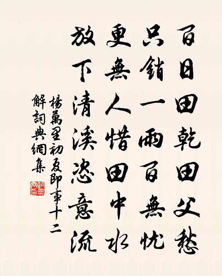 百日田乾田父愁,只銷一雨百無憂。更無人惜田中水,放下清溪恣意流。