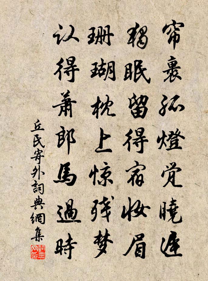詩詞名句歷史字典書法欣賞書法字典國語詞典說文解字康熙字典古漢語字典標 題 作 者 詩 句 寄外作者:丘氏 朝代:宋代寄外原文簾裹孤燈覺曉遲,獨眠留得宿妝眉。珊瑚枕上驚殘夢,認得蕭郎馬過時。詩詞問答問:寄外的作者是誰?答:丘氏問:寄外寫於哪個朝代?答:宋代丘氏寄外書法欣賞寄外書法作品詩詞推薦宿紹興釋紹嵩〔宋代〕小舟夜宿越州城,臥看星河盡意明。漏鼓乍聽連岸響,好風佳月總同盟。小西湖胡銓〔宋代〕沙鷗無事作群眠,亂荇縈風翠帶牽。波靜不憂無蒂櫨,心清聊溉不毛田。春夜雪再用韻十首楊公遠〔宋代〕雪霽風猶萬竅號,微吟擁鼻袖無羔。一寒如此還風味,和得詩成句法高。雨中至華下宿王山史家顧炎武〔清代〕重尋荒徑一衝泥,谷口牆東路不迷。萬里河山人落落,三秦兵甲雨淒淒。松陰舊翠長浮院,菊芯初黃欲照畦。自笑送潁陰張主簿宋庠〔宋代〕早服英雄彀,胡為州縣勞。荊璆不自鬻,郢雪向誰高。月鼓千聲疊,霜風萬竅號。行行星聚國,芳尺慰同袍。禪人並化主寫真求贊釋正覺〔宋代〕秋山骨瘦,秋水神清。岩松寒更翠,澗月夜還明。靈然曲木坐不語,四海九州俱太平。自述陸游〔宋代〕寄懷魚鳥臥煙汀,結友松筠醉草亭。拜賜龜章紆舊紫,養成鵠鬢掃余青。遺經在櫝傳家學,大字書牆作座銘。浪跡偈傾一百六十九首釋智朋〔宋代〕伶俐衲僧,討甚巴鼻。著腳處寸草不生,著眼時佛祖掃地。且道以何為扭,不愛南山愛鱉鼻。東庵新辟雲棧曹彥約〔宋代〕步出東門葦不航,以雲名棧正相當。地臨空闊天成險,水到迴旋石作梁。萬頃波濤一丘壑,百年官吏幾循良。古來哲宗皇帝輓詞四首張耒〔宋代〕萬世興王業,千年極治辰。澤丘還北祭,玉檢議東巡。汗竹人間事,因山地下春。雲天不可望,髯斷泣遺臣。余所居平泉村舍近蒙韋常侍大尹特改嘉名因寄詩以謝李德裕〔唐代〕未謝留侯疾,常懷仲蔚園。閒謠紫芝曲,歸夢赤松村。忽改蓬蒿色,俄吹黍谷暄。多慚孔北海,傳教及衡門。再用韻賦木犀虞儔〔宋代〕高枝曾折記前回,晚路重逢嘆滯才。天上移來和月種,人間占得及秋開。香浮翠葆花藏葉,景動燃犀酒映杯。猶有泗州畫贊林之奇〔宋代〕稽首泗州普照王,曩以寶塔接群品。塔今敗壞成微塵,隨意分身無不在。我觀世間有為法,無常遷變同一空。假饒夜泊東溪有懷唐彥謙〔唐代〕水昏天色晚,崖下泊行舟。獨客傷歸雁,孤眠嘆野鷗。溪聲牽別恨,鄉夢惹離愁。酒醒推篷坐,淒涼望女牛。題章伯深臞怪圖仲並〔宋代〕杖策山隈亦水濱,閒中未害飽經綸。何曾寂寞嵌岩裹,慣著風流廓廟人。送峽州陳廉秘丞三首司馬光〔宋代〕地險三巴口,江流百折蟠。騶珂通峽響,門戟照秋寒。翠壁虎牙石,素花狼尾灘。孫劉置柵處,細為寫圖看。和陳推官暮春感興魏野〔宋代〕角冠閒戴任欹斜,騎馬人稀到我家。僧體盤餐唯筍味,道情欄檻只松花。驚回馴鹿林閒犬,聒殺靈龜雨後蛙。春去書劉克莊〔宋代〕兩帖走蛟虬,堂堂腕力遒。太師唐死節,大令晉風流。要續 * 刻,那容扇媼求。教兒勤護惜,恐被六丁偷。次韻高子勉十首黃庭堅〔宋代〕志士難推轂,將如高子何。心期誠不淺,餘論或相多。欲向滄洲去,還能小艇麽。鸕鶿西照處,相併曬漁蓑。因學者問生死到來如何抵當答以四偈釋梵琮〔宋代〕生死到來何抵當,石人頭上忽生瘡。這些癢處才撓著,便向人前孟八郎。名句推薦夫子循循然善誘人孔子弟子《論語·子罕篇》 白雲初下天山外,浮雲直向五原間。盧思道《從軍行》 水色淥且明,令人思鏡湖。李白《登單父陶少府半月台》 憶共錦衾無半縫,郎似桐花,妾似桐花鳳。王士禎《蝶戀花·和漱玉詞》 智欲圓而行欲方,膽欲大而心欲小。程登吉《幼學瓊林·卷三·人事》 相思一夜窗前夢,奈個人、水隔天遮。王沂孫《高陽台·和周草窗寄越中諸友韻》 尊長前,聲要低。低不聞,卻非宜。李毓秀《弟子規·出則弟》 見碧水丹山,黃蘆苦竹。宋江《滿江紅·喜遇重陽》 五更鐘動笙歌散,十里月明燈火稀。賀鑄《思越人·紫府東風放夜時》 白露橫江,水光接天。蘇軾《前赤壁賦》
