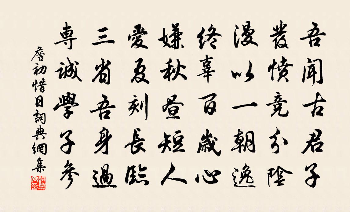 詩詞名句歷史字典書法欣賞書法字典國語詞典說文解字康熙字典古漢語字典標 題 作 者 詩 句 惜日作者:詹初 朝代:宋代惜日原文吾聞古君子,發憤競分陰。漫以一朝逸,終辜百歲心。嫌秋晝短人,愛夏刻長臨。三省吾身過,專誠學子參。詩詞問答問:惜日的作者是誰?答:詹初問:惜日寫於哪個朝代?答:宋代詹初惜日書法欣賞惜日書法作品詩詞推薦重過列子廟追感頃年自淮服與居守王僕射…四韻奉寄李德裕〔唐代〕白首過遺廟,朱輪入故城。已慚聯左揆,猶喜抗前旌。曳履忘年舊,彈冠久要情。重看題壁處,豈羨棄繻生。頌古三十九首釋道樞〔宋代〕大悲菩薩千手眼,如人背後摸枕頭。猢孫跳出布袋口,不妨隨處逞風流。次韻子瞻和淵明擬古九首蘇轍〔宋代〕佛法行中原,儒者恥論茲。功施冥冥中,亦何負當時。此方舊雜染,渾渾無名緇。治生守家室,坐使斯人疑。未知清音亭陳洵直〔宋代〕水石何曾有古今,如絲如竹度高深。自疑扁榜通塵聽,百代潺潺無賞音。頌古三十六首釋惟一〔宋代〕鷓鴣啼處百花香,劫外風光不覆藏。往往遊人多蹉過,卻從上苑探群芳。傷白雞梅堯臣〔宋代〕我庭有素雞,翎羽白如脂。日所慮狂犬,未嘗憂孽狸。暝棲向檐隙,朝啄循階基。每先烏鳥鳴,不失風雨時。唯吾過麻子湖遇逆風有作姚勉〔宋代〕來去船皆欲便風,天心豈解兩相從。儂帆一順渠應怨,不若從渠且苦儂。格齋李壁〔宋代〕一物具一理,皆有極則處。索焉而不精,於德何所據。次韻子瞻題長安王氏中隱堂五首蘇轍〔宋代〕官去空留鶴,山浮不見鰲。竹林迎日淨,槐木擁亭高。烏噪知人至,蟬鳴覺口勞。誰能飲堂上,解帶不穿袍。雨中罷直宋祁〔宋代〕禁樹連天雨送秋,千門寒氣襲輕裘。優旃不用夸諧辯,陛楯諸郎已得休。次韻王得之游淨明題易安二絕張嵲〔宋代〕銅駝陌上須臾樂,金穴侯家瞬息歡。爭似蓋頭茅一把,老僧終日百般安。贈汪泰軒馬廷鸞〔宋代〕萬言朝鳳闕,一笑落漁舟。把我蔥珩解,眾公款段游。東來迎羽服,西去義羊裘。揮手謝漢使,蒲 * 所羞。再和雁湖十首李壁〔宋代〕翠華南度幾千餘,始見中原與閏俱。千載一時周曆數,兩河百郡漢輿圖。平南上策歸諸葛,伐北奇功屬寄奴。安得大道之行也戴聖〔先秦〕大道之行也,天下為公,選賢與能,講信修睦。故人不獨親其親,不獨子其子,使老有所終,壯有所用,幼有所長布袋贊釋普寧〔宋代〕杖頭挑百億乾坤,布袋貯三千世界。鬧市叢中等個人,不知誰是知音者。白岩僧舍徐照〔宋代〕佳景多為寺,一房當翠微。爐香穿野靄,杉露滴僧衣。害蜜蜂喧牖,拋生鳥候扉。山深隨興味,斜日不須歸。送三八弟歸九江王遂〔宋代〕燕公最繁盛,子孫十三支。默數半凋零,坐愈成傷悲。學不足贏糧,貧或無置錐。先君尚有言,孫謀敢忘貽。四睡圖贊釋如淨〔宋代〕拾得寒山,老虎豐乾。睡到驢年,也太無端。咦,驀地起來開活眼,許多妖怪自相瞞。宿寺翁卷〔宋代〕一宿此禪宮,身同落髮翁。深窗難得月,老屋易生風。燈冷紗光淡,香殘印篆空。獨憐吟思苦,妨卻夢西東。偈頌一百二十三首釋普度〔宋代〕佛法無人說,雖慧不能了。幸然平似鏡,何用曲如鉤。名句推薦市,朝則滿,夕則虛,非朝愛市而夕憎之也,求存故往,亡故去。劉向《戰國策·齊四·孟嘗君逐於齊而復反》 韶華不為少年留,恨悠悠,幾時休?秦觀《江城子·西城楊柳弄春柔》 舉觴酹先酒,為我驅憂煩。柳宗元《飲酒》 柳帶搖風漢水濱,平蕪兩岸爭勻。牛希濟《臨江仙·柳帶搖風漢水濱》 投我以木瓜,報之以瓊琚。佚名《木瓜》 愛臣太親,必危其身;人臣太貴,必易主位。韓非及後人《韓非子·愛臣》 春來茗葉還爭白,臘盡梅梢盡放紅。韓元吉《送陸務觀福建提倉》 古戍蒼蒼烽火寒,大荒沈沈飛雪白。李頎《聽董大彈胡笳聲兼寄語弄房給事》 戍鼓斷人行,邊秋一雁聲。杜甫《月夜憶舍弟》 飛蓬各自遠,且盡手中杯。李白《魯郡東石門送杜二甫》