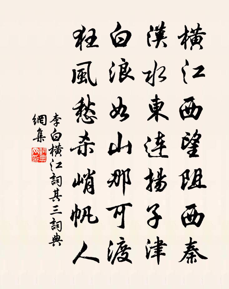 橫江西望阻西秦,漢水東連揚子津。白浪如山那可渡,狂風愁殺峭帆人。