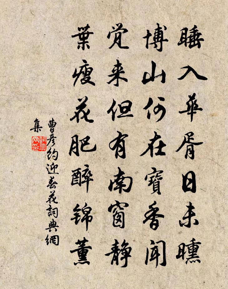 詩詞名句歷史字典書法欣賞書法字典國語詞典說文解字康熙字典古漢語字典標 題 作 者 詩 句 迎春花作者:曹彥約 朝代:宋代迎春花原文睡入華胥日未曛,博山何在寶香聞。覺來但有南窗靜,葉瘦花肥醉錦薰。詩詞問答問:迎春花的作者是誰?答:曹彥約問:迎春花寫於哪個朝代?答:宋代曹彥約迎春花書法欣賞迎春花書法作品詩詞推薦半醉吟邵雍〔宋代〕半醉小車行,世間無此榮。涼風迎面細,垂柳拂頭輕。意若兼三事,情如擁萬兵。這般閒富貴,料得沒人爭。清平樂(壽林守)黃機〔宋代〕釵頭蝴蝶。趁舞梅邊雪。酒瀉黃滕光奪月。歲歲年年蕉葉。邊城鶯喚春歸。沙場馬到秋肥。□□熊韜虎略,換渠金丁謂洪咨夔〔宋代〕鶴相專朝巧萬般,中書位子太山安。沂公冷眼旁邊看,機會來時只腳翻。鵲橋仙晁端禮〔宋代〕從來因被,薄情相誤,誤得人來已怕。那回時、有願不昏沈,甚近日、依前又也。你莫撋就,偎隨人便,卻騎牆兩清明後七日與客同為水東之游翌朝賦此張栻〔宋代〕平生山水癖,妙處只自知。夙約常寡味,邂逅愜心期。幅巾與藜杖,安步隨所之。朅來坐官府,頗覺此原違。城頭逍遙詠宋太宗〔宋代〕遁跡深岩谷,身閒未是閒。研窮堪語默,寂靜杳冥間。秘密逢邪見,難開大道關。金丹無效用,弗可返童顏。東方張耒〔宋代〕東方未明更五鼓,星河寥寥寒雁度。鐺鐺鳴鐸誰家車,陌上驅牛輾霜去。北風吹面足踏冰,村南早飯天未明。年年桓溫趙文〔宋代〕亦惡人言如處仲,愛聞伎說似司空。假饒眼耳渾相似,正恐肝腸自不同。西州張籍〔唐代〕羌胡據西州,近甸無邊城。山東收稅租,養我防塞兵。胡騎來無時,居人常震驚。嗟我五陵間,農者罷耘耕。邊頭簡張槃齋以國朝四君子文易南華經劉宰〔宋代〕我宋百年間,人物兩漢上。堂堂司馬公,奧學邁舒同。廬陵祖韓孟,首以六經唱。升堂子曾子,功亦孟氏抗。荊舒贈葉子仁真德秀〔宋代〕花正紛紅俄駭綠,月才掛壁又沈銘。世間萬事都如此,莫遣雙眉浪自愁。寄省中知己林寬〔唐代〕門掩清曹晚,靜將烏府鄰。花開封印早,雪下典衣頻。怪木風吹閣,廢巢時落薪。每憐吾道苦,長說向同人。贈壽上人釋智朋〔宋代〕覓諸方偈眼能乖,不把炊巾亂展開。知得一峰天下秀,地從西竺國飛來。菩薩蠻林淳〔宋代〕鵝谿淨稱煙籠月。澄心白稱光浮雪。淨白兩俱宜。天然濃淡枝。花光神意遠。吮墨含毫淺。依約有香來。春風隨手適安招游湯鎮不果赴陳起〔宋代〕湯鎮古祠宮,招邀及倦翁。輕裘乘曉月,駿馬逐東風。野色觀無分,春光病見攻。行將迎誕日,一瓣擬遙通。趙州勘婆頌釋自回〔宋代〕三軍不動旗閃爍,老婆正是魔王腳。趙州無柄鐵掃帚,掃蕩煙塵空索索。圓通禪院,先君舊遊也。四月二十四日晚,至蘇軾〔宋代〕石耳峰頭路接天,梵音堂下月臨泉。此生初飲盧山水,他日徒參雪竇禪。袖裡寶書猶未出,夢中飛蓋已先傳。何人蕪湖王敦城下作賀鑄〔宋代〕斗立孤城日四圍,賊奴曾未懾天威。風生虎帳豺聲厲,塵犯龍顏魚服歸。首揭大航遺臭在,歌流樂府舊音非。當時木蘭花慢張孝祥〔宋代〕送歸雲去雁,澹寒采、滿溪樓。正佩解湘腰,釵孤楚鬢,鸞鑑分收。凝情望行處路,但疏煙遠樹織離憂。只有樓前漁家傲歐陽玄〔元代〕八月都城新過雁。西風偏解驚遊宦。十載辭家衣線綻。清宵半。家家搗練砧聲亂。等待中秋明月玩。客中只作家中名句推薦苟得其養,無物不長;苟失其養,無物不消。孟子《孟子·告子章句上·第八節》 靜言庸違,像恭滔天。佚名《尚書·虞書·堯典》 恩仇不可太明,明則人起攜貳之志。洪應明《菜根譚·概論》 閏余成歲,律呂調陽。周興嗣《千字文·全文》 裊裊城邊柳,青青陌上桑。張仲素《春閨思》 秋陰不散霜飛晚,留得枯荷聽雨聲。李商隱《宿駱氏亭寄懷崔雍崔袞》 絲槐煙柳長亭路,恨取次、分離去。惠洪《青玉案·絲槐煙柳長亭路》 安上治民,莫善於禮。孔子及其弟子《孝經·廣要道》 為世用者,百篇無害;不為用者,一章無補。王充《論衡·卷三十·自紀篇》 汀洲采白苹,日落江南春。柳惲《江南曲》