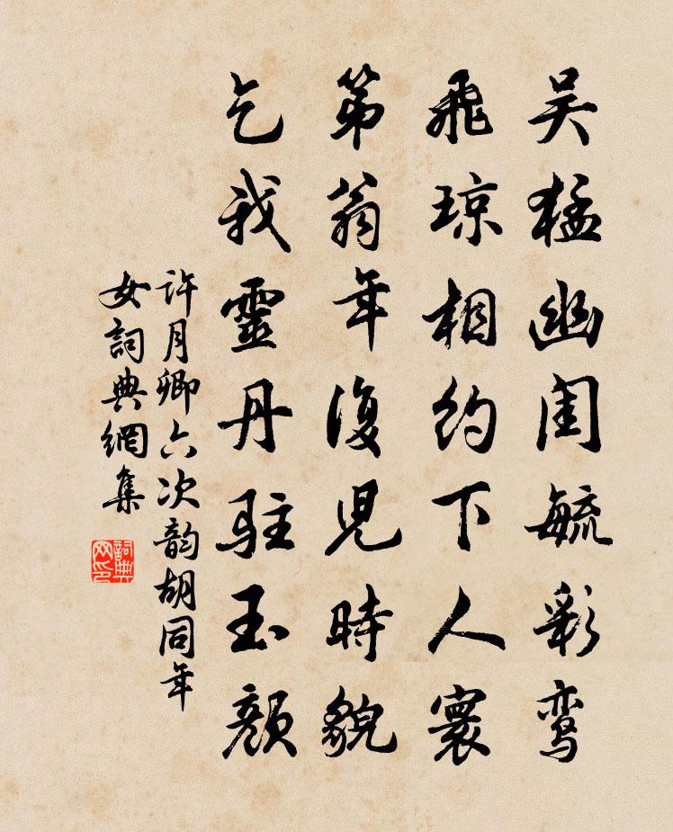 詩詞名句歷史字典書法欣賞書法字典國語詞典說文解字康熙字典古漢語字典標 題 作 者 詩 句 次韻胡同年女作者:許月卿六 朝代:宋代次韻胡同年女原文吳猛幽閨毓彩鸞,飛瓊相約下人寰。第翁年復兒時貌,乞我靈丹駐玉顏。詩詞問答問:次韻胡同年女的作者是誰?答:許月卿六問:次韻胡同年女寫於哪個朝代?答:宋代許月卿六次韻胡同年女書法欣賞次韻胡同年女書法作品詩詞推薦十二時(一曲)范祖禹〔宋代〕轉招搖。厚陵回望,雙闕起岧嶢。曉日麗譙。金爵上乾霄。風雨闋,夜宮閉,不重朝。奉鸞鑣漸遙。玉京知何處,送百丈專使釋重顯〔宋代〕大雄孤頂曾遐舉,遍索諸方誰敢拒。乳竇峰前捋虎鬚,再得完全又歸去。十山歌呈太守胡平一楊萬里〔宋代〕行人滿路喜歌呼,小盜何須辱廟謨。早個使君歸鼎軸,為禽頡利檕單于。四月八日三絕劉克莊〔宋代〕徵在生夫子,摩耶育釋迦。人人衣逢掖,個個著袈裟。聞丁永安屋下疊山甚佳趣恨未之見作詩寄之王洋〔宋代〕買山幾人真愛山,束薪煮石凋朱顏。老丁謀作久長計,洗寒疊翠房櫳間。簾通庵扉即尚戶,人映山我多煙鬟。住山江城子 為張同知壽王惲〔元代〕灤江晴漾首山前。玉為淵。秀相連。總把華英,都付使君賢。梅竹堂深歌吹動,香似霧,酒如川。列城千里聽鳴弦呂尚書輓詩二首劉子翬〔宋代〕國步多艱棘,忠誠誓翼扶。據鞍方矍鑠,罵賊已含糊。義在光惇史,人亡失壯圖。因公感家世,憤氣欲吞胡。寓懷陸游〔宋代〕脫粟未為飢,短褐未為寒;眾毀心自可,身困氣愈完。茆屋雖三間,趺坐則已寬;濁酒不滿瓢,浩歌有餘歡。祿食於玄武陂作詩曹丕〔魏晉〕兄弟共行游。驅車出西城。野田廣開闢。川渠互相經。黍稷何鬱郁。流波激悲聲。菱芡覆綠水。芙蓉發丹榮。柳垂平生張耒〔宋代〕平生壯節終難變,投老浮名信所遭。要路爭先寧遽福,從來率野屈吾曹。游王壽山蔡蒙古〔宋代〕王壽山頭石徑斜,不知何處有仙家。煙霞踏遍芒鞋破,一路春鳩啼落花。瀟湘神黃公紹〔宋代〕賀靈灶。賀靈灶。幾年翠舞與珠歌。看到日斜猶未足,涌金門外涌金波。舞曲歌辭。白紵歌二首王建〔唐代〕天河漫漫北斗粲,宮中烏啼知夜半。新縫白紵舞衣成,來遲邀得吳王迎。低鬟轉面掩雙袖,玉釵浮動秋風生。酒多宣妙墳院古柏衛宗武〔宋代〕古來喬木產墓宅,新甫之儔匪凡質。風梳雨沐三百年,聳壑昂霄過千尺。孤標屹立獨擎天,繁柯偏重常傾日。蒼皮過南昌以病不入城縱望偶題趙蕃〔宋代〕滕王閣上退之碑,徐孺祠中魯直詩。往客欠游常系夢,今行緣病復愆期。霜雕南浦短長柳,雲掩西山濃澹姿。落照次韻張太博得余所遺二程先生集辯二程戲邵子魏了翁〔宋代〕文字未科斗,圖書未龜龍。粲然天地間,此理觸處逢。是謂象這祖,而為數之宗。吳犧古神聖,先得人所同。文因【雙調】清江引_春思黃鶯亂張可久〔元代〕春思黃鶯亂啼門外柳,雨細清明後。能消幾日春,又是相思瘦,梨花小窗人病酒。交翠亭梅花自開鶴自舞,隔斷蓬汀沙王安石〔宋代〕汀沙雪漫水溶溶,睡鴨殘蘆晻靄中。歸去北人多憶此,每家圖畫有屏風。玉照堂觀梅二十首張鎡〔宋代〕群芳非是乏新寄,或在繁時或嫩時。唯有南枝香共色,從初到底絕瑕疵。感遇之廿三陳子昂〔唐代〕翡翠巢南海。雄雌珠樹林。何知美人意。驕愛比黃金。殺身炎州里。委羽玉堂陰。旖旎光首飾。葳蕤爛錦衾。豈不名句推薦胭脂洗出秋階影,冰雪招來露砌魂。曹雪芹《薛寶釵詠白海棠》 蘭陵美酒鬱金香,玉碗盛來琥珀光。李白《客中行 / 客中作》 人善被人欺,馬善被人騎。佚名《增廣賢文·上集》 武公不但歌淇澳,賢女猶能唁衛侯。姜塘《摘星樓九日登臨》 耿斜河、疏星淡月,斷雲微度。張元乾《賀新郎·送胡邦衡待制赴新州》 惱他香閣濃睡,撩亂有啼鶯。晏殊《訴衷情·東風楊柳欲青青》 雙飛燕子幾時回?夾岸桃花蘸水開。徐俯《春遊湖》 月出於東山之上,徘徊於鬥牛之間。蘇軾《前赤壁賦》 亭皋木葉下,隴首秋雲飛柳惲《搗衣詩》 驚鳥去無際,寒蛩鳴我傍。馬戴《楚江懷古三首》