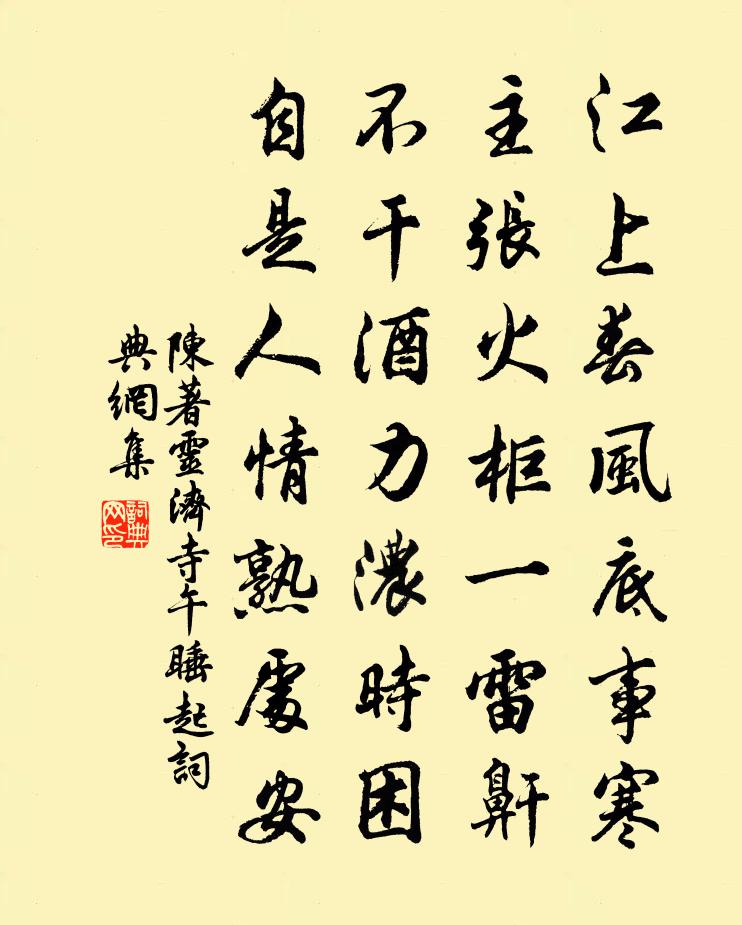 詩詞名句歷史字典書法欣賞書法字典國語詞典說文解字康熙字典古漢語字典標 題 作 者 詩 句 靈濟寺午睡起作者:陳著 朝代:宋代靈濟寺午睡起原文江上春風底事寒,主張火櫃一雷鼾。不乾酒力濃時困,自是人情熟處安。詩詞問答問:靈濟寺午睡起的作者是誰?答:陳著問:靈濟寺午睡起寫於哪個朝代?答:宋代陳著靈濟寺午睡起書法欣賞靈濟寺午睡起書法作品詩詞推薦送家朝南徵君二首程公許〔宋代〕獵獵霜風不滿旗,留連尊灑話襟期。紛紜蔬無窮事,慘澹江頭欲別時。未必交枰無活著,只憂起死欠神醫。疏頑我青藜閣為林景雲賦薛嵎〔宋代〕九斗峰前太乙臨,星辰亦監此時心。樓高不礙光芒入,坐久忽驚風露深。千古聖賢書里見,吾身學問性中尋。夜窗太常樂章三十首其十八迎俎奏豐之曲楊億〔宋代〕有牲斯純,有俎斯陳。柔嘉登薦,昭事惟寅。遣興吳汝弌〔宋代〕弱齡性淡泊,鄭圃吾其師。及茲拙生事,窮窘常經時。無方可紆包,何以宣中懷。柴門蔽殘席,詠書倦徘徊。呼兒果州驛陸游〔宋代〕驛前官路堠累累,嘆息何時送我歸?池館鶯花春漸老,窗扉燈火夜相依。孤鸞怯舞愁窺鏡,老馬貪行強受鞿。到處萬安道中二首趙蕃〔宋代〕雨小亦滑道,馬遲元自佳。金章橘弄色,玉麵茶吐花。科科初種菜,叢叢未收麻。人生皆有理,吾事獨無涯。太湖詩練瀆(吳王所開)皮日休〔唐代〕吳王厭得國,所玩終不足。一上姑蘇台,猶自嫌侷促。艅艎六宮鬧,艨沖後軍肅。一陣水麝風,空中蕩平淥。鳥困華之高壽魯齋先生七十金履祥〔宋代〕吉甫作頌,其詩孔陋。相彼兕觥,以介眉壽。華岳王維〔唐代〕西嶽出浮雲,積雪在太清。連天凝黛色,百里遙青冥。白日為之寒,森沉華陰城。昔聞乾坤閉,造化生巨靈。右足夜坐梅堯臣〔宋代〕夜久方慮寂,空堂燈燭明。落葉有暫響,暗蟲無停聲。力學不為己,甘貧且徇名。聊為詠懷篇,還想阮步兵。楊郎中新居和堯夫先生韻呂公著〔宋代〕碧瓦朱門將相居,見嵩臨洛百家無。登高此地還能賦,會老他年定入圖。花發四時排步障,鳥鳴終日勸提壺。何人初春詩沈約〔南北朝〕扶道覓陽春。相將共攜手。草色猶自腓。林中都未有。無事逐梅花。空教信楊柳。且復歸去來。含情寄杯酒。誘學徒一首蘇籀〔宋代〕瞥聞立睹且湛研,討索思臧義理穿。剖析賴經宗匠手,絕群羞拍腐儒肩。鴟鴉嗜鼠顓門蔽,博簺忘羊失路偏。警策秋日見橘花二首楊萬里〔宋代〕花淨何須艷林,深不隔香。初聞無處覓,小摘莫令長。春落秋仍發,梅兼雪未強。縹瓷汲寒甃,淺浸一技涼。高宗皇帝輓詞五首李巘〔宋代〕赫奕中興事,洪圖久系隆。垂裳三紀後,脫屣再星終。靈馭龍騰座,仙晨鶴翥空。薰琴無盡意,遏密卷悲風。伯氏臨江使君寄薌林次韻王洋〔宋代〕力湯橫空萬斛舟。一函酬唱紀川游。篇篇秀潤東南竹,落落珠璣小大鄒。人物百年同富壽,客懷千里夢逡遒。主人旅坐羅公升〔宋代〕負卻征塵債,飄零迄未休。孤蓬江貯夢,深巷雨添愁。山色分濃淡,禽聲互去留。班超亦良苦,萬里覓封侯。山中月夜草色香烈頗如昔年上庸鹿門之游感而張嵲〔宋代〕月淡雲始合,沉沉山樹清。露濡幽氣馥,澗草不知名。既念上庸隱,復懷鹿門行。暌離馳歲月,南北異平生。況抱糖多令黎廷瑞〔宋代〕月澗禪師不應,放棹東湖,夜色皎然。見心用龍洲少年游韻賦詞,因次韻回棹百花洲。迢迢碧玉流。聽笛聲、何處玉樓春歐陽修〔宋代〕尊前擬把歸期說,欲語春容先慘咽。人生自是有情痴,此恨不關風與月。離歌且莫翻新闋,一曲能教腸寸結。直須名句推薦恭敬不如從命。曹雪芹《紅樓夢·第六十二回》 忠恕違道不遠。施諸己而不願,亦勿施於人。子思《中庸·第十三章》 去年夜半橫江夢,倚危檣,參差曾賦劉辰翁《桂枝香· * 人去》 故不登高山,不知天之高也;不臨深溪,不知地之厚也;荀子《勸學》 盤飧市遠無兼味,樽酒家貧只舊醅。杜甫《客至》 教婦初來,教兒嬰孩。顏之推《顏氏家訓·教子篇》 十年生死兩茫茫,不思量,自難忘。蘇軾《江城子·乙卯正月二十日夜記夢》 舍南舍北皆春水,但見群鷗日日來。杜甫《客至》 柳外斜陽,水邊歸鳥,隴上吹喬木。辛棄疾《念奴嬌·登建康賞心亭呈史致道留守》 因可勢,求易道。韓非及後人《韓非子·觀行》