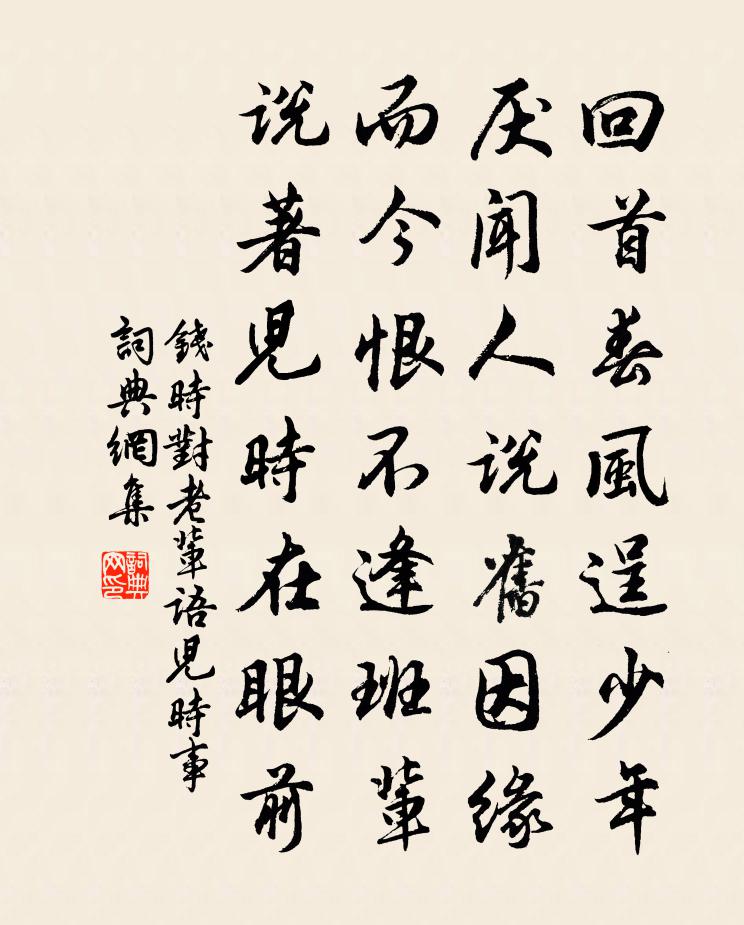 詩詞名句歷史字典書法欣賞書法字典國語詞典說文解字康熙字典古漢語字典標 題 作 者 詩 句 對老輩語兒時事作者:錢時 朝代:宋代對老輩語兒時事原文回首春風逞少年,厭聞人說舊因緣。而今恨不逢班輩,說著兒時在眼前。詩詞問答問:對老輩語兒時事的作者是誰?答:錢時問:對老輩語兒時事寫於哪個朝代?答:宋代錢時對老輩語兒時事書法欣賞對老輩語兒時事書法作品詩詞推薦偈頌一百零二首釋紹曇〔宋代〕鴆鳥毛,蠱毒水。毒不傷人,何妨服餌。只有這些兒,含毒噴泉人,深入骨髓。三世諸佛畏之如兔見蒼鷹,歷代祖故江陽楊君畫像贊黃庭堅〔宋代〕顯允臨邛,吏師文宗。能者述之,德宇恢恢。疏而不失,有物實之。於義當然,確乎不奪。強者屈之,愛民如子。閒行吟邵雍〔宋代〕長憶當年歸弊廬,未嘗三徑草荒蕪。欲為天下屠龍手,肯讀人間非聖書。否泰悟來知進退,乾坤見了識親疏。自從與妙庵主釋慧空〔宋代〕至道之宗,備在爾躬。求之則遠,守之不通。不求不守,奇載靈叟。極離極微,應心應手。觸目晴嵐,到處成庵。傷蔡處士護國〔唐代〕篋中遺草是琅玕,對此空令灑淚看。三徑尚余行跡在,數螢猶是映書殘。晨光不借泉門曉,暝色唯添隴樹寒。欲問過三嶺苧溪釋清豁〔宋代〕世人休說行路難,鳥道羊腸咫尺間。珍重苧溪溪畔水,汝歸滄海我歸山。食棗有感二首岳珂〔宋代〕百果隨時效歲功,棗盤亦復薦年豐。柔柯低帶隨風綠,纂實駢隨映日紅。關說桃梨堪{契去大糸}大,頗懷齊魯久望隔牆花詩劉孝威〔南北朝〕隔牆花半隱,猶見動花枝。當由美人摘,詎止春風吹。感悟妄緣,題如上人壁白居易〔唐代〕自從為騃童,直至作衰翁。所好隨年異,為忙終日同。弄沙成佛塔,鏘玉謁王宮。彼此皆兒戲,須臾即色空。有營茅茨釋文珦〔宋代〕千重青嶂底,坐臥一茅茨。棲息今成樂,興亡總不知。林居獨腳鬼,壁畫九頭龜。自是山林樣,休嫌欠入時。水仙謠溫庭筠〔唐代〕水客夜騎紅鯉魚,赤鸞雙鶴蓬瀛書。輕塵不起雨新霽,萬里孤光含碧虛。露魄冠輕見雲發,寒絲七炷香泉咽。夜深次韻彥博游無為馬豀並呈孫隆州李流謙〔宋代〕聲處無人語合頭,出門猝猝又還休。縛茅晚歲欣同社,並轡名峰得勝游。松下一筇真可老,山中五月已如秋。未應虛谷志歸十首方回〔宋代〕月旦須終定,陽秋豈易評。麈毛空自落,牛耳可誰盟。好惡不相似,是非無太明。客來倦酬對,堅坐聽松聲。玉水記方流白居易〔唐代〕良璞含章久,寒泉徹底幽。矩浮光灩灩,方折浪悠悠。凌亂波紋異,縈迴水性柔。似風搖淺瀨,疑月落清流。潛潁夜半舟發丹陽陳高〔元代〕舟子貪風順,開帆半夜行。天寒四野靜,水白大星明。長鋏歸何日?浮萍笑此生。柁樓眠不穩,起坐待雞鳴。次韻和丹陽裴如晦學士寄示與蔡子直陳述古唱蘇頌〔宋代〕紞鼓吳門徹曙開,郡人還喜鄧侯來。政成歲稔庭無訟,誰伴南園舉宴杯。薊丘覽古贈盧居士藏用七首。田光先生陳子昂〔唐代〕自古皆有死,徇義良獨稀。奈何燕太子,尚使田生疑。伏劍誠已矣,感我涕沾衣。詩三首嚴中和〔宋代〕山中道人不裹巾,一片石床生綠鱗。昨夜瓦瓶冰凍破,梅花無水自精神。上巳文天祥〔宋代〕昔自長淮樹去帆,今從燕薊眺東南。泥沙一命九分九,風雨六年三月三。地下故人那可作,天涯遊子竟何堪。便從飛仙閣杜甫〔唐代〕土門山行窄,微徑緣秋毫。棧雲闌乾峻,梯石結構牢。萬壑欹疏林,積陰帶奔濤。寒日外澹泊,長風中怒號。歇鞍名句推薦朔方正月雪澌澌,單于策馬至京西沈約《昭君辭》 任力者故勞,任人者故逸。呂不韋《呂氏春秋·論·開春論》 夕陽倒影射疏林,江邊一帶芙蓉老。陳霆《踏莎行·晚景》 詩成自寫紅葉,和恨寄東流。晏幾道《訴衷情·憑觴靜憶去年秋》 曉風不散愁千點,宿雨還添淚一痕。曹雪芹《詠白海棠》 一枝紅杏出牆頭,牆外行人正獨愁。吳融《途中見杏花》 望處雨收雲斷,憑闌悄悄,目送秋光。柳永《玉蝴蝶·望處雨收雲斷》 盛而不驕,勞而不矜其功。左丘明《國語·越語·范蠡進諫勾踐持盈定傾節事》 命里無時,求之不來。馮夢龍《醒世恆言·卷十八》 梨花院落溶溶月,柳絮池塘淡淡風。晏殊《無題·油壁香車不再逢》