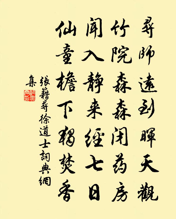 尋師遠到暉天觀,竹院森森閉藥房。聞入靜來經七日,仙童檐下獨焚香。