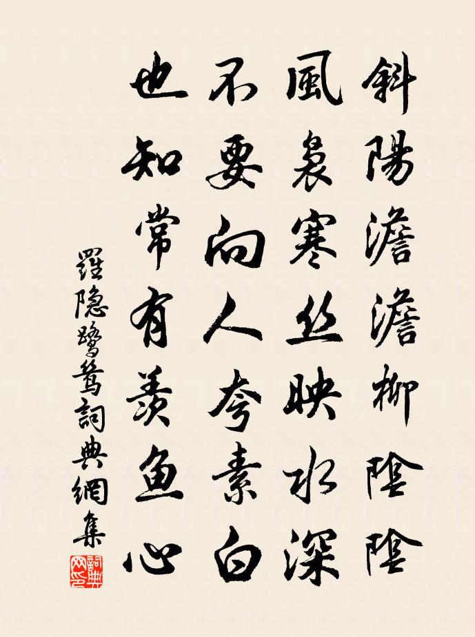 斜陽澹澹柳陰陰,風裊寒絲映水深。不要向人夸素白,也知常有羨魚心。