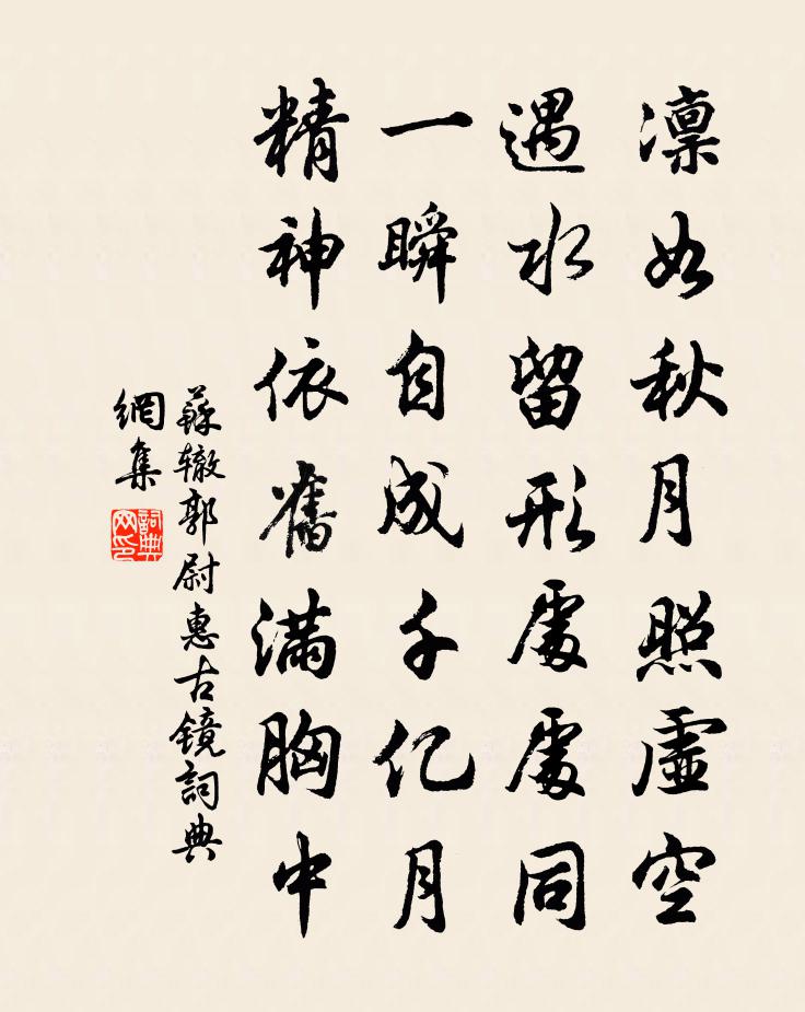 詩詞名句歷史字典書法欣賞書法字典國語詞典說文解字康熙字典古漢語字典標 題 作 者 詩 句 郭尉惠古鏡作者:蘇轍 朝代:宋代郭尉惠古鏡原文凜如秋月照虛空,遇水留形處處同。一瞬自成千億月,精神依舊滿胸中。〈俗言:“以鏡予人,損己精神。”故解之雲。〉詩詞問答問:郭尉惠古鏡的作者是誰?答:蘇轍問:郭尉惠古鏡寫於哪個朝代?答:宋代問:蘇轍的名句有哪些?答:蘇轍名句大全蘇轍郭尉惠古鏡書法欣賞郭尉惠古鏡書法作品詩詞推薦偈頌一百零四首釋紹曇〔宋代〕迅瀑千尋,懸崖萬仞。說法聲高,驗人機峻。要扶法眼門風,花衲元非古錦。堪笑高麗四九僧,面門搭了冬瓜印。送沈亞之歌·並序李賀〔唐代〕文人沈亞之,元和七年以書不中第,返歸於吳江。吾悲其行,無錢酒以勞,又感沈之勤請,乃歌一解以送之。吳興宿天竺寺陶翰〔唐代〕松柏亂岩口,山西微徑通。天開一峰見,宮闕生虛空。正殿倚霞壁,千樓標石叢。夜來猿鳥靜,鍾梵響雲中。岑翠題處士居鄭獬〔宋代〕高臥太湖石,自嫌名利腥。網羅當道路,鴻鵠出青冥。氣貯秋琴淡,心蟠古劍靈。我來閒劇論,山鬼不須聽。又用韻楊冠卿〔宋代〕窮巷無人車轍稀,尋巢燕子故飛飛。似嫌茅屋太低小,慶廈千間欣有歸。六月十七日十八日大雨聞賊欲降方回〔宋代〕誰遣青天變漏天,人閒無復有平田。女媧鏈石端何物,子產禜龍未必然。死徒銜冤終不雪,生存忍餓更堪憐。腐儒和孟東野韻范偃〔宋代〕散策欲薄暮,疏鍾猶殷床。風煙函古趣,岩壑生幽香。仰首逼象緯,俯視渺川光。向來非突兀,幾成虎豹場。奉和初春幸太平公主南莊應制李乂〔唐代〕平陽館外有仙家,沁水園中好物華。地出東郊回日御,城臨南斗度雲車。風泉韻繞幽林竹,雨霰光搖雜樹花。已慶詩劉楨〔魏晉〕攬衣出巷去。素蓋何翩翩。 秋夜泛舟何新之〔宋代〕飛星曳寒影,野水淡碧空。人生定何物,扁舟空影中。何年有宇宙,生此木末風。有力不向上,難到蓬萊宮。空攀四和項安世〔宋代〕百年可惜幾見,一代何能數人。下馬賦風雅頌,上馬看疾毒親。九日二首曾幾〔宋代〕尊前韻度落烏紗,卻是西風識孟嘉。當日龍山無數客,問誰整整復斜斜。次韻楊宰宿田家陳造〔宋代〕雪曉烏驚矯,無風葉自零。人家住莽蒼,徑柏挺寒青。千載猶歸鶴,三生省病僧。脾虛眼多眚,更比向來增。與大知客釋雲岫〔宋代〕趙州道個吃茶去,一滴何曾濕口唇。到此果能相見得,不妨全主更全賓。梅雨蘇泂〔宋代〕籬根日日擊扁舟,衣桁才乾水又流。老子病餘凡事懶,但薰沉炷淪茶甌。次金東園農家雜詠八首楊公遠〔宋代〕嘗稻翻匙夸白雪,腰鎌荷擔刈黃雲。逢人謾說空辛苦,償債輸官費九分。寄周惲於鵠〔唐代〕家在荒陂長似秋,蓼花芹葉水蟲幽。去年相伴尋山客,明月今宵何處游。太公哀晚遇常建〔唐代〕日出渭流白,文王畋獵時。釣翁在蘆葦,川澤無熊羆。詔書起遺賢,匹馬令(今)致辭。因稱江海人,臣老筋力衰和斯立見還詩卷晁說之〔宋代〕神仙劉子夏,不愧許遠遊。今日秋風客,襟度更為優。如何琅玕紙,亦作李相投。釋之還在手,愛涎隨不收。霜渚送秀登上人釋尚能〔宋代〕又負空囊出,都城難久居。西風隨雁急,寒柳向人疏。野宿燈分燒,船齋磬動魚。如逢北來客,應寄社中書。名句推薦浮雲終日行,遊子久不至。杜甫《夢李白二首·其二》 故園東望路漫漫,雙袖龍鍾淚不乾。岑參《逢入京使》 知是人家花落盡,菜畦今日蝶來多。高啟《春暮西園》 輪台九月風夜吼,一川碎石大如斗,隨風滿地石亂走。岑參《走馬川行奉送出師西征 / 走馬川行奉送封大夫出師西征》 自春來、慘綠愁紅,芳心是事可可。柳永《定風波·自春來》 此生誰料,心在天山,身老滄洲。陸游《訴衷情·當年萬里覓封侯》 黃華自與西風約,白髮先從遠客生。元好問《秋懷》 杏花村館酒旗風。水溶溶。揚殘紅。謝逸《江神子·杏花村館酒旗風》 清明時節出郊原,寂寂山城柳映門。楊徽之《寒食寄鄭起侍郎》 筆落驚風雨,詩成泣鬼神杜甫《寄李十二白二十韻》