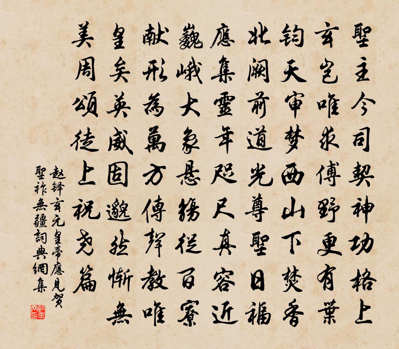 詩詞名句歷史字典書法欣賞書法字典國語詞典說文解字康熙字典古漢語字典標 題 作 者 詩 句 玄元皇帝應見賀聖祚無疆作者:趙鐸 朝代:唐代玄元皇帝應見賀聖祚無疆原文聖主今司契,神功格上玄。豈唯求傅野,更有葉鈞天。審夢西山下,焚香北闕前。道光尊聖日,福應集靈年。咫尺真容近,巍峨大象懸。觴從百寮獻,形為萬方傳。聲教唯皇矣,英威固邈然。慚無美周頌,徒上祝堯篇。詩詞問答問:玄元皇帝應見賀聖祚無疆的作者是誰?答:趙鐸問:玄元皇帝應見賀聖祚無疆寫於哪個朝代?答:唐代問:玄元皇帝應見賀聖祚無疆是什麼體裁?答:樂府趙鐸玄元皇帝應見賀聖祚無疆書法欣賞玄元皇帝應見賀聖祚無疆書法作品注釋全唐詩:卷781-1詩詞推薦蝶戀花晏幾道〔宋代〕碾玉釵頭雙鳳小。倒暈工夫,畫得宮眉巧。嫩曲羅裙勝碧草。鴛鴦繡字春衫好。三月露桃芳意早。細看花枝,人面古圓鏡顧逢〔宋代〕翠剝青銅面,年深入手輕。似教藏美惡,不欲大分明。細雨波心碎,浮雲月底行。便令無點翳,誰解照前生。寒食前一日行部過牛首山七首楊萬里〔宋代〕腳踏車一節又行春,敢為觀風惜病身。只是擔頭無櫑子,枉教喚作蹈青人。春晚雨中廖行之〔宋代〕綠楊庭院雨如絲,已是梅林欲熟時。慚愧春工起歸興,向來節物彼何知。流夜郎半道承恩放還,兼欣克復之美書懷示息秀才李白〔唐代〕黃口為人羅,白龍乃魚服。得罪豈怨天,以愚陷網目。鯨鯢未翦滅,豺狼屢翻履。悲作楚地囚,何日秦庭哭。遭逢早夏錢起〔唐代〕楚狂身世恨情多,似病如憂正是魔,花萼敗春多寂寞,葉陰迎夏已清和。鸝黃好鳥搖深樹,細白佳人著紫羅。軍旅和張二十五春日見寄五首范祖禹〔宋代〕莫恨生華髮,唯須不負春。風光無老少,祗屬有情人。讀易陸游〔宋代〕老喜杜門常謝客,病惟讀易不迎醫。冬來更愧乖慵甚,醉過收蕎下麥時。贈蔡君謨赴漳南幕葛密〔宋代〕藻思舊傳青管夢,哲科新試碧雞才,乍依仲寶蓮花幕,更下溫郎玉鏡台。臨江仙(懷歸)洪皓〔宋代〕冷落天涯今一紀,誰憐萬里無家。三閭憔悴賦懷沙。思新增悵望,弔影覺敧斜。兀坐書堂真可怪,銷憂殢酒難賒。次韻京口叔祖見寄四首張鎡〔宋代〕汲古無初不讀書,屠蘇新制帖僧廬。痴禪晝夜 * 上,貪睡猶勝學宰予。墨子引逸詩佚名〔先秦〕必擇所堪。必謹所堪。魚水不務。陸將何及。情詩其二十六倉央嘉措〔清代〕故園迢迢憶雙親,每對卿卿淚滿襟。千山萬水相追尋,始信卿心勝娘心。神弦別曲李賀〔唐代〕巫山小女隔雲別,春風松花山上發。綠蓋獨穿香徑歸,白馬花竿前孑孑。蜀江風澹水如羅,墮蘭誰泛相經過。南山和王璠侍御酬友人贈白角冠鮑溶〔唐代〕芙蓉寒艷鏤冰姿,天朗燈深拔豸時。好見吹笙伊洛上,紫煙丹鳳亦相隨。雨後過華岳廟李山甫〔唐代〕華山黑影霄崔嵬,金天□□門未開。雨淋鬼火滅不滅,風送神香來不來。牆外素錢飄似雪,殿 * 柏吼如雷。知君雨雪兼旬有賦陸游〔宋代〕冬溫思雨雪,稍久已復厭;祁寒人怨咨,千載語猶驗。人心自無常,天命本不僭。積陰勢已極,浮雲會當歛。山花次韻荼槱二絕洪咨夔〔宋代〕愛春留得瓊英在,添竹扶將翠蔓高。更著金沙相間種,主人四壁錦周遭。春日即事五首舒邦佐〔宋代〕架上酴醿萬玉浮,當年攀折為遲留。而今老病空相對,花不羞人人自羞。題羅雲步周昉宮女方回〔宋代〕顛倒三郎養祿兒,當年想是此蛾眉。不須真有聊須畫,或可東城出一奇。名句推薦旅客三秋至,層城四望開。杜審言《登襄陽城》 登高壯觀天地間,大江茫茫去不還。李白《廬山謠寄盧侍御虛舟》 萬國奔騰,兩宮幽陷,此恨何時雪。黃中輔《念奴嬌·炎精中否》 留春不住,費盡鶯兒語。王安國《清平樂·春晚》 夫因兵死守蓬茅,麻薴衣衫鬢髮焦。杜荀鶴《山中寡婦 / 時世行》 凡大事皆起於小事,小事不論,大事又將不可救吳兢《貞觀政要·卷一·論政體》 清漏漸移相望久,微雲未接過來遲。李商隱《辛未七夕》 酒酣應對燕山雪,正冰河月凍,曉隴雲飛。周密《高陽台·送陳君衡被召》 疏籬曲徑田家小。雲樹開清曉。周邦彥《虞美人·疏籬曲徑田家小》 曾與美人橋上別,恨無訊息到今朝。劉禹錫《楊柳枝 / 柳枝詞》