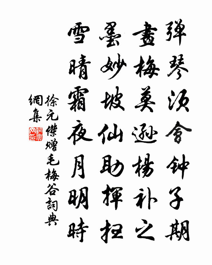 詩詞名句歷史字典書法欣賞書法字典國語詞典說文解字康熙字典古漢語字典標 題 作 者 詩 句 贈毛梅谷作者:徐元傑 朝代:宋代贈毛梅谷原文彈琴須會鍾子期,畫梅莫遜楊補之。墨妙坡仙助揮掃,雪晴霜夜月明時。詩詞問答問:贈毛梅谷的作者是誰?答:徐元傑問:贈毛梅谷寫於哪個朝代?答:宋代徐元傑贈毛梅谷書法欣賞贈毛梅谷書法作品詩詞推薦春水喻良能〔宋代〕磬湖春水夜來生,曉起雷聲逗雨聲。去馬來牛心莫辨,鸕鶿鸂鶒眼俱明。飄零花片有底急,搖曳柳絲如許輕。旬月秋懷五首簡陳巽叔徐伯老王炎〔宋代〕我來今幾時,寒暑已一變。回首望江東,天末雁行遠。弧矢四方誌,別離詎能免。有懷先君子,生理只鉛槧。相憶謁金門趙崇嶓〔宋代〕春意泄。香重一枝梅雪。寒透玉壺冰暗結。玉奴情更劣。似語還羞奇絕。妒白憐紅時節。酒力未醒雙眼纈。一簾風山居寂寥與世如隔是非不到榮辱兩忘因憶秋崖吳錫疇〔宋代〕我愛山居好,蒼磯一釣竿。白鷗春水闊,黃犢綠坡寬。徑菊香秋晚,溪梅約歲寒。人間幽意足,詩思倚欄乾。囉嗊曲六首劉采春〔唐代〕不喜秦淮水,生憎江上船。載兒夫婿去,經歲又經年。借問東園柳,枯來得幾年。自無枝葉分,莫恐太陽偏。莫作大水行王炎〔宋代〕屯雲墨色日將暮,晦明揮霍雨如注。水聲夜半搖匡床,平旦出門吁可畏。盤渦溔瀁吞邊旁,悍流洶湧行中央。日中偈頌一百一十七首釋紹曇〔宋代〕示大家身,為帝王母。與佛同生,福兼寰宇。萬國歡悰慶誕彌,蟠桃何止宴瑤池。酒泉子·無題辛棄疾〔宋代〕流水無情,潮到空城頭盡白。離歌一曲怨殘陽,斷人腸。東風官柳舞雕牆。三十六宮花濺淚,春聲何處說興亡,燕偈頌七十八首釋正覺〔宋代〕同聲相應,同氣相求。同風千里,不隔絲頭。脫盡情塵訊息在,蘆花江上月明秋。春日田園雜興王進之〔宋代〕東君私我此閒身,脫欲青衫野服更。桑可以絲麻可貴,麥宜續食韭宜羹。分甘壟上耕雲隱,夢不湖邊拾翠行。物意熙寧望祭岳鎮海瀆十七首佚名〔宋代〕嵩稽衡霍,暨厥海江。時維長養,惠我南邦。肆嚴牲幣,神式來降。以侑以妥,百福是龐。夏日登西林白上人樓劉滄〔唐代〕幾到西林清淨境,層台高視有無間。寒光遠動天邊水,碧影出空煙外山。苔點落花微萼在,葉藏幽鳥碎聲閒。曠然菊花天王哲〔元代〕肉*花糕酒*油。肥軀潤已那休。兒女共嬉遊。金銀財寶,壘似山丘。何不道前程將不去,限終鬼使來勾。方悟平次韻答張天覺二首蘇軾〔宋代〕車輕馬穩轡銜堅,但有蚊蟲喜撲緣。截斷口前君莫怪,人間差樂勝巢仙。馭風騎氣我何勞,且要長松作土毛。亦如壽安雜詩十首且游司馬光〔宋代〕遊人巒山水,日晏澹忘歸。但愛雲煙好,那知仆馬飢。秦箏歌,送外甥蕭正歸京岑參〔唐代〕汝不聞秦箏聲最苦,五色纏弦十三柱。怨調慢聲如欲語,一曲未終日移午。紅亭水木不知暑,忽彈黃鐘和白紵。清寒流聚細文佚名〔宋代〕曉野方閒眺,橫溪賞亂流。寒文趨浦急,圓折逐煙浮。不謂飄疏雨,非關浴遠鷗。觀魚鱗共細,間石影疑稠。獵獵蓮杜衍〔宋代〕誰種幽花傍淺清,含紅怨綠影亭亭。雲歸巫女妝猶潤,浴出楊婦困夫醒。好把芳楊臨晚岸,莫教飛片逐浮萍。相看哲宗上太皇太后冊寶五首佚名〔宋代〕玉車臨御,鳳蓋棼麗。奉承寶冊,彌文盛備。抗聲極律,助我孝熙。天之所佑,萬壽無期。暇日約諸友生飯於石泉以講居貧這策樞密富丈李彌遜〔宋代〕夕郎富文采,早歲從君軒。承明久厭直,著書效文羅。十年坐蘭若,鼻觀參晨煙。撐腸正患多,教外多窮研。豈惟名句推薦但願人長久,千里共嬋娟。蘇軾《水調歌頭·丙辰中秋》 身多疾病思田裡,邑有流亡愧俸錢。韋應物《寄李儋元錫》 愁凝處,渺渺殘照紅斂吳文英《宴清都·秋感》 人間萬事,毫髮常重泰山輕。辛棄疾《水調歌頭·壬子三山被召陳端仁給事飲餞席上作》 寧我負人,毋人負我。陳壽《三國志·魏書·武帝紀》 清明時節雨聲嘩,潮擁渡頭沙張炎《朝中措·清明時節》 不修身而求個名於世者,猶貌甚惡而責妍影於鏡也。顏之推《顏氏家訓·名實篇》 夜雨做成秋,恰上心頭。納蘭性德《浪淘沙·夜雨做成秋》 澄江平少岸,幽樹晚多花。杜甫《水檻遣心二首》 恩仇不可太明,明則人起攜貳之志。洪應明《菜根譚·概論》