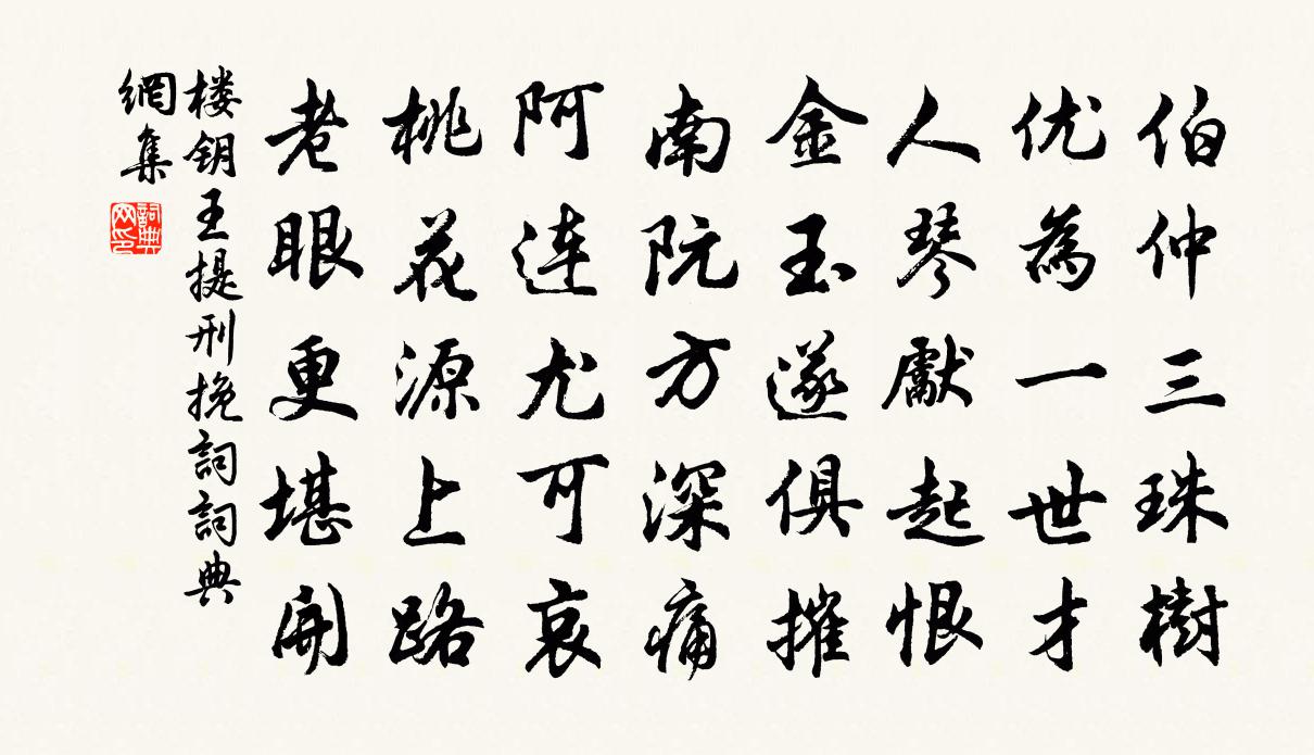 詩詞名句歷史字典書法欣賞書法字典國語詞典說文解字康熙字典古漢語字典標 題 作 者 詩 句 王提刑輓詞作者:樓鑰 朝代:宋代王提刑輓詞原文伯仲三珠樹,優為一世才。人琴先起恨,金玉遂俱摧。南阮方深痛,阿連尤可哀。桃花源上路,老眼更堪開。詩詞問答問:王提刑輓詞的作者是誰?答:樓鑰問:王提刑輓詞寫於哪個朝代?答:宋代樓鑰王提刑輓詞書法欣賞王提刑輓詞書法作品詩詞推薦讀句踐傳呂溫〔唐代〕丈夫可殺不可羞,如何送我海西頭。更生更聚終須報,二十年間死即休。孔明曾鞏〔宋代〕稱吳稱魏已紛紛,渭水西邊獨漢臣。平日將軍不三顧,尋常田裡帶經人。滿江紅吳潛〔宋代〕把手西園,有山色、波光相對。金馬客,明朝飛棹,水肥帆駛。問我年華旬並七,異鄉時景春巴二。最堪憐、遊子次韻杜無逸西園獨坐九絕句傅察〔宋代〕虛齋篆爐煙,兀然得禪寂。雖有錦繡腸,畫餅安可食。偈頌一百零九首釋可湘〔宋代〕石說法,不談禪。句句皆含妙,明明不在言。難將耳聽,只貴心傳。此外別求玄路入,洛陽橋上望長安。梅花七律張道洽〔宋代〕南堂深處向陽身,第一東風信息真。樹冷花清無俗韻,天寒日暮有佳人。林逋眼目才能識,何遜心情獨見親。養就答外王瓊奴〔宋代〕茜色霞箋照面赬,玉郎何事太多情。風流不是無佳句,兩字相思寫不成。早春病中書事寄魯望皮日休〔唐代〕眼暈見雲母,耳虛聞海濤。惜春狂似蝶,養病躁於猱。案靜方書古,堂空藥氣高。可憐真宰意,偏解困吾曹。曉過新安江,望紫陽山懷朱元晦楊萬里〔宋代〕紫陽山下紫陽翁,今住閩山第幾峰。退院歸來罷行腳,被他強占一江風。嘲廬山道士陳沆〔唐代〕啖肉先生欲上升,黃雲踏破紫雲崩。龍腰鶴背無多力,傳與 * 借大鵬。題段氏中台趙嘏〔唐代〕看山台下水無塵,碧筱前頭曲水春。獨對一尊風雨夜,不知家有早朝人。望謝家青山太白墓二首楊萬里〔宋代〕阿眺青山自一村,州民歲歲與招魂。六朝陵墓今安在,只有詩仙月下墳。沁園春 次韻王寅夫樓居妙曲,兼致異別意程文海〔元代〕天上仙人,只愛樓居,真成故常。自五雲深處,乘風冉冉,三神山畔,弭節陽陽。醉里乾坤,閒中歲月,興到謝家鳳棲梧·甲辰七夕吳文英〔宋代〕開過南枝花滿院。新月西樓,相約同針線。高樹數聲蟬送晚。歸家夢向斜陽斷。夜色銀河情一片。輕賬 * ,銀燭題友人山居高竹鶴〔宋代〕自汲清泉灌藥畦,西風籬落豆初肥。溪童趁日烘漁網,山婦迎寒織雨衣。棋散石台仙客去,松搖花崦野猿歸。尚嫌閒中讀易郭印〔宋代〕聖人闡性命,易書所自作。要令末世士,悟取先天學。俗儒何紛紛,私意妄穿鑿。或被陰陽拘,或遭象數縛。執一句邵雍〔宋代〕遂令高臥人,欹枕看兒戲。晨起陸游〔宋代〕衣潤熏籠暖,燈殘漏箭長。鳴雞帶窗月,立馬怯庭霜。病骨陰晴覺,官身早夜忙。火城那復夢,愁絕軟塵香。送亮藏主謁碧雲釋如淨〔宋代〕咬狗豬漢爛泥團,撮著參天劍刃寒。轉入春風開笑眼,桃花紅照碧琅玕。偈二首釋文準〔宋代〕五九四十五,聖人作而萬物睹。秦時{左革右度}{左革右樂}鑽頭尖,漢祖殿前樊噲怒。名句推薦東望鞭芙縹緲,寒光如注。劉辰翁《桂枝香· * 人去》 小軒獨坐相思處,情緒好無聊。石孝友《眼兒媚·愁雲淡淡雨瀟瀟》 相逢秋月滿,更值夜螢飛。王績《秋夜喜遇王處士》 父兄有善行,子弟學之或不肖王永彬《圍爐夜話·第三三則》 君不見管鮑貧時交,此道今人棄如土。杜甫《貧交行》 萬馬不嘶,一聲寒角,令行柳營。劉過《沁園春·張路分秋閱》 話別情多聲欲戰,玉著痕留紅粉面。顧敻《玉樓春·拂水雙飛來去燕》 萬壑樹參天,千山響杜鵑。王維《送梓州李使君》 輕淘起,香生玉塵,雪濺紫甌圓。米芾《滿庭芳·詠茶》 予獨愛蓮之出淤泥而不染,濯清漣而不妖周敦頤《愛蓮說》
