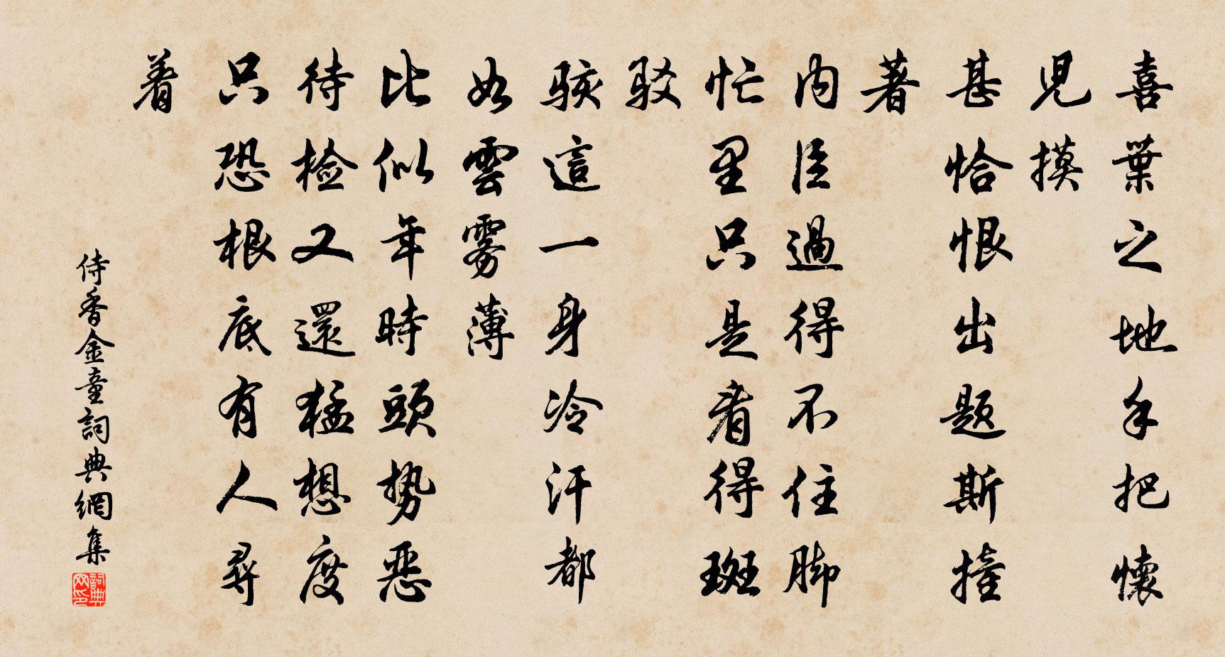 喜葉之地,手把懷兒摸。甚恰恨、出題斯撞著。