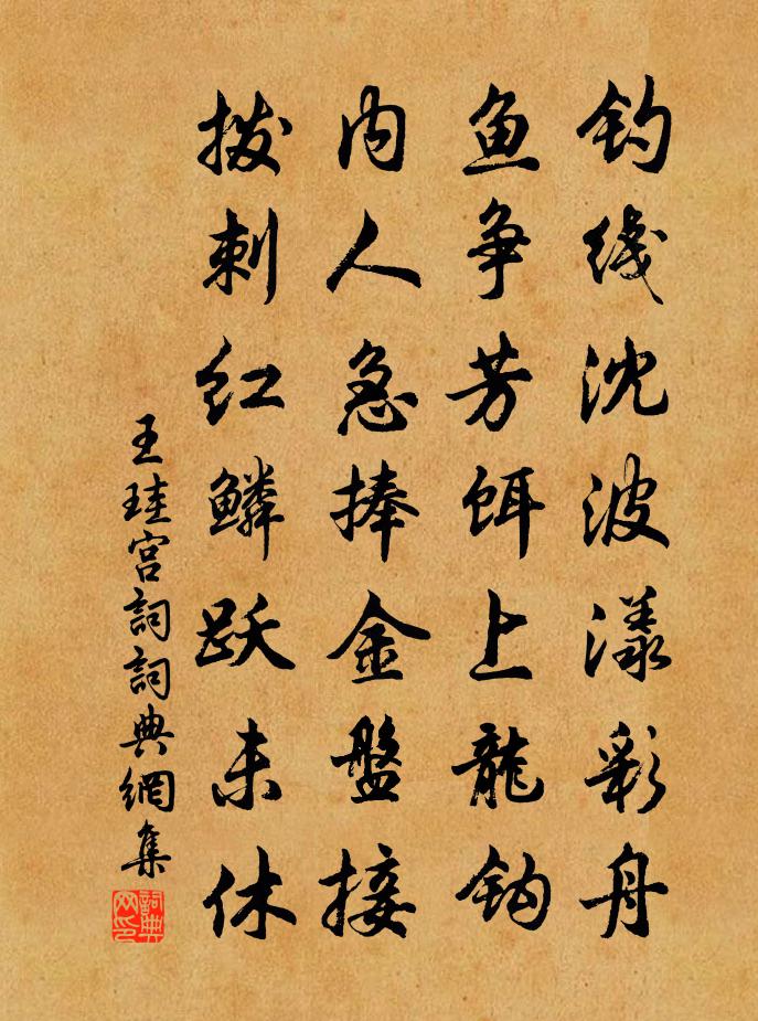 詩詞名句歷史字典書法欣賞書法字典國語詞典說文解字康熙字典古漢語字典標 題 作 者 詩 句 宮詞作者:王珪 朝代:唐代宮詞原文釣線沈波漾彩舟,魚爭芳餌上龍鉤。內人急捧金盤接,撥刺紅鱗躍未休。詩詞問答問:宮詞的作者是誰?答:王珪問:宮詞寫於哪個朝代?答:唐代王珪宮詞書法欣賞宮詞書法作品詩詞推薦風旛堂二首劉克莊〔宋代〕告子早不動,先師四十餘。乃知盧行者,暗合秀才書。殘花宋祁〔宋代〕林下感餘歡,流芳逐雨殘。香歸蜜房盡,紅入燕泥乾。夢短休成蝶,腸回卻掩鸞。故應成異果,持去擲潘安。送馮學士入蜀王禹偁〔宋代〕錦川直共少年期,四十風情去未遲。蠶市夜歌欹枕處,峨嵋春雪倚樓時。休夸上直吟紅藥,多羨乘軺聽子規。莫學寄林運使三首趙蕃〔宋代〕番愚城下牂牁水,亦復分流過此州。使節長瞻萬里外,尺書忽到五溪頭。酸寒應念卑堪說,奇勝聊雲舊所游。嶺海西江月 王伯 贈別 強村叢書用兩般秋雨庵藏宋褧〔元代〕烏石驛中長夜,小金山下新年。淮*蕭寺麥秋天。十載三回相見。今日漢南官舍,光陰不得留連。何時文酒再團圓清平樂·欺煙困雨,楊基〔明代〕欺煙困雨,拂拂愁千縷。曾把腰枝羞舞女,贏得輕盈如許。猶寒未暖時光,將昏漸曉池塘。記取春來楊柳,風流全溪岸秋思杜荀鶴〔唐代〕桑柘窮頭三四家,掛罾垂釣是生涯。秋風忽起溪灘白,零落岸邊蘆荻花。宮詞王珪〔唐代〕六宮春色醉仙葩,綺戶沈煙望翠華。琥珀盤生山芍藥,絳紗囊佩木香花。七月一日題終明府水樓二首杜甫〔唐代〕高棟曾軒已自涼,秋風此日灑衣裳。翛然欲下陰山雪,不去非無漢署香。絕辟過雲開錦繡,疏鬆夾水奏笙簧。看君殘月寇準〔宋代〕光隨春漏細,影共夕煙流,若近明河沒,還疑墜玉鉤。憂患中作姜特立〔宋代〕吉凶既同域,憂喜亦同途。萬緣互起滅,誰能久歡娛。歡娛既不久,悲恨常與俱。唯有嵇阮輩,乃能脫囚抱。一醉自遣劉兼〔唐代〕未上亨衢獨醉吟,賦成無處博黃金。家人莫問張儀舌,國士須知豫讓心。照乘始堪沽善價,陽春爭忍混凡音。鵾鵬三十六陂曾極〔宋代〕渺然三十六陂春,石黛潮生歲歲新。楊柳杏花渾好在,吟邊只欠跨驢人。贈相士曾豐〔宋代〕舌端偷得不傳機,說破人生不載疑。造物密教偉寫信,秋風已為長蟾枝。平時拍手儻來話,今日回頭真箇奇。除卻太常引劉雲震〔元代〕東湖亭下簇金鞍。四座浹青歡。人物畫中看。只枉了、劉郎鬢斑。花枝裊娜,酒杯瀲灩,全不放春閒。絲竹舊東山南劍州伏虎岩請師開山請贊釋慧開〔宋代〕個樣村僧,也甚奇怪。身如椰子,膽似天大。蟒蛇窟里安禪,猛虎穴中劄寨。無端於微塵國里,轉 * ,聲 * 岳祠送薛近貶官耿湋〔唐代〕枯松老柏仙山下,白帝祠堂枕古逵。遷客無辜祝史告,神明有喜女巫知。遙思桂浦人空去,遠過衡陽雁不隨。度嶺鷓鴣天(客有作北里選勝圖,冠以曲子名,東風第一枝,裒然居首因作此詞)蔡伸〔宋代〕脈脈柔情不自持。淺顰輕笑百般宜。尊前唱歇黃金縷,一點春愁入翠眉。流蕙盼,捧瑤卮。借君歌扇寫新詩。浮花偶得趙希邁〔宋代〕村邑蕭條廨屋低,茆牆缺處補荊籬。市添人語當墟日,田捲車筒漫種時。公事偶無封印早,小胥習懶赴衙遲。閒行清平樂 碧梧蒼石圖 珊瑚網名書題跋卷八曹方父〔元代〕斷腸腸斷。愁滿斜陽岸。遠水遙山情浩漫。春燕參差秋雁。夜長閒夢空成。離魂不遇君卿。月轉梧桐有影,天高河名句推薦大樹無枝向北風,十年遺恨泣英雄。高啟《吊岳王墓》 影孤憐夜永。永夜憐孤影。蘇軾《菩薩蠻·回文秋閨怨》 雪中何以贈君別,惟有青青松樹枝。岑參《天山雪歌送蕭治歸京》 卻恨悲風時起,冉冉雲間新雁,邊馬怨胡笳。葉夢得《水調歌頭·秋色漸將晚》 昔日芙蓉花,今成斷根草。李白《妾薄命》 九萬里風鵬正舉。李清照《漁家傲·天接雲濤連曉霧》 示上以足,示下以惠,怨自削減。來俊臣《羅織經·固榮卷第六》 童孫未解供耕織,也傍桑陰學種瓜。范成大《夏日田園雜興·其七》 存亡在虛實,不在於眾寡。韓非及後人《韓非子·安危》 微風起,清芬醞藉,不減酴醿。李清照《多麗·詠白菊》