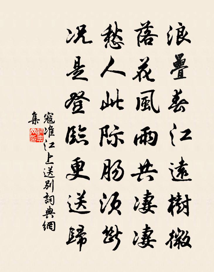 浪疊春江遠樹微,落花風雨共淒淒。愁人此際腸須斷,況是登臨更送歸。
