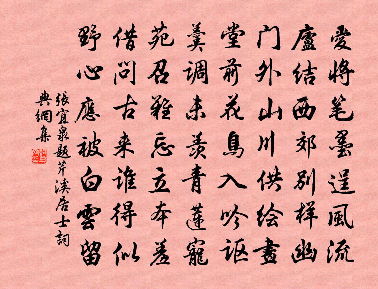 詩詞名句歷史字典書法欣賞書法字典國語詞典說文解字康熙字典古漢語字典標 題 作 者 詩 句 題芹溪居士作者:張宜泉 朝代:清代題芹溪居士原文愛將筆墨逞風流,廬結西郊別樣幽。門外山川供繪畫,堂前花鳥入吟謳。羹調未羨青蓮寵,苑召難忘立本羞。借問古來誰得似?野心應被白雲留!詩詞問答問:題芹溪居士的作者是誰?答:張宜泉問:題芹溪居士寫於哪個朝代?答:清代張宜泉題芹溪居士書法欣賞題芹溪居士書法作品詩詞推薦句李建中〔宋代〕漲煙春氣重,貯月夜痕深。代書寄淨明道人吳則禮〔宋代〕淨明端可人,日用一僧缽。覓句殊未休,平生箇中活。眷我梁宋游,茗碗屢澆潑。淮南霜露寒,轉柁何由達。又代作項安世〔宋代〕絳帷犀鎮繡簾低,翠竹龍香錦帕齊。百柂瓊艘傾竹醖,千年眉壽輯萱閨。堂東已見床堆笏,庭下行看玉滿畦。歲晚泊浦子口錢敬淑〔清代〕殘年泊歸棹,問酒郭西亭。雪圃芹芽白,江醪竹葉青。 夕陽新別路,衰草古離情。隔岸寒山色,含淒望舊京。 古興王令〔宋代〕出門將何從,與物隨紛紛。不得所欲為,還與俗人群。外跡久已非,獨嗟心所存。自信有可羞,彼人何足論。漁家傲李昴英〔宋代〕重著夾羅猶怯冷。隔簾拜祝團圓鏡。取片龍涎安古鼎。香閣靜。橫窗寫出梅花影。寒鵲顫枝飛不定。回紋刺就更籌鹿伯可郎中園池雜詠見一堂樓鑰〔宋代〕靈澈清詩千載傳,始聞林下有斯賢。傍人只道休官早,見一名堂已十年。郭承禧同年解倅印趨朝曹彥約〔宋代〕仕路何曾樂,迎新卻是榮。諸公新引類,難弟久專城。便恐班朝著,無勞仗友生。長沙風月夜,炯炯自清明。讀留侯傳崔塗〔唐代〕覆楚讎韓勢有餘,男兒遭遇更難如。偶成漢室千年業,唯讀圯橋一卷書。翻把壯心輕尺組,卻煩商皓正皇儲。若能奉和襲美公齋四詠次韻新竹陸龜蒙〔唐代〕別塢破苔蘚,嚴城樹軒楹。恭聞稟璇璣,化質離青冥。色可定雞頸,實堪招鳳翎。立窺五嶺秀,坐對三都屏。晴月武陽渡艾性夫〔宋代〕空濛水氣濕溪煙,閃爍沙星照客船。一片西風吹酒醒,秋容多在雁雲邊。蘇文忠公書簡帖贊岳珂〔宋代〕雲濤稽天,睨而陸之。神龍在淵,頷而觸之。一世諞諞,稚而畜之。節堅氣全,墨卿卜之。淳古簡嚴,芝繇仆之。烏烏歌樂雷發〔宋代〕莫讀書,莫讀書,惠施五車今何如。請君為我焚卻離騷賦,我亦為君劈碎太極圖。朅來相就飲斗酒,聽我仰天歌烏題西林寺程公許〔宋代〕覿面江乾千尺像,一州勝處說西林。雪濤欲驗青衣漲,步轉雲堂向後尋。丁酉元日示兒趙文〔宋代〕新春喜見甲子日,汝輩豈知丁酉科。酒少亦呼鄰共飲,家寒敢問客能過。堆床萬卷皆可飽,如此一貧吾已多。忽憶哀周然明王之道〔宋代〕三薦渠能老一儒,班超投筆好從吾。功名到手身先死,詩禮傳家道不孤。千里新封從馬鬣,百年餘慶萃鵷雛。西風示永慶院秀老王安石〔宋代〕禪房借枕得重欹,陳跡翛然尚有詩。嗟我與公皆老矣,拂天松柏見栽時。又二首袁燮〔宋代〕平生酷愛水浮天,每到東湖決豁然。要識此湖功利溥,旱時無陰蔭民田。登翻車峴詩鮑照〔南北朝〕高山絕雲霓。深谷斷無光。晝夜淪霧雨。冬夏結寒霜。淖坂既馬領。磧路又羊腸。畏塗疑旅人。忌轍覆行箱。升岑點絳唇馮時行〔宋代〕眉黛低顰,一聲春滿留蘇帳。卻從檀響。漸到梅花上。歸臥孤舟,梅影舟前揚。勞心想。岸橫千嶂。霜月鋪寒浪。名句推薦沾衣欲濕杏花雨,吹面不寒楊柳風。志南《絕句》 汀洲無浪復無煙,楚客相思益渺然。劉長卿《自夏口至鸚鵡洲夕望岳陽寄源中丞》 亂碧萋萋,雨後江天曉。梅堯臣《蘇幕遮·草》 金玉其外,敗絮其中劉基《賣柑者言》 學之乃知,不問不識。王充《論衡·卷二十六·實知篇》 不近人情,舉世皆畏途;不察物情,一生俱夢境。陳繼儒《小窗幽記·集醒篇》 莫信直中直,須防仁不仁。佚名《增廣賢文·上集》 一語不入意,從君萬曲梁塵飛。李白《夜坐吟》 離情被橫笛,吹過亂山東。王安石《江上》 恃人不如自恃也,明於人之為己者不如己之自為也。韓非及後人《韓非子·外儲說右下》
