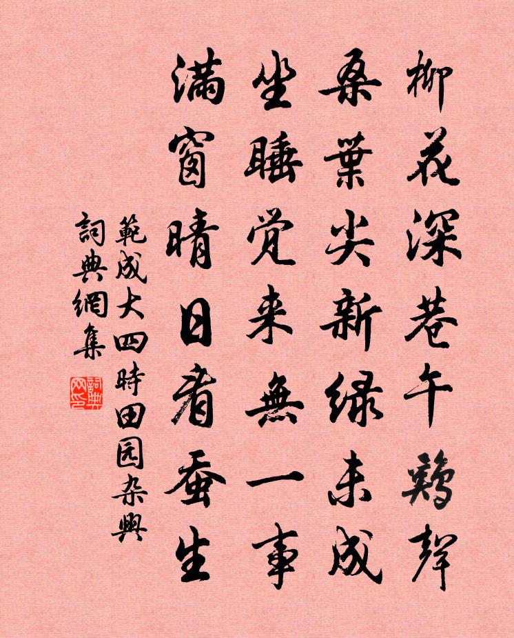 柳花深巷午雞聲,桑葉尖新綠未成。坐睡覺來無一事,滿窗晴日看蠶生。