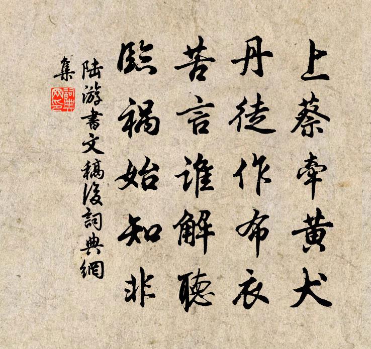 詩詞名句歷史字典書法欣賞書法字典國語詞典說文解字康熙字典古漢語字典標 題 作 者 詩 句 書文稿後作者:陸游 朝代:宋代書文稿後原文上蔡牽黃犬,丹徒作布衣。苦言誰解聽?臨禍始知非。詩詞問答問:書文稿後的作者是誰?答:陸游問:書文稿後寫於哪個朝代?答:宋代問:陸游的名句有哪些?答:陸游名句大全陸游書文稿後書法欣賞書文稿後書法作品詩詞推薦頌古四十八首釋慧開〔宋代〕急流垂釣,貪餌者著。口縫纏開,性命喪卻。同王公佩和老杜韻馮時行〔宋代〕敝屋甫環堵,此君憂面牆。當窗蔽寒綠,入坐薦清涼。客詠閟餘響,佛薰留散香。老成看氣骨,霜雪表靈長。二月望日楊萬里〔宋代〕海棠著意喚詩愁,桃李才開又落休。小雨輕風春一半,去年今日在嚴州。荷鋤陸游〔宋代〕五畝畦蔬地,秋來日荷鋤。何曾笑爾輩,但覺愛吾廬。膽怯沽官釀,瞳昏讀監書。區區尚多事,未解雜樵漁。和許月湖游鼓山陳宓〔宋代〕伐坐塵坌中,秋汗正浹背。聞君游鼓山,騎馬破煙靄。不向曉中看,安得識眉黛。飄然出樊籠,始覺此身大。登高少年游晁補之〔宋代〕當年攜手,是處成雙,無人不羨。自間阻、五年也,一夢擁、嬌嬌粉面。柳眉輕掃,杏腮微拂,依前雙靨。盛睡里謝李公達惠詩再答韓維〔宋代〕功名無得得閒身,位列東朝愧漢臣。空性屢撈潭底月,浮名那記禁中春。知音罕遇忘言士,絕學常思過量人。莫取和張思濟縣尉韻二首袁說友〔宋代〕書債頻年積,舟行一水期。稍吟秋夜雨,不盡故人思。正為才高累,寧論事了嗤。相忘心屢折,落筆更蜚馳。鹽角兒·亳社觀梅晁補之〔宋代〕開時似雪。謝時似雪。花中奇絕。香非在蕊,香非在萼,骨中香徹。占溪風,留溪月。堪羞損、山桃如血。直饒更織圖二十四首下蠶樓璹〔宋代〕穀雨無幾日,谿山暖風高。華蠶初破殼,落紙細於毛。柔桑摘蟬翼,簌簌才容刀。茅檐紙窗明,未覺眼力勞。過寶應縣新開湖十首楊萬里〔宋代〕雨里樓船即釣磯,碧雲便是綠蘘衣。滄波萬頃平如鏡,一隻鸕鶿貼水飛。齊雩祭歌 送神 五謝朓〔南北朝〕牌棲糧。維萬箱。皇情暢。景命昌。渡錢塘高翥〔宋代〕小立晴江上,潮生落照邊。晚花低映水,春草暗 * 。燕子飛官驛,鷗群引客船。關情南浦別,相對獨依然。留別邵公言毛滂〔宋代〕公言雅知我,良勝我自知。往年得為僚,稅駕清江湄。覺君有勝致真率仍天資。定交傾蓋間,快語明肝脾。我生七跋黃京甫必昌提乾四書講義五邁〔宋代〕吾友黃京甫,順資厚以渾。自了場屋債,偏參諸老門。四書不釋手,日旰忘晨飧。超悟到聖處,不能忘於言。序講過霸東石橋,桐花盡落楊萬里〔宋代〕老去能逢幾個春,今年春事不關人。紅千紫百何曾夢,厭尾桐花也作塵。綠頭鴨賀鑄〔宋代〕玉人家,畫樓珠箔臨津。托微風、彩簫流怨,斷腸馬上曾聞。燕堂開、艷妝叢里,調琴思、認歌顰。麝蠟煙濃,玉春晴出遊陸游〔宋代〕芳樹參差葉已成,園林隨處聽鶯聲。遊人正樂還興嘆,造物無心卻有情。糝徑落紅猶可藉,漲溪分綠已堪耕。蘭亭頌古十首釋曇華〔宋代〕大海波濤涌,千江水逆流。龍王宮殿裹,不見一人游。八月二十日曉起方回〔宋代〕夜闌不能寐,雞鳴垂欲三。起步秋月影,寒發何毿毿。斗柄落山北,參旗掛庭南。三五忽四五,蛙蚓眾喙緘。獨有名句推薦過而能改者,民之上也。左丘明《國語·魯語·季文子論妾馬》 交河城邊鳥飛絕,輪台路上馬蹄滑。岑參《天山雪歌送蕭治歸京》 夜雪初霽,薺麥彌望。姜夔《揚州慢·淮左名都》 浴不必江海,要之去垢;馬不必騏驥,要之善走。司馬遷《史記·外戚世家》 明月松間照,清泉石上流。王維《山居秋暝》 城小賊不屠,人貧傷可憐元結《賊退示官吏》 憶昔西池池上飲,年年多少歡娛。晁沖之《臨江仙·憶昔西池池上飲》 新竹高於舊竹枝,全憑老乾為扶持。鄭燮《新竹》 當事者迷,旁觀者清。佚名《增廣賢文·下集》 相思黃葉落,白露濕青苔。李白《長相思三首》