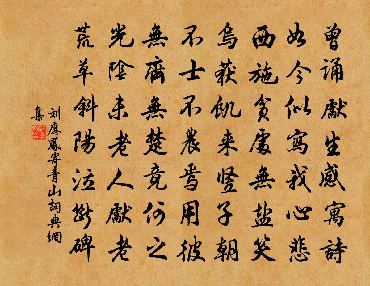 詩詞名句歷史字典書法欣賞書法字典國語詞典說文解字康熙字典古漢語字典標 題 作 者 詩 句 寄青山作者:劉應鳳 朝代:宋代寄青山原文曾誦先生感寓詩,如今似寫我心悲。西施貧處無鹽笑,烏獲飢來豎子朝。不士不農焉用彼,無齊無楚竟何之。光陰未老人先老,荒草斜陽泣斷碑。詩詞問答問:寄青山的作者是誰?答:劉應鳳問:寄青山寫於哪個朝代?答:宋代劉應鳳寄青山書法欣賞寄青山書法作品詩詞推薦夏日雜興四首張耒〔宋代〕牆下溪流清且長,夾溪喬木雨蒼蒼。裊風翠果擎枝重,照水圓荷舞葉涼。蝸殼已枯黏粉壁,燕泥時落污書床。南山驀山溪(春)杜旟〔宋代〕春風如客,可是繁華主。紅紫未全開,早綠遍、江南千樹。一番新火,多少倦遊人,纖腰柳,不知愁,猶作風前舞春日雜賦陸游〔宋代〕羈懹病思正厭厭,詩卷漁竿信手拈。老境何嘗忘一笑,春風也解到窮閻。殘花滿地無餘萼,新筍掀泥已露尖。轉老枕簟入林僻花瓜留客遲十韻葉茵〔宋代〕意到景自到,榮榮窗下花。一張彭澤琴,一甌陽羨茶。新秋晚歸陸游〔宋代〕玉粒嘗新稻,金風作好秋。鴈回沙漠信,蟬噪夕陽愁。立久雲生岫,歸遲月滿樓。吟余露華冷,砧杵起江頭。同年李郎中以詩見寄仍許見過次韻和答張伯玉〔宋代〕新定溪山國,病懷忻所依。桐君談藥妙,嚴瀨得魚肥。吏退鈔書譜,朋來典道衣。軒車如顧我,春酒上苔磯。呈萬菴十章歸山白玉蟾〔宋代〕生死輪迴第幾番,塵塵劫劫不曾閒。一潭湛綠是非海,千尺粉青人我山。性地靈苗思水國,心天明月掩雲關。衣中題陶介夫見山軒方回〔宋代〕湖上山如畫,何人解見山。此心無一事,心日捲簾間。汝華岩李廌〔宋代〕道人居此岩,誦經歲雲久。鬼神夜護持,空岩擊刁斗。吁嗟已成塵,藤蘿穿石牖。煉丹砂王玠〔元代〕學道不難知。都在人為。須憑玄牝立根基。以坎填離無間斷,得造希夷。神*靜相依。龍虎皈隨。無中養就個嬰兒讀家集吳龍翰〔宋代〕吾家友堂翁,硯影雙鬢寒。刻志鑽書史,篝燈照夜闌。學術三代上,文章兩漢間。胸次秋沆瀣,詞吐玉琅玕。冤哉庭際晚菊上主人齊己〔唐代〕九月將欲盡,幽叢始綻芳。都緣含正氣,不是背重陽。採去蜂聲遠,尋來蝶路長。王孫歸未晚,猶得泛金觴。次韻趙帥二首陳造〔宋代〕天公一笑晚雲殘,戲與璇穹貼白團。試問天風搖翠袖,玉肌何似玉笙寒。淒涼犯姜夔〔宋代〕聞馬嘶。出城四顧,則荒煙野草,不勝淒黯,乃著此解。琴有淒涼調,假以為名。凡曲言犯者,謂以宮犯商、商犯頌古釋慧空〔宋代〕馬師瞎卻亮師眼,一入西山更不返。我有二十二藤條,寄與山中這擔板。齊天樂劉辰翁〔宋代〕感節庵此意,復不能自己,儻見中齋及之海枯泣盡天吳淚。又漲經天河水。萬古魚龍,雷收電卷,宇宙剎那間戲。次韻賀葉運乾改官項安世〔宋代〕伊人匪□即東如,於我誰何伴退居。才到九門催引見,速來平地學追胥。雷轟古縣栽穠李,水滿芳塘泛碧渠。戲把舒嘯白玉蟾〔宋代〕豁然登高台,四天一何眇。舒懷摩丹田,靜境萬籟悄。前村生孤煙,半山吞殘照。倚劍呼黃鶴,遽然髮長嘯。臧郎中輓歌二首司馬光〔宋代〕積慶承前烈,呈才會聖時。踐揚朝有籍,治行吏為師。僚友皆親譽,黎民每去思。惜哉違世早,志業未全施。句丁謂〔宋代〕遙聞甘似醴,不特在金莖。名句推薦遠村秋色如畫,紅樹間疏黃。晏殊《訴衷情·芙蓉金菊斗馨香》 無端和淚拭胭脂,惹教雙翅垂張泌《蝴蝶兒·蝴蝶兒》 一片段預告飛減卻春,風飄萬點正愁人。杜甫《曲江二首》 漠漠輕寒上小樓,曉陰無賴似窮秋。淡煙流水畫屏幽秦觀《浣溪沙·漠漠輕寒上小樓》 重陽獨酌杯中酒,抱病起登江上台。杜甫《九日五首·其一》 千人之諾諾,不如一士之諤諤。司馬遷《史記·商君列傳》 少婦今春意,良人昨夜情。沈佺期《雜詩三首·其三》 池花春映日,窗竹夜鳴秋。李白《謝公亭·蓋謝朓范雲之所游》 慮澹物自輕,意愜理無違。謝靈運《石壁精舍還湖中作》 巧匠目意中繩,然必先以規矩為度韓非及後人《韓非子·有度》