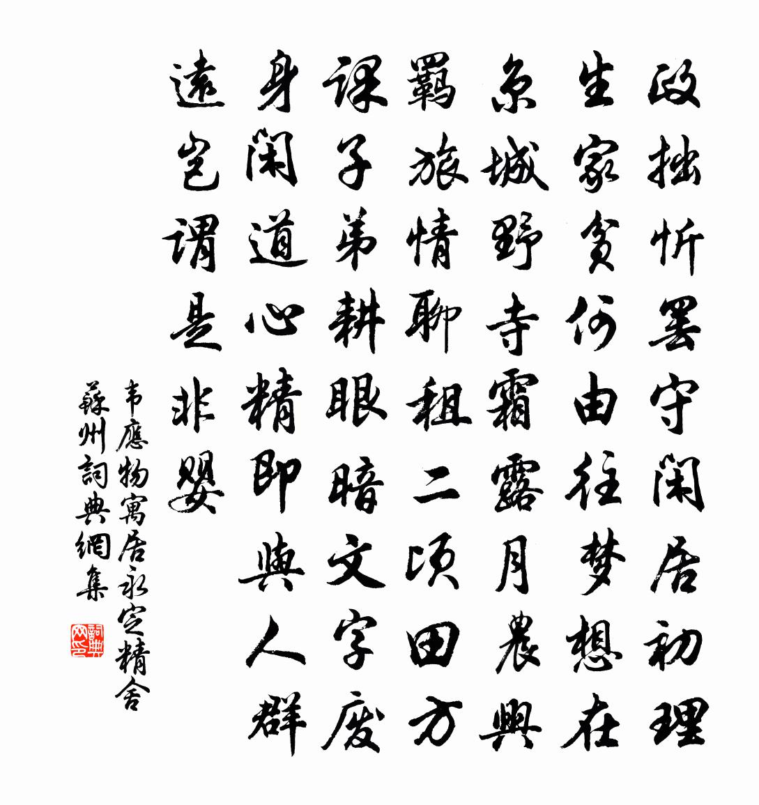 韋應物寓居永定精舍(蘇州)書法欣賞