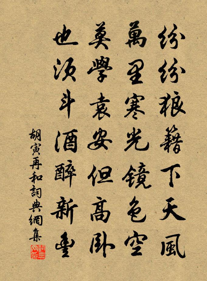 詩詞名句歷史字典書法欣賞書法字典國語詞典說文解字康熙字典古漢語字典標 題 作 者 詩 句 再和作者:胡寅 朝代:宋代再和原文紛紛狼籍下天風,萬里寒光鏡色空。莫學袁安但高臥,也須斗酒醉新豐。詩詞問答問:再和的作者是誰?答:胡寅問:再和寫於哪個朝代?答:宋代胡寅再和書法欣賞再和書法作品詩詞推薦塞上陶弼〔宋代〕星落胡王死,河竅漢使歸。雪山經夏冷,天馬入秋肥。真珠簾王質〔宋代〕翠虬夭矯拿蒼玉。飛來到、吾廬溪灣山麓。一笑忽相逢,更解包投宿。北池之畔西牆曲,與主人、呼青吸綠。恨我寄陳介進士強至〔宋代〕聖門顏子最稱貧,猶有簞瓢奉一身。罕似飢腸游太學,獨將生意托洪鈞。常時閔笑遭流俗,今日依歸得主人。早夜戲同舍與內競陳宗遠〔宋代〕龍泉函氣清,歐冶吐霞綺。干將墮龜文,莫邪潛漫理。藏鋒金匣夜光芒,銅花玉暈相磨砥。雄雌一落東與西,相從霜角 漁梁送客張可久〔元代〕浪花飛雪。船閣蒼雲缺。一片鸕鶿西照,檣燕語、柳絲結。話別。情哽咽。酒邊歌未闋。他日寄書雙鯉,順流過、虛谷志歸後賦十首方回〔宋代〕卦揲家人吉,門迎稚子歡。始知鄉國好,全勝道途難。砌草陳根綠,庭花凍蕾丹。春園容日涉,更敢上長安。感遇二十五首張耒〔宋代〕太冬積嚴殺,布令兆微霜。淒淒中園木,華采欻摧藏。豈無孤芳者,佳菊獨煌煌。後雕雖爾德,曷補蕙蘭傷。舟中偶書李處權〔宋代〕兩山相對似香山,灘響渾如八節灘。安得高風從此去,載醪猶是菊花殘。夏日陸游〔宋代〕幽花婭奼開還歛,小蝶翩翾去復留。貪睡畸翁俱不領,被人錯喚作閒愁。丁采傑輓詩劉克莊〔宋代〕文字蜚聲早,功名入手遲。晚知書誤我,時以酒澆之。曠野靈均些,新墳貞曜碑。兩翁不在子,其必在孫枝。送薛仲方歸揚州崔峒〔唐代〕佳句應無敵,貞心不有猜。慚為丈人行,怯見後生才。泛舸貪斜月,浮橈值早梅。綠楊新過雨,芳草待君來。偈三首釋有權〔宋代〕禪禪,無黨無偏。迷時千里隔,悟在口皮邊。湖州歌九十八首 其四十四汪元量〔宋代〕篷窗倚坐酒微酣,淮水無波似蔚藍。雙櫓咿啞搖不住,望中猶自是江南。朝中措(回至汴京喜而成長短句)葛立方〔宋代〕暫時莫盪出燕然。冰柱凍層檐。時節馬蹄歸路,楊花亂撲征韉。如今歸去,銀鐺宜見,七寶床邊。待得退朝花底,雪二首司空曙〔唐代〕樂遊春苑望鵝毛,宮殿如星樹似毫。漫漫一川橫渭水,太陽初出五陵高。王屋南崖見洛城,石龕松寺上方平。半山九姑山最高亭姚彀〔宋代〕一亭重構冠崇岡,下瞰千岩拱四旁。作意只圖分野景,凌空因得近天光。銀河入夜侵衣冷,玉桂乘秋泛席香。我輩次韻謝徐贊府方回〔宋代〕越燠燕寒萬里賒,相逢重接話言嘉。乘車君不輕予笠,缺酒吾惟啜子菜。斯立官銜清似水,叔原樂府麗於花。內交和陳校書祈雨有應劉宰〔宋代〕一念尤民敢憚煩,肩輿得得款祠壇。莫嫌勺水能多少,自是壺中世界寬。惺惺石釋紹曇〔宋代〕主人翁已強安名,何待區區喚一聲。坐得石頭穿透底,依然打個不惺惺。題戰島僧居(在江之心)杜荀鶴〔唐代〕師愛無塵地,江心島上居。接船求化慣,登入赴齋疏。載土春栽樹,拋生日餧魚。入雲蕭帝寺,畢竟欲何如?名句推薦晝成淒黯,雁飛過、垂楊轉青。吳文英《慶 * ·秋感》 青天有月來幾時?我今停杯一問之。李白《把酒問月·故人賈淳令予問之》 金絡青驄白玉鞍,長鞭紫陌野遊盤。萬楚《驄馬》 花片片飛風弄蝶,柳陰陰下水平橋。張先《浣溪沙·樓倚春江百尺高》 煙霏雲斂;其容清明,天高日晶;歐陽修《秋聲賦》 人歸山郭暗,雁下蘆洲白。韋應物《夕次盱眙縣》 冰炭不同器而久,寒暑不兼時而至韓非及後人《韓非子·顯學》 打起黃鶯兒,莫教枝上啼。金昌緒《春怨 / 伊州歌》 古人學問無遺力,少壯工夫老始成。陸游《冬夜讀書示子聿》 志意修則驕富貴,道義重則輕王公。荀子《荀子·修身》