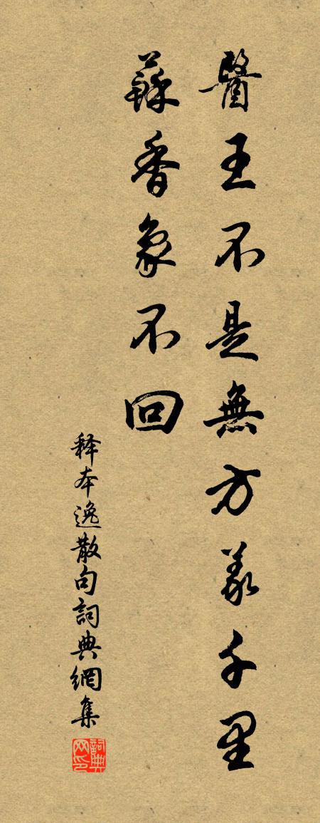 詩詞名句歷史字典書法欣賞書法字典國語詞典說文解字康熙字典古漢語字典標 題 作 者 詩 句 句作者:釋本逸 朝代:宋代句原文醫王不是無方義,千里蘇香象不回。詩詞問答問:句的作者是誰?答:釋本逸問:句寫於哪個朝代?答:宋代釋本逸句書法欣賞句書法作品詩詞推薦明日大夫曾豐〔宋代〕明日大夫,何嘉貺兮。老火亢兮,白露降兮。公生與俱,凝骨相兮。寢藹藹然,朝之望兮。仙鶴樓趙澤〔宋代〕嘉陵天虹飲東海,西溪玉帶縈南山。諸峰四面羅髻鬟,周遭百里如一環。炊煙萬灶斜陽里,繁弦脆管東風起。偈頌二百零五首釋正覺〔宋代〕溶溶曳曳山上雲,潺潺湲湲山下水。試問其間雲水人,更於何處求諸己。送陳郎中知嚴州徐照〔宋代〕去作嚴光郡,前為列宿官。水程趨闕近,豐歲得民安。公暇行隨鶴,宵寒臥聽灘。千峰臨舊榭,曾約野人看。春望雜詠遠樹宋祁〔宋代〕如帷復如薺,歷歷映滄洲。故障千里目,剩作一重愁。夏日三首張耒〔宋代〕黃簾翠幕斷飛蠅,午影當軒睡未興。枕穩海魚鑴紫石,扇涼山雪畫青繒。廊陰日轉雕欄樹,坐冷風生玉碗冰。滿案是非吟邵雍〔宋代〕是短非長,好丹非素。一生區區,未免愛惡。愛惡不去,何由是非。愛惡既去,是非何為。奉和仲通秋宴韓維〔宋代〕參差天仗拂雲台,雉尾分行劍佩來。萬壽稱觴臣節罄,九韶張樂帝顏開。班趨玉佩花相鬥,舞入文茵雪屢回。疏賤楊仲子攜詩見過次韻酬贈並呈誠齋二首張鎡〔宋代〕愛水移居宅,行藏豈但迂。若非風月管,枉伴竹松臞。野服常寬頻,芒鞋亦斷絇。請君看此老,堪作貴人無。詠槿李白〔唐代〕園花笑芳年,池草艷春色。猶不如槿花,嬋娟玉階側。芬榮何夭促,零落在瞬息。豈若瓊樹枝,終歲長翕赩。燭影搖紅·題安陸浮雲樓廖世美〔宋代〕靄靄春空,畫樓森聳凌雲渚。紫薇登覽最關情,絕妙誇能賦。惆悵相思遲暮。記當日、朱闌共語。塞鴻難問,岸柳送佛照光老赴徑山陸游〔宋代〕大覺住育王,拗折拄杖強到底;佛照住育王,挑得缽囊隨詔起。從來宗門話,只要句不死。說同說異庵外人,若是湖南舟中贈日者張鎡〔宋代〕坐上君但笑,人間我最愚。百年休較命,今日且航湖。地曠山霏薄,風薰水葉粗。寸陰方解惜,總是已工夫。江上二首王安石〔宋代〕書自江邊使,鄉鄰病侔稠。何言萬里客,更作百身憂。補敗今誰恤,趨生我自羞。西南雙病眼,落日倚扁舟。河清縣河亭韋莊〔唐代〕由來多感莫憑高,竟日衷腸似有刀。人事任成陵與谷,大河東去自滔滔。途中逢故人話西山讀書早曾遊覽杜牧〔唐代〕西岩曾到讀書堂,穿竹行莎十里強。湖上夢餘波灩灩,嶺頭愁斷路茫茫。經過事寄煙霞遠,名利塵隨日月長。莫道陪虞使君登岳陽樓戴復古〔宋代〕片帆飛過洞庭來,百尺巍巍水面開。疑泛靈槎上河漢,如從弱水到蓬萊。鈞天廣樂無聞矣,袖劍仙人安在哉。物物蘆簟郭印〔宋代〕炎方需此物,收蓄遍家家。致用同桃竹,勞工笑象牙。雖無花色麗,卻見水紋斜。展臥南窗下,蕭然興莫加。雜詠一百首扁鵲劉克莊〔宋代〕疾始於榮衛,哀哉不豫謀。貪生諱聞死,天下幾桓侯。天仙子 淥水亭秋夜納蘭性德〔清代〕水浴涼蟾風入袂,魚鱗觸損金波碎。好天良夜酒盈樽,心自醉,愁難睡,西南月落城烏起。名句推薦到家應是,童稚牽衣,笑我華顛。吳激《訴衷情·夜寒茅店不成眠》 能近取譬,可謂仁之方也已。孔子弟子《論語·雍也篇》 莫失莫忘,仙壽恆昌。曹雪芹《紅樓夢·第八回》 煢煢孑立,形影相弔。西晉·李密《陳情表》 百花頭上開,冰雪寒中見。辛棄疾《生查子·重葉梅》 擁紅妝,翻翠蓋,花影暗南浦。高觀國《祝英台近·荷花》 欲勝人者,必先自勝;欲論人者,必先自論;欲知人者,必先自知。呂不韋《呂氏春秋·紀·季春紀》 壚邊人似月,皓腕凝霜雪。韋莊《菩薩蠻·人人盡說江南好》 誰知江上酒,還與故人傾。周紫芝《臨江仙·送光州曾使君》 絡緯秋啼金井闌,微霜淒淒簟色寒。李白《長相思·其一》
