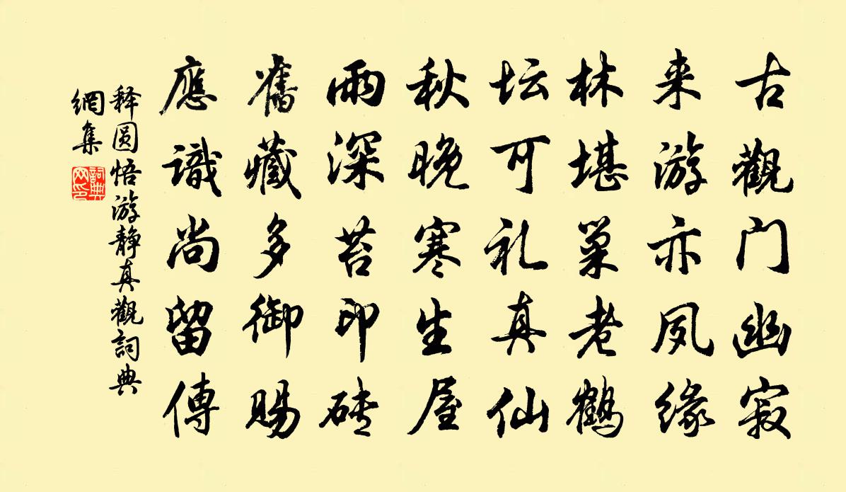 詩詞名句歷史字典書法欣賞書法字典國語詞典說文解字康熙字典古漢語字典標 題 作 者 詩 句 游靜真觀作者:釋圓悟 朝代:宋代游靜真觀原文古觀門幽寂,來游亦夙緣。林堪巢老鶴,壇可禮真仙。秋晚寒生屋,雨深苔印磚。舊藏多御賜,應識尚留傳。詩詞問答問:游靜真觀的作者是誰?答:釋圓悟問:游靜真觀寫於哪個朝代?答:宋代釋圓悟游靜真觀書法欣賞游靜真觀書法作品詩詞推薦又漁父四首蒲壽宬〔宋代〕昨日賣魚到城郭,暑氣千門正炮烙。買酒歸來風露涼,始信人間漁父樂。永遇樂(次稼軒北固樓詞韻)姜夔〔宋代〕雲隔迷樓,苔封很石,人向何處?數騎秋煙,一篙寒汐,千古空來去。使君心在,蒼崖綠嶂,苦被北門留住。有尊蓬萊客 贈於疃化網楊法師馬鈺〔元代〕行法急。留心行法奔波客。奔波客。外行救治,內忘通隔。木金三間當搜測。居於物外能趨溺。能趨溺。氣和神暢驚秋薛逢〔唐代〕露竹風蟬昨夜秋,百年心事付東流。明霜義分成虛話,阜俗文章惜暗投。長笑李斯稱溷鼠,每多莊叟喻犧牛。五湖涇溪南藍山下有落星潭可以卜築余泊舟石上寄何判官昌浩李白〔唐代〕藍岑竦天壁,突兀如鯨額。奔蹙橫澄潭,勢吞落星石。沙帶秋月明,水搖寒山碧。佳境宜緩棹,清輝能留客。恨君春草劉敞〔宋代〕春草綿綿不可名,水邊原上亂抽榮。似嫌車馬繁華地,才入城門便不生。和武公望雪梅五首廖行之〔宋代〕自是陽和生處有,不同凡卉競時開。居然茹雪猶全節,底為藏冰但卻災。送恭叔兄赴省二首劉宰〔宋代〕晞驥長慚馬不前,著鞭何意在君先。須懲牛後羞餘子,獨占鰲頭下九天。上苑未須誇得意,道山共擬更登仙。雖然和楊花趙希逢〔宋代〕稟受天香兼國色,一枝漏卻春信息。斷橋寂寞黃昏時,何人前村雪裡歸。五出六出夸兩樣,只將一眼為識賞。相看寄審知並屬彥博三首趙蕃〔宋代〕病榻論詩罷,僧輿趨駕歸。倦書疏竹几,多夢繞湖扉。赤葉霜前墜,黃花雨後稀。直堪凋鬢髮,何只減腰圍。寓言劉克莊〔宋代〕夢裡依稀若在傍,安知覺後忽他鄉。裁成出戌衣封去,挑就回紋錦寄將。多謝舊官留破鏡,半為盪子守空房。偶逢連日得雜花數株藝之池亭感而有作韓元吉〔宋代〕七十已過半,所向意不如。一官計大州,僕僕畏簡書。酒薄不可醉,歌舞見已疏。亦有淡生活,詩成自相紓。池面即事章甫〔宋代〕探報無虛日,淮東有捷音。周王方北伐,蠢動敢南侵。四海當多事,群公在一心。祖宗功業盛,德澤結民深。到宣武三十韻李紳〔唐代〕七月趨梁苑,三年謝尹京。舊風除物蠹,新律奉師貞。龍節雙油重,蛇矛百練明。躍魚連後旆,騰虎耀前旌。路轉錢司理李季牖曾豐〔宋代〕天下萬谿山,天上萬星宿。摸索君胸中,往往無不有。中原染腥膻,歲月亦云久。匪伊丁未年,乃我舊陽九。天運聖號雅二篇趙湘〔唐代〕天下既平,狄人既庭。其棘匪勞,神聖以寧。無亂斯聰,無惑斯明。衣裳自垂,冕旒是凝。臧倉王安石〔宋代〕位在萬乘師,孟軻猶不遇。豈雲貧與賤,世道非吾趣。意行天下福,事忤由然去。命也固有在,臧倉汝何與。哭鄆州孔給事祖無擇〔宋代〕聖孫家世嗣衣纓,夫子當朝有令名。許國志堅存亮直,致君心切贊隆平。明庭抗疏忠言在,列郡班條惠化行。不享壽星相仇遠〔宋代〕西方長庚今我是,東郡短人豈兄弟。修眉班首頂如鬀,蹡蹡衣裳猶楚制。翩然來游太平世,市上小兒驚且睨。身外次韻答達善舒岳祥〔宋代〕道不能鳴假物鳴,數篇詩見故人情。重經喪亂成南北,多謝交遊訪死生。我始欲愁將老至,公須少忍待時平。古來名句推薦並官省事,靜事息役,上下用心,惟農是務也。房玄齡《晉書·列傳·第十七章》 馬穿楊柳嘶,人倚鞦韆笑,探鶯花總教春醉倒。王磐《清江引·清明日出遊》 畫閣朱樓盡相望,紅桃綠柳垂檐向。王維《洛陽女兒行》 好景落誰詩句里,蹇驢馱我畫圖間。趙渢《黃山道中》 君子以行言,小人以舌言佚名《孔子家語·顏回》 悲商叩林,白雲依山。陶淵明《閒情賦》 夫尚賢者,政之本也。墨子《墨子·08章 尚賢(上)》 壚邊人似月,皓腕凝霜雪。韋莊《菩薩蠻·人人盡說江南好》 雁啼紅葉天,人醉黃花地,芭蕉雨聲秋夢裡。張可久《清江引·秋懷》 遠村秋色如畫,紅樹間疏黃。晏殊《訴衷情·芙蓉金菊斗馨香》