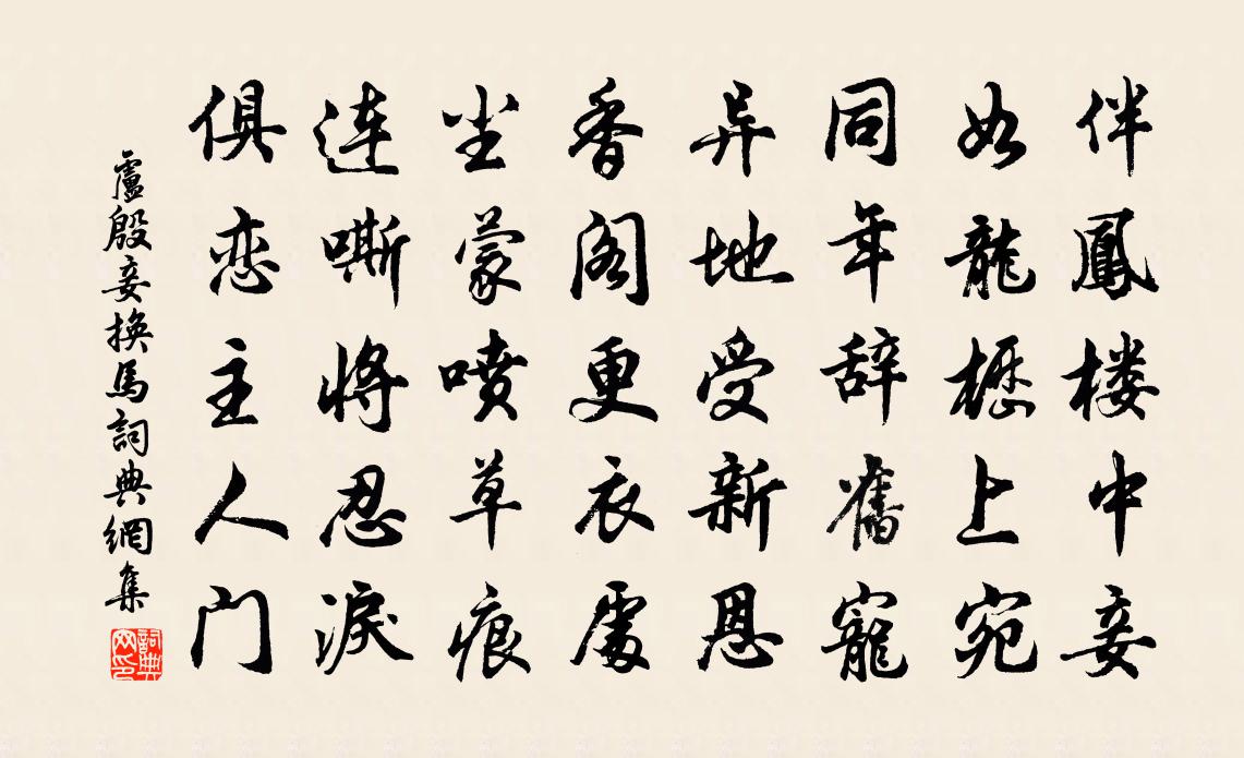 詩詞名句歷史字典書法欣賞書法字典國語詞典說文解字康熙字典古漢語字典標 題 作 者 詩 句 妾換馬作者:盧殷 朝代:唐代妾換馬原文伴鳳樓中妾,如龍櫪上宛。同年辭舊寵,異地受新恩。香閣更衣處,塵蒙噴草痕。連嘶將忍淚,俱戀主人門。詩詞問答問:妾換馬的作者是誰?答:盧殷問:妾換馬寫於哪個朝代?答:唐代問:妾換馬是什麼體裁?答:樂府盧殷妾換馬書法欣賞妾換馬書法作品注釋全唐詩:卷470-1詩詞推薦送無灰酒周馬師口占三絕劉宰〔宋代〕寶璽來歸萬國春,海隅花鳥亦欣欣。皇恩更向將軍厚,乞與人間自在身。次鄭丈韻又一小詩代簡王洋〔宋代〕籬間殘菊舊令尹,霜後古柏嚴諸侯。梅花若不報春信,誰表東風第一流。詠史宋祁〔宋代〕一馬浮江擁瑞圖,青規群彥掎長裾。本緣獻替居門下,不為江蝦與{上制下魚}魚。喜晴王炎〔宋代〕雨過兒童飽飯牛,趁晴耕墾種來牟。田家作苦無儲蓄,待哺全須麥有秋。負薪行杜甫〔唐代〕夔州處女發半華,四十五十無夫家。更遭喪亂嫁不售,一生抱恨堪咨嗟。土風坐男使女立,應當門戶女出入。十猶登鳳凰山懷子瞻陳師道〔宋代〕數篇曾見使君詩,前後登臨各一時。妙舞新聲難得繼,清風明月郤相宜。朱闌行遍花間路,看盡當年題壁處。更有傷妓人董氏四首張說〔唐代〕董氏嬌嬈性,多為窈窕名。人隨秋月落,韻入搗衣聲。粉蕊粘妝簏,金花竭翠條。夜台無戲伴,魂影向誰嬌。舊亭採蓮子張耒〔宋代〕菡萏香蓮十頃陂,小姑貪戲採蓮池。晚來弄水船頭濕,更脫新裙裹鴨兒。秋暮登北樓王武陵〔唐代〕秋滿空山悲客心,山樓晴望散幽襟。一川紅樹迎霜老,數曲清溪繞寺深。寒氣急催遙塞雁,夕風高送遠城砧。三年早秋山中作李山甫〔唐代〕榮枯無路入千峰,肥遁誰諧此志同。司寇亦曾遭魯黜,步兵何事哭途窮。檜松瘦健滴秋露,戶牖虛明生晚風。山思贈柳三解晁說之〔宋代〕桃李那知楊柳恨,故時風雨不依依。自從彭澤無人後,青眼雖開心事非。新治火閣陸游〔宋代〕老子今朝喜有餘,房櫳新畢得安居。爐紅氈暖不出戶,木落窗明常讀書。浮蟻撇嘗人散後,蹲鴟煨熟雪飛初。頹然句趙汝鐩〔宋代〕巧須出大造,清欲與秋爭。鳥殘桃見核,蟲蠹葉留痕。山家釋斯植〔宋代〕一溪流水繞煙霞,路入青松第幾家。胡蝶傍人飛不去,隔牆開盡碧桃花。甲戌客臨安唐涇〔宋代〕金谷煙花醉未醒,鼾邊無夢到功名。十郎復里長函劍,六丈胸中舊貯兵。天豕星沈狼有影,海鰌風緊鶴無聲。如聞煉丹井陳岩〔宋代〕閒中惟有高低枕,老去寧無內外丹。千載稚川今往矣,誰言古井不生瀾。玉霄花張鎡〔宋代〕虛皇清晏仙班朝,寶花隨現非根苗。璆林瑤要地振靈響,飛彩燦蒨輝蒼霄。下憐人宇厭凡卉,特許福地生芳條。細遠思齊己〔唐代〕遠思極何處,南樓煙水長。秋風過鴻雁,遊子在瀟湘。海面雲生白,天涯墮晚光。徘徊古堤上,曾此贈垂楊。送台倅趙叔明趨朝高文虎〔宋代〕羲輪正弭節,別駕忽揚鞭。游從亦雨暑,朋盍知何年。欲敘情繾綣,難得形周旋。譜系玉為牒,輝華珠在淵。漢家滿江紅慢王吉昌〔元代〕志士窮元,憑決裂、豁開塵網。務理神、和暢真素、內純恬養。一氣氤氳成造化,九宮上下通來往。運三光、臨照名句推薦故國三千里,深宮二十年。張祜《宮詞·故國三千里》 兩岸猿聲啼不住,輕舟已過萬重山李白《早發白帝城/白帝下江陵》 恩宜自淡而濃,先濃後淡者人忘其惠洪應明《菜根譚·概論》 得眾而不得其心,則與獨行者同實。管仲《管子·參患》 又聞子規啼夜月,愁空山李白《蜀道難》 薄衾小枕涼天氣,乍覺別離滋味。柳永《憶帝京·薄衾小枕涼天氣》 有眼不識泰山。施耐庵《水滸傳·第二回》 多事年年二月風,翦出鵝黃縷。納蘭性德《卜運算元·新柳》 空山新雨後,天氣晚來秋。王維《山居秋暝》 坐蔭從容煩暑退,清心恍惚微香觸。陸容《滿江紅·詠竹》