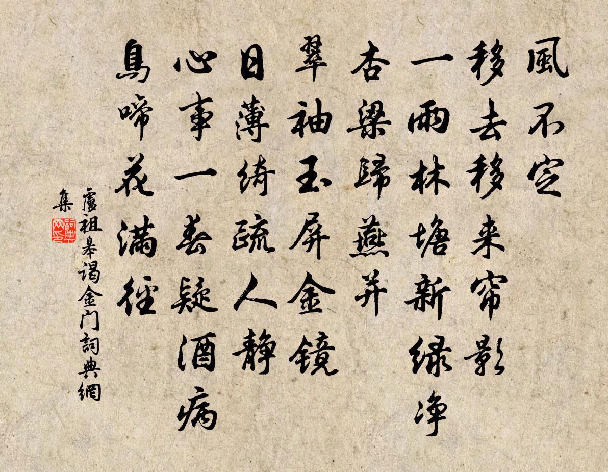 - 一曲新詞酒一杯,去年天氣舊亭台。晏殊《浣溪沙·一曲新詞酒一杯》
