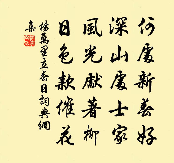 詩詞名句歷史字典書法欣賞書法字典國語詞典說文解字康熙字典古漢語字典標 題 作 者 詩 句 立春日作者:楊萬里 朝代:宋代立春日原文何處新春好,深山處士家。風光先著柳,日色款催花。詩詞問答問:立春日的作者是誰?答:楊萬里問:立春日寫於哪個朝代?答:宋代問:楊萬里的名句有哪些?答:楊萬里名句大全楊萬里立春日書法欣賞立春日書法作品詩詞推薦飲翁常之宅分韻得友字陳峴〔宋代〕杖屨隨春風,邂逅得良友。行行西域道,觸目盡花柳。還步過苑茨,交歡亦何有。東鄰頗好事,邀我意良厚。南窗還里陳師道〔宋代〕曠士愛吾廬,遊子悲故鄉。慷慨四方誌,老衰但悲傷。虛名自成誤,失得略相當。暮年還家樂,未覺道路長。閭里送杜季習四首劉子翬〔宋代〕搖落難堪更語離,曉風吹月上征衣。送君直到長亭去,隻影愁尋舊路歸。宮詞宋白〔宋代〕水晶宮閉月光鋪,羯鼓聲乾雨點粗。一曲未終餘思在,急宣前殿喚花奴。晴晚立田間二首趙蕃〔宋代〕落日明深塢,微流咽斷橋。牛童肩滯穗,汲婦抱遺樵。誰謂居田賤,殊勝處富驕。歸哉各其所,吾亦飫吾瓢。仙岩寺張繼先〔宋代〕依然仙跡倚岩開,真館何年竟草萊。今日梵宮方得到,舊時玄鶴也飛來。一條澗水琉璃合,萬疊雲山紫翠堆。禪客放歌行陳師道〔宋代〕春風永巷閉娉婷,長使青樓誤得名。不惜捲簾通一顧,怕君著眼未分明。當年不嫁惜娉婷,抹白施朱作後生。說與維摩像唐楊惠之塑在天柱寺蘇軾〔宋代〕昔者子輿病且死,其友子祀往問之。跰?鮮鑒井自嘆息,造物將安以我為。今觀古塑維摩像,病骨磊嵬如枯龜。乃使東川郵亭月元稹〔唐代〕君多務實我多情,大抵偏嗔步月明。今夜山郵與蠻嶂,君應堅臥我還行。柳翁承贊〔唐代〕斜拂中橋遠映樓,翠光駘蕩曉煙收。洛陽才子多情思,橫把金鞭約馬頭。高出營門遠出牆,朱闌門閉綠成行。將軍贈簡竹屋錢舜選〔宋代〕山房幽潔處,桃李不能春。獨與此君子,一如吾故人。林空風有韻,影靜月無塵。肝肺皆冰雪,吟來字字新。偈頌二百零五首釋正覺〔宋代〕陰陽爻象此為宗,殺活機頭看變通。玉女退身功後位,木人引步異中同。一塵不受能虛廓,萬像無遺卻混融。借得和微之韓維〔宋代〕庭訟蕭然晝景清,每因閒暇接耆英。言詩屢奉從容論,對酒常懷淡泊情。解秩尚思嵩嶠色,入朝還聽禁鐘聲。憐君明月堂范成大〔宋代〕古業禪窟鎖岩扃,拂子崔嵬拄杖橫。塔上佛光堂上月,莫言公案不分明。臨川逢鄭遐之之雲夢嚴羽〔宋代〕天涯十載無窮恨,老淚燈前語罷垂。明發又為千里別,相思應盡一生期。洞庭波浪帆開晚,雲夢蒹葭鳥去遲。世亂題蜀江觀姚勉〔宋代〕光武中興三十年,愈民痼疾發靈泉。吾泉何止如光武,瑞井宜通瑞錦邊。雜詩 其三陶淵明〔魏晉〕我行未雲遠,回顧慘風涼。春燕應節起,高飛拂塵梁。邊雁悲無所,代謝歸北鄉。離昆鳴清池,涉暑經秋霜。愁人牡丹詩十首宋白〔宋代〕風排香陣拂瑤墀,御苑新晴爛漫時。十五素娥羞水色,三千紅面洗胭脂。宮腰暎酒思輕舞,檀口偎牋欲詠詩。鐵石拋球樂水龍吟令/拋球樂佚名〔宋代〕洞天景色常春,嫩紅淺白開輕萼。瓊筵鎮起,金爐煙重,香凝錦幄。窈窕神仙,妙呈歌舞,攀花相約。彩雲月轉,送孔生再遊河北歐陽修〔宋代〕志士惜白日,高車無停輪。孔生東魯儒,年少勇且仁。大軸獻理匭,長裾弊街塵。門無黃金聘,家有白髮親。寒風名句推薦大哉,時之相生也!達者可與幾矣。王通《中說·卷五·問易篇》 獨抱濃愁無好夢,夜闌猶剪燈花弄。李清照《蝶戀花·暖雨晴風初破凍》 章台柳,章台柳,昔日青青今在否?韓翃《章台柳·寄柳氏》 坐看黑雲銜猛雨,噴灑前山此獨晴。崔道融《溪上遇雨二首》 林花掃更落,徑草踏還生。孟浩然《春中喜王九相尋 / 晚春》 移舟泊煙渚,日暮客愁新。孟浩然《宿建德江》 巧匠目意中繩,然必先以規矩為度韓非及後人《韓非子·有度》 只有精忠能報國,更無樂土可為家。 * 《元旦口占用柳亞子懷人韻》 暝色入高樓,有人樓上愁。李白《菩薩蠻·平林漠漠煙如織》 在世百年,那有三萬六千日之樂。程登吉《幼學瓊林·卷二·老幼壽誕》