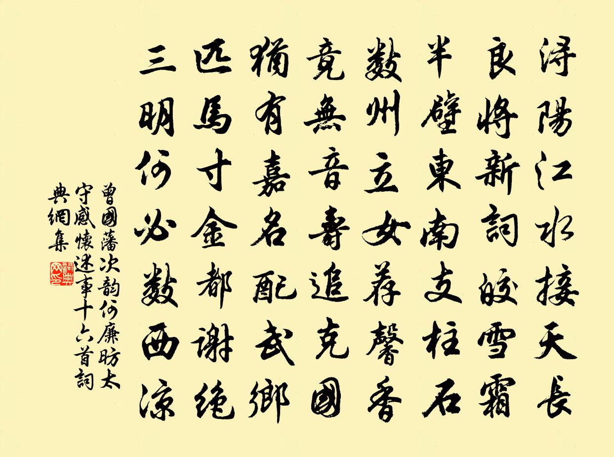 詩詞名句歷史字典書法欣賞書法字典國語詞典說文解字康熙字典古漢語字典標 題 作 者 詩 句 次韻何廉昉太守感懷述事十六首作者:曾國藩 朝代:清代原文潯陽江水接天長,良將新詞皎雪霜。半壁東南支柱石,數州立女薦馨香。竟無音壽追克國,猶有嘉名配武鄉。匹馬寸金都謝絕,三明何必數西涼!詩詞問答問:《次韻何廉昉太守感懷述事十六首》的作者是誰?答:曾國藩問:該詩寫於哪個朝代?答:清代書法欣賞次韻何廉昉太守感懷述事十六首書法作品詩詞推薦贈致政楊孟堅宣德楊時〔宋代〕子云論薦有王音,陸賈年來老境侵。自守一官曆三世,退令諸子分千金。平生器業成幽夢,白首功名負壯心。賴有汾陰十首真宗〔宋代〕報功厚載,祀事惟明。思文烈考,道濟群生。侑神定位,協德安平。聲潔並薦,享於克誠。送葉吉甫往建康項安世〔宋代〕同是匡廬客,匡廬又送君。衣袍霜後薄,戈甲夜深聞。目斷甌溪月,心搖楚岫雲。東西各有慕,魂夢亦相分。湖亭席上武衍〔宋代〕寒食梨花月,新晴楊柳風。愁融山色里,興極酒杯中。綠髮日夜變,青春今古同。忍教行樂處,容易夕陽紅。惜春郎(大石調)柳永〔宋代〕玉肌瓊艷新妝飾。好壯觀歌席,潘妃寶釧,阿嬌金屋,應也消得。屬和新詞多俊格。敢共我勍敵。恨少年、枉費疏哭李端周朴〔唐代〕三年翦拂感知音,哭向青山永夜心。竹在曉煙孤鳳去,劍荒秋水一龍沉。新墳日落松聲小,舊色春殘草色深。不及荀巨伯探病友 / 荀巨伯探友劉義慶〔南北朝〕荀巨伯遠看友人疾值胡賊攻郡,友人語巨伯曰:“吾今死矣,子可去。”巨伯曰:“遠來相視,子令吾去,敗義以戊子元日凡陽道中二首方回〔宋代〕軋軋箯輿獵曉霜,孤征無復共椒觴。浮生物物身為累,垂老年年節是常。稍聽村田喧鼓笛,遙憐兒女欠衣裳。於潛詩送譙知合姜特立〔宋代〕一去丹墀六換春,追尋舊事晃如新。屢煩攜酒來青邸,相伴同班上紫宸。自分此生成死別,豈知今日更情親。飛騰偈頌四十一首釋普寧〔宋代〕頑處非常放軟頑,偏能陸地要撐船。驀然撐向龍門去,蹤跡不知往那邊。幾多望斷空惆悵,亦復嗟嘆淚潸然,巡得自金山放船至焦山蘇軾〔宋代〕金山樓觀何耽耽,撞鐘擊鼓聞淮南。焦山何有有修竹,採薪汲水僧兩三。雲霾浪打人跡絕,時有沙戶祈春蠶。我來南歌子權無染〔宋代〕照水金蓮小,披風寶麝浮。雪中開占百花頭。一味瀟瀟灑灑、自風流。病態含春瘦,芳魂傍月愁。輕煙微雨更清幽朱幹辦求頌釋正覺〔宋代〕磨洗紛塵百念秋,湛然源底未分流。其間自照因緣外,水淨娟娟浮月鉤。偈七首釋允韶〔宋代〕寶劍未出匣,神光射鬥牛。千兵雖易得,一將實難求。水調歌頭(奉別諸同官)吳潛〔宋代〕便作陽關別,煙雨暗孤汀。浮屠三宿桑下,猶自不忘情。何況情鍾我輩,聚散蔥蔥草草,真箇是雲萍。上下四方客侄孫榘獻醉鰵以一絕復之陳著〔宋代〕年來只識釜中魚,出海修鱗夢也無。寶鰵帶糟俄入眼,兒童驚動哄寒廚。約眉之寓公飲郡圃梅下分韻得動字魏了翁〔宋代〕窮陰雕殘年,小雨雜寒凍。野迥山色枯,木落天宇空。殷勤玉雪友,歲歲管賓送。孤標耿黃昏,清艷橫螮蝀。從渠嵩山石淙侍宴應制蘇味道〔唐代〕雕輿藻衛擁千官,仙洞靈溪訪九丹。隱曖源花迷近路,參差嶺竹掃危壇。重崖對聳霞文駁,瀑水交飛雨氣寒。天洛寄宣議大師英公范杲〔宋代〕西遊久不得師書,睹物相思展篆圖。情厚未忘蓮社約,分深曾伴橘洲居。青雲作陣宜長臥,白酒資吟莫破除。見說偈頌一百二十三首釋崇岳〔宋代〕達磨九年面壁,二祖立雪齊腰。三人證龜成鱉,一塊頑銅鈍鐵。名句推薦合歡桃核終堪恨,里許元來別有人。溫庭筠《南歌子詞二首 / 新添聲楊柳枝詞》 瑤池阿母綺窗開,黃竹歌聲動地哀李商隱《瑤池》 君家玉女從小見,聞道如今畫不成。黃庭堅《謝張仲謀端午送巧作》 生事且瀰漫,願為持竿叟。綦毋潛《春泛若耶溪》 陽春布德澤,萬物生光輝。佚名《長歌行》 飛來山上千尋塔,聞說雞鳴見日升。王安石《登飛來峰》 君子之澤五世而斬孟子《孟子·離婁章句下·第二十二節》 霜輕未殺萋萋草,日暖初乾漠漠沙。白居易《早冬》 風嗥雨嘯,昏見晨趨。鮑照《蕪城賦》 銅鑄金鏞振紀綱,聲傳海外播戎羌。曹雪芹《交趾懷古》
