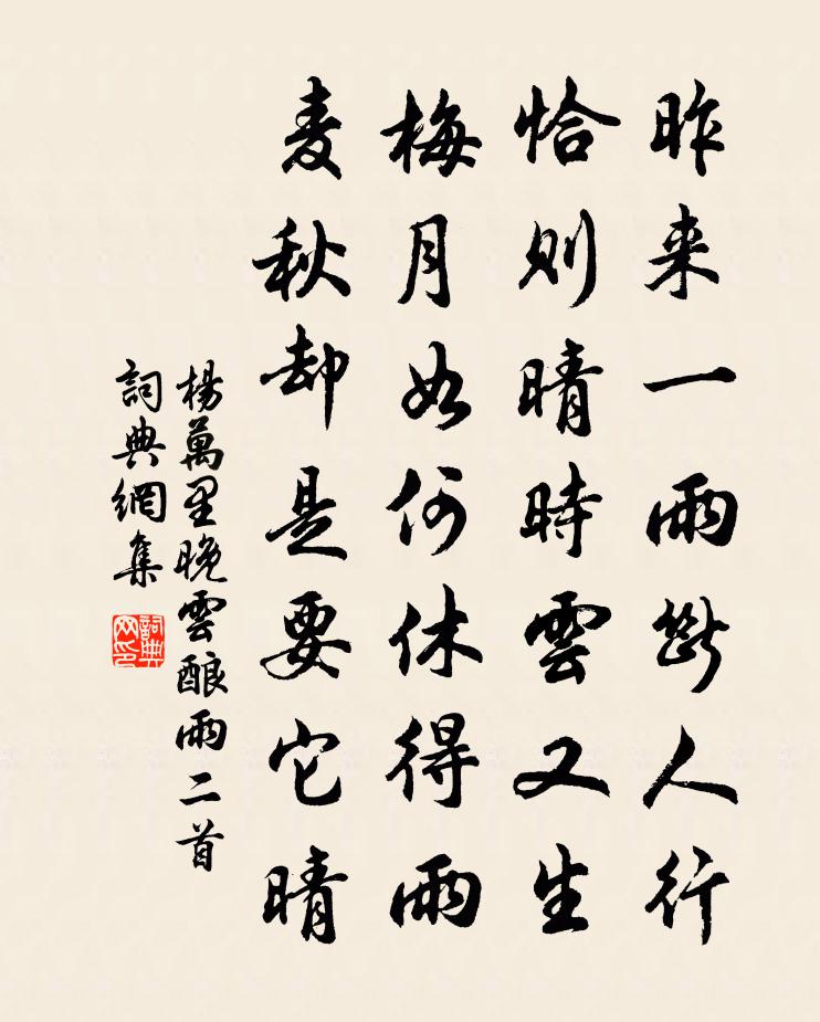昨來一雨斷人行,恰則晴時雲又生。梅月如何休得雨,麥秋卻是要它晴。