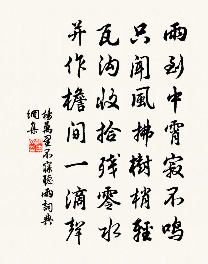 雨到中霄寂不鳴,只聞風拂樹梢輕。瓦溝收拾殘零水,並作檐間一滴聲。