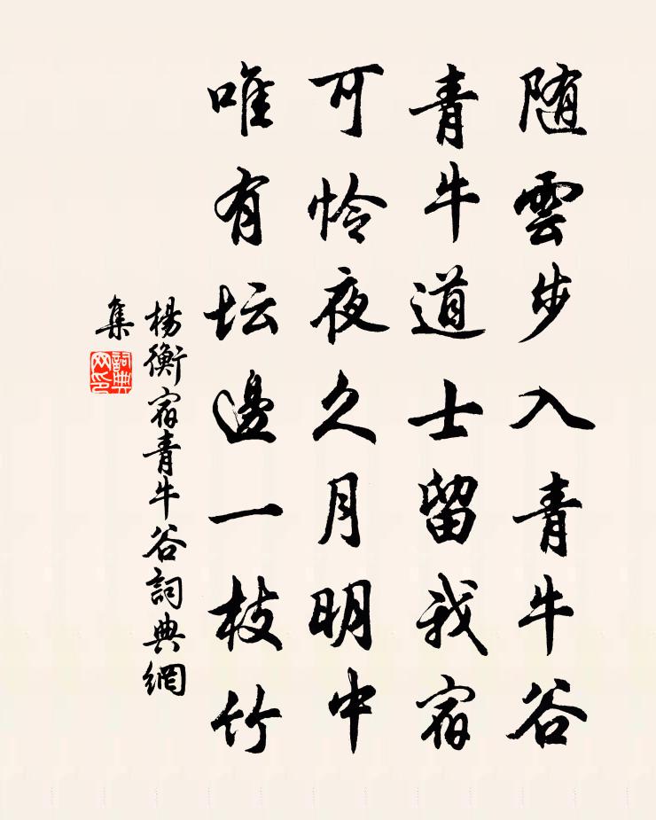 詩詞名句歷史字典書法欣賞書法字典國語詞典說文解字康熙字典古漢語字典標 題 作 者 詩 句 宿青牛谷作者:楊衡 朝代:唐代宿青牛谷原文隨雲步入青牛谷,青牛道士留我宿。可憐夜久月明中,唯有壇邊一枝竹。詩詞問答問:宿青牛谷的作者是誰?答:楊衡問:宿青牛谷寫於哪個朝代?答:唐代問:宿青牛谷是什麼體裁?答:七絕楊衡宿青牛谷書法欣賞宿青牛谷書法作品注釋全唐詩:卷465-54詩詞推薦詠蟬陸蒙老〔宋代〕綠蔭深處汝行藏,風露從來是稻粱。莫倚高枝縱繁響,也宜回首顧螳螂。代張起岩和清塘詩金履祥〔宋代〕清塘佳哉,上有橫霄映漢之卿雲,下有通川入海之流泉。不捨晝夜揚清清,清流迴環山奔迎。暮雨層波綠,朝暉山村夜白居易〔唐代〕霜草蒼蒼蟲切切,村南村北行人絕。獨出前門望野田,月明蕎麥花如雪。春雨陸游〔宋代〕苦雨何時止,微雲又作陰。傍檐時小立,隱几復微吟。枝重殘紅濕,堤平漲綠深。物華元自好,老病負登臨。嘆命孟郊〔唐代〕三十年來命,唯藏一卦中。題詩還問易,問易蒙復蒙。本望文字達,今因文字窮。影孤別離月,衣破道路風。歸去題雙楠軒蘇軾〔宋代〕南軒前頭兩佳木,先生撫翫常不足。尤愛薰風五月初,白銀花開光照屋。晚春次韻戴復古〔宋代〕酒醒愁難醒,春歸客未歸。鶯啼花雨歇,燕立柳風微。世路多殊轍,人生貴識機。低頭飽一粟,仰首愧雲飛。禹廟王銍〔宋代〕夏後東階殯,遺蹤照路隅。今觀四山拱,猶似百神趨。功已百王冠,言尤萬世謨。死生懷舜德,舊邑對姚虞。小園秋夕劉筠〔宋代〕枳落莎渠急夜蟲,翛然平子四愁中。栗林忽感雕陵鵲,雲表初過代嶺鴻。阮籍臥惟疏鑾月,馬融橫笛遠含風。郎潛益昌次費伯矩贈行韻五首洪咨夔〔宋代〕掎角中原二百州,熟知彼已是良籌。時賢所及都能幾,清渭黃河祗自流。頌石頭和尚草庵歌釋印肅〔宋代〕中下聞之必生怪,泥有著無生死快。改頭換面者還來,歷劫茫茫虛受罪。戚姑山董居誼〔宋代〕重上危樓意豁然,倚欄檢點舊山川。身離城郭塵囂里,眼到雲天杳靄邊。只恐老松添歲月,長教修竹障風煙。回思水文疊石宋祁〔宋代〕曉波清蒼痕,豗激翠將腐。奔濤已東決,磊塊留不去。巧匠取之出,入資園亭趣。陰罅囓餘苔。寒凹逗輕露。彼怪眼兒媚·平沙芳草渡頭洪咨夔〔宋代〕平沙芳草渡頭村。綠遍去年痕。遊絲下上,流鶯來往,無限銷魂。綺窗深靜人歸晚,金鴨水沈溫。海棠影下,子規送郭黃中葉適〔宋代〕雁山削玉上青雲,仙侶常游遣俗紛。飛舄可無能少駐,洞簫何幸復親聞。看取下戶恩尤重,賓禮高賢意自欣。忽憶又求胡忠簡公贊周必大〔宋代〕春秋尊王,外攘夷狄。幼學壯行,終始惟一。凜然英氣,尚父是匹。揭之徂征,可卻回紇。睡起釋道璨〔宋代〕青青岸草綠於袍,雨後江流數盡高。庭院日長春睡足,幽蘭花底讀離騷。再題南澗樓王安石〔宋代〕北山雲漠漠,南澗水悠悠。去此非吾願,臨分更上樓。次韻邵子文書夢晁說之〔宋代〕先生有道無守田,長歌擊壤醉伊川。今式玄冢高嵩巒,嗣子詩禮老益端。少從父友學其難,一書百讀口角涎。父友吳徐盛孫元晏〔唐代〕欲把江山鼎足分,邢真銜冊到江南。當時將相誰堪重,徐盛將軍最不甘。名句推薦人有逆天之時,天無絕人之路。馮夢龍《醒世恆言·卷三十二》 人之忌,在好為人師。孟子《孟子·離婁章句上·第二十三節》 一去無訊息,那能惜馬蹄。薛道衡《昔昔鹽》 君子能勤小物,故無大患。司馬光《資治通鑑·周紀·周紀一》 情同而親合,親合而事生之。姜子牙《六韜·文韜·文師》 雨洗娟娟淨,風吹細細香。杜甫《嚴鄭公宅同詠竹》 不及夜台塵土隔,冷清清、一片埋愁地納蘭性德《金縷曲·亡婦忌日有感》 朱弦已為佳人絕,青眼聊因美酒橫。黃庭堅《登快閣》 雨恨雲愁,江南依舊稱佳麗。王禹偁《點絳唇·感興》 簌簌衣巾落棗花,村南村北響繅車,牛衣古柳賣黃瓜。蘇軾《浣溪沙·簌簌衣巾落棗花》