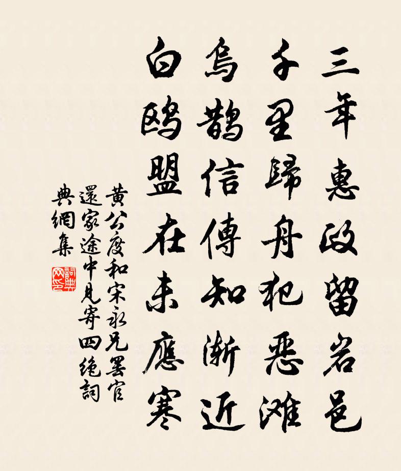 詩詞名句歷史字典書法欣賞書法字典國語詞典說文解字康熙字典古漢語字典標 題 作 者 詩 句 和宋永兄罷官還家途中見寄四絕作者:黃公度 朝代:宋代原文三年惠政留岩邑,千里歸舟犯惡灘。烏鵲信傳知漸近,白鷗盟在未應寒。詩詞問答問:《和宋永兄罷官還家途中見寄四絕》的作者是誰?答:黃公度問:該詩寫於哪個朝代?答:宋代書法欣賞和宋永兄罷官還家途中見寄四絕書法作品詩詞推薦次韻李曼朝散得郡西歸留別二首蘇轍〔宋代〕風波定後得西歸,鳥鵲喧呼里巷知。未熟黃粱驚破夢,相看白髮信乘危。豚肩尚有冬深味,蠶器應逢市合時。父老鳳凰台周邦彥〔宋代〕危台飄盡碧梧花,勝地淒涼屬梵家。鳳入紫雲招不得,木魚堂殿下飢鴉。菩薩蠻·秋風掃盡閒花佚名〔宋代〕秋風掃盡閒花草,黃花不逐秋光老。試與插釵頭,釵頭占斷秋。簪花人有意,共祝年年醉。不用泛瑤觴,花先著酒四安道中所見牟巘五〔宋代〕兒能忍渴留佳醖,我亦開包得快梨。自笑初無泥可洗,頹然還得醉如泥。廣陵送剡縣薛明府赴任許渾〔唐代〕車馬楚城壕,清歌送濁醪。露花羞別淚,菸草讓歸袍。鳥浴春塘暖,猿吟暮嶺高。尋仙在仙骨,不用廢牛刀。芙蓉渡酒店前金沙芍藥盛開楊萬里〔宋代〕山店春光也自妍,芙蓉渡口數家村。筍輿低過金沙架,籬落疏圍芍藥軒。孤客倦遊殊寂寞,兩花作意與溫存。可憐蝦蟆 和張十六。白居易〔唐代〕嘉魚薦宗廟,靈龜貢邦家。應龍能致雨,潤我百穀芽。蠢蠢水族中,無用者蝦蟆。形穢肌肉腥,出沒於泥沙。六月再至洛中寒食梅堯臣〔宋代〕西洛逢寒食,依依似昔年。千門方禁火,九野自生煙。飄泊梨花雨,追隨杏葉韉。遊人莫惜醉,風景滿伊川。游武夷作棹歌呈晦翁十首辛棄疾〔宋代〕山上風吹笙鶴聲,山前人望翠雲屏。蓬萊枉覓瑤池路,不道人間有幔亭。和謝吏部鐵字韻三十四首自敘三首鄧肅〔宋代〕惡聲不入伯夷耳,嚴陵拂袖釣寒水。古來豪傑例幽居,佩{革遂}肯隨舟人子。造化爐中忽為人,笑笑隨緣又何嗔曉入東谷文同〔宋代〕振纓效王官,釋耒去鄉縣。十年始還此,景物覺盡變。東谷素所愛,乍到若創見。煙雲引晨策,數里入蔥蒨。明霞佳雪應時呈司土使君三首朱長文〔唐代〕炫晃天花著物新,壺中萬景淨無塵。光輝只欲饒寒士,清潔尤宜比古人。韋白吟時飄入硯,鄒枚燕處舞回茵。明年頌古十二首釋法泰〔宋代〕十分風采露堂堂,玉蘂瓊華未比量。剛被傍人論好醜,因茲難嫁與潘郎。即事陸游〔宋代〕翁自析薪兒負薪,一生不似此年貧。折除卻得常強健,天定方知果勝人。題鞏縣西門周襄王廟晏殊〔宋代〕人來人去市朝變,山後山前煙霧凝。縈帶二川河洛水,寂寥千古帝王陵。送友罷舉赴邊職李洞〔唐代〕出剡篇章入洛文,無人細讀嘆俱焚。莫辭秉笏隨紅旆,便好攜家住白雲。過水象浮蠻境見,隔江猿叫漢州聞。高談和提刑度支王店雞詩文同〔宋代〕王店有郵吏,養雞殊可笑。昂然處高襟,不肯以時嘂。官有宿此者,西征待初曉。雞竟不一鳴,問吏吏已告。雲此水調歌頭劉辰翁〔宋代〕此夕酹江月,猶記濯纓秋。濯纓又去如水,安得主人留。舊日登樓長笑,此日新亭對泣,禿鬢冷颼颼。木落下極浦題山峽堂張縯〔宋代〕群山危立接雲天,一水東朝會百川。泱漭堪輿無此壯,崔嵬疏鑿定何年。知秋躍馬興亡夢,一點飛鳧上下船。時有頌古釋道顏〔宋代〕半夜墨漆黑,捉得一個賊。點火照來看,元是王大伯。名句推薦年年負卻花期!過春時,只合安排愁緒送春歸。張惠言《相見歡·年年負卻花期》 善無主於心者不留,行莫辯於身者不立。墨子《墨子·02章 修身》 可憐閨里月,長在漢家營。沈佺期《雜詩三首·其三》 憶對中秋丹桂叢。花在杯中。月在杯中。辛棄疾《一剪梅·中秋元月》 燕塞雪,片片大如拳。華清淑《望江南·燕塞雪》 日夕涼風至,聞蟬但益悲。孟浩然《秦中感秋寄遠上人 / 秦中寄遠上人》 縱明月相思千里隔。夢咫尺。勤書尺。賀鑄《琴調相思引·送范殿監赴黃崗》 金陵子弟來相送,欲行不行各盡觴。李白《金陵酒肆留別》 蓬鬢哀吟長城下,不堪秋氣入金瘡。盧綸《逢病軍人》 便覺眼前生意滿,東風吹水綠參差。張栻《立春偶成》