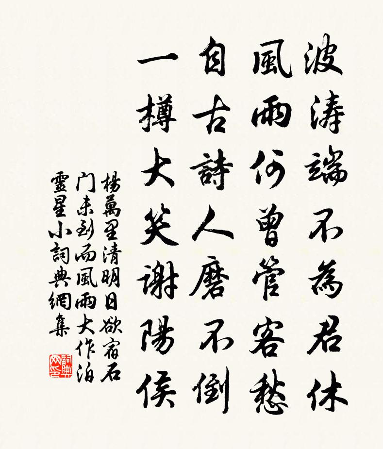 波濤端不為君休,風雨何曾管客愁。自古詩人磨不倒,一樽大笑謝陽侯。