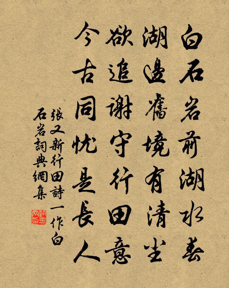 詩詞名句歷史字典書法欣賞書法字典國語詞典說文解字康熙字典古漢語字典標 題 作 者 詩 句 行田詩(一作白石岩)作者:張又新 朝代:唐代行田詩(一作白石岩)原文白石岩前湖水春,湖邊舊境有清塵。欲追謝守行田意,今古同憂是長人。詩詞問答問:行田詩(一作白石岩)的作者是誰?答:張又新問:行田詩(一作白石岩)寫於哪個朝代?答:唐代問:行田詩(一作白石岩)是什麼體裁?答:七絕張又新行田詩(一作白石岩)書法欣賞行田詩(一作白石岩)書法作品注釋全唐詩:卷479-29詩詞推薦山中玩物雜言十首戴表元〔宋代〕圃人憂孽蟲,為蔬畜雞雛。小雞擇蟲啄,大雞遂啄蔬。蟲去蔬亦盡,對之可欷噓。昂昂高冠幘,反不小雞如。系裙腰歐陽修〔宋代〕水軒檐幕透薰風。銀塘外、柳煙濃。方床遍展魚鱗簟,碧紗籠。小墀面、對芙蓉。玉人共處霜鴛枕,和嬌困、睡朦病目洪咨夔〔宋代〕日過學不力,年催名未芳。心期雖皦皦,目視已茫茫。燈疊青紅暈,書紛黑白行。 * 深瞑坐,禪味覺偏長。長相思·村姑兒蔡伸〔宋代〕村姑兒。紅袖衣。初發黃梅插稻時。雙雙女伴隨。長歌詩。短歌詩。歌里真情恨別離。休言伊不知。題蔡州壺仙觀祖無擇〔宋代〕鶯老花殘過禁菸,杖藜閒步到壺仙。仙家本是無塵地,別有風光一洞天。臨江仙辛棄疾〔宋代〕春色饒君白髮了,不妨倚綠偎紅。翠鬟催喚出房櫳。垂肩金縷窄,蘸甲寶杯濃。睡起鴛鴦飛燕子,門前沙暖泥融。題逸少真跡釋善珍〔宋代〕淳化東都群玉府,光蟠虹霓氣龍虎。墨池筆冢千歲精,鸞騫鳳翥來帝庭。帝好文似虬須主,盜奪鬼偷離復聚。珠宮羯鼓縚彭演〔宋代〕長安宮闕半篷蒿,塵暗紅梁羯鼓縚。惟有水天明月夜,一條空碧見秋毫。別東叔西叔二兄於遂寧門外魏了翁〔宋代〕畢逋枝上曉光和,日日庭闈盼樹柯。風送驪歌驚短夢,雲拖鳩雨濕長坡。母心念子無時足,王事催人不奈何。但祝疇依王柏〔宋代〕曾子雖魯,纖悉不遺。吾道一貫,以魯得之。易簀得正,手足斯啟。仁為己任,死而後已。秋日懸清光陶拱〔唐代〕秋至雲容斂,天中日景清。懸空寒色淨,委照曙光盈。泫泫看彌上,輝輝望最明。煙霞輪乍透,葵藿影初生。鑒下十二月二十七日趨溪陳造〔宋代〕西風蜚江浪,江畔那容立。霰花濺千尺,望望客衣濕。小舟艤兩三,人已鵝雁集。側睨波洶洶,俯憐身岌岌。乘凌送暐侍者之湖南劉子翬〔宋代〕茗碗深澆破別愁,摻裾猶得小遲留。不將流落遇知已,故向艱難作遠遊。春動閩山迎兩屐,夜涼楚月趁孤舟。相逢投介庵先生並寄廬陵周侍郎四首趙蕃〔宋代〕忽憶滄洲去,何心漢節持。上書期得請,勇退復奚疑。用舍非吾事,榮枯自彼時。疾風勁草見,松柏歲寒知。侍宴滻水賦得濃字張說〔唐代〕千行發御柳,一葉下仙筇。青浦宸游至,朱城佳氣濃。雲霞交暮色,草樹喜春容。藹藹天旗轉,清笳入九重。念奴嬌(水仙)王千秋〔宋代〕開花借水,信天姿高勝,都無俗格。玉隴娟娟黃點小,依約西湖清魄。綠帶垂腰,碧簪篸髻,索句撩元白。西清微喜雪李處權〔宋代〕剪水適從天上手,綴條不作世間花。柴門有客方高枕,石鼎無人共試茶。清借遠山迎馬出,潤含修竹倚窗斜。令人昭武太守王子文日舉李賈嚴羽共觀前輩一兩家戴復古〔宋代〕作詩不與作文比,以韻成章怕韻虛。押得韻來如砥柱,動移不得見工夫。哭邢芻父六首蘇泂〔宋代〕慟哭叫蒼天,其如手足然。幾年能爾熟,一日棄予先。委翰愁胠篋,賡詩嘆絕弦。求兒方畫褓,有母況華顛。送趙都護赴安西盧象〔唐代〕下客候旌麾,元戎復在斯。門開都護府,兵動羽林兒。黠虜多翻覆,謀臣有別離。智同天所授,恩共日相隨。漢使名句推薦自是荷花開較晚,孤負東風。幼卿《浪淘沙·極目楚天空》 猶傶則疏之,毋使人圖之,猶疏則數之,毋使人曲之管仲《管子·侈靡》 天子居未央,妾侍卷衣裳。李白《秦女卷衣》 傷情處,高城望斷,燈火已黃昏。秦觀《滿庭芳·山抹微雲》 西風吹老洞庭波,一夜湘君白髮多。唐珙《題龍陽縣青草湖》 自與東君作別,剗地無聊。納蘭性德《風流子·秋郊即事》 君莫舞,君不見、玉環飛燕皆塵土!辛棄疾《摸魚兒·更能消幾番風雨》 野曠天清無戰聲,四萬義軍同日死。杜甫《悲陳陶》 過也,人皆見之;更也,人皆仰之。孔子弟子《論語·子張篇》 何處秋風至?蕭蕭送雁群。劉禹錫《秋風引》