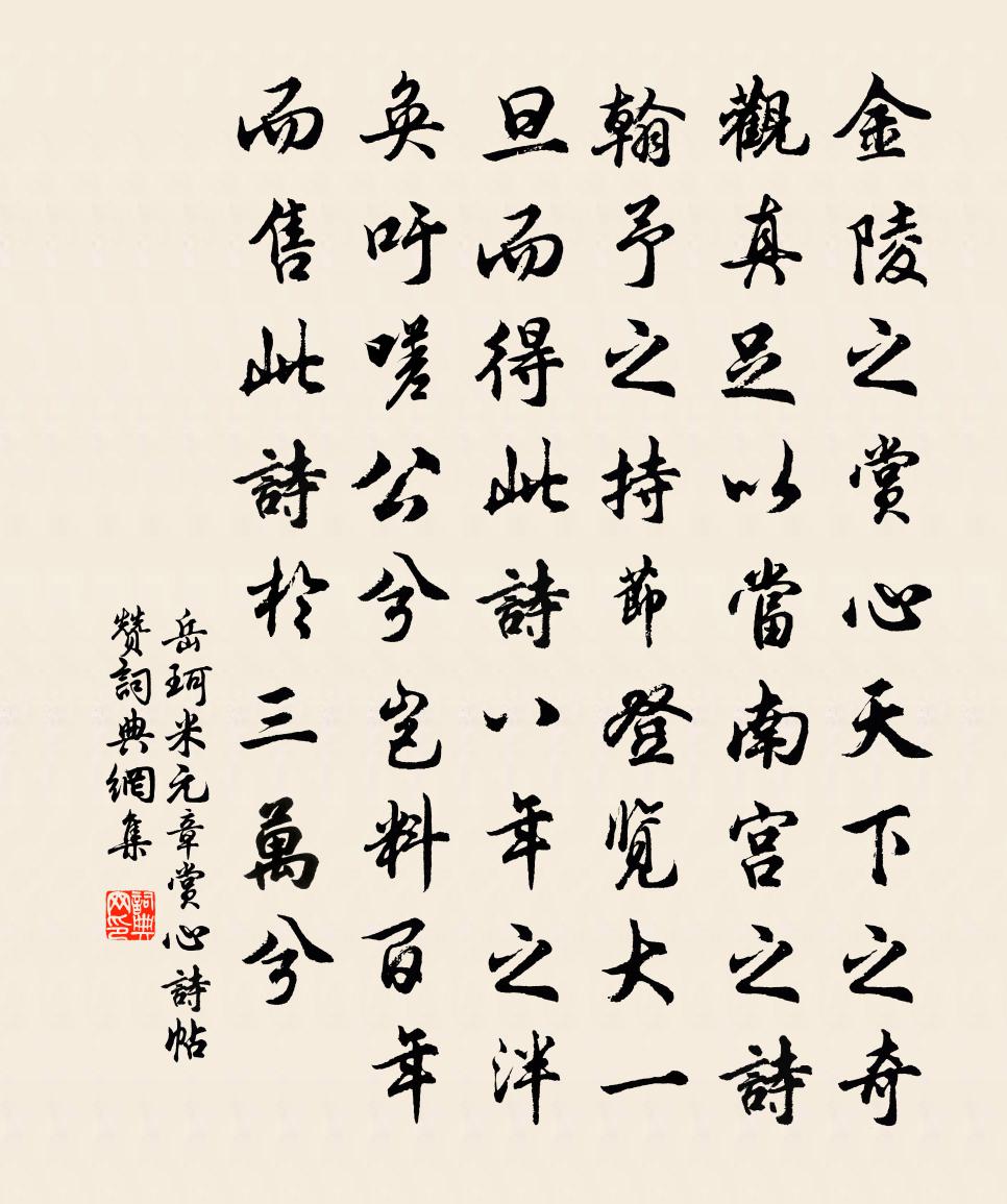 詩詞名句歷史字典書法欣賞書法字典國語詞典說文解字康熙字典古漢語字典標 題 作 者 詩 句 米元章賞心詩帖贊作者:岳珂 朝代:宋代米元章賞心詩帖贊原文金陵之賞心,天下之奇觀,真足以當南宮之詩翰。予之持節登覽大一旦,而得此詩八年之泮奐。吁嗟公兮,豈料百年而售此詩於三萬兮。詩詞問答問:米元章賞心詩帖贊的作者是誰?答:岳珂問:米元章賞心詩帖贊寫於哪個朝代?答:宋代岳珂米元章賞心詩帖贊書法欣賞米元章賞心詩帖贊書法作品詩詞推薦立春帖子皇帝閣周必大〔宋代〕淑氣潛飛玉管灰,無情草木得先知。一如聖主行仁政,晨發岩廊夕海涯。姜春坊以詩編見貽借題雪堂圖韻作詩為謝喻良能〔宋代〕紅顏話別浦邊秋,白髮同為帝里留。璧水庸庸參末坐,春坊犖犖冠名流。功名君且登麟閣,出處吾行具釣舟。餉我郡樓龔璛〔元代〕久客有遠思,肩輿登郡樓。聊為避暑飲,更學御風游。疊翠城南面,雙虹水北流。流將五湖去,葉葉采蘋舟。禪人並化主寫真求贊釋正覺〔宋代〕發白面黃,鼻直口方。雲水精神老,叢林氣味長。青蛇露時星爛爛,白鳥沒處煙蒼蒼。印空有據,印泥成章。家家怨王孫/憶王孫李清照〔宋代〕湖上風來波浩渺。秋已暮、紅稀香少。水光山色與人親,說不盡、無窮好。蓮子已成荷葉老。青露洗、苹花汀草。浣沙溪汪莘〔宋代〕屬余賦詞。遂以此意賦之。二月初二夜白日青天蘸水開。落花江上玉鞭回。東君擎出牡丹來。獨占洛陽春氣足,遂和毛君州宅八詠其五李八百洞蘇轍〔宋代〕洞府山川百里賒,洞門藤蔓鎖煙霞。神仙不與人間異,弟妹還應共一家。溪行即事靈一〔唐代〕近夜山更碧,入林溪轉清。不知伏牛事,潭洞何從橫。野岸煙初合,平湖月未生。孤舟屢失道,但聽秋泉聲。病中二首李新〔宋代〕林間風氣杳無蹤,欲遣誰人慰病慵。丐友何顏堪著論,祭拿無淚可沾胸。不知心逐搖搖旆,反為官憐楚楚松。最是清平樂(游石頭城)史浩〔宋代〕石頭虎踞。驕虜何能渡。曾是六朝雄勝處。瑞繞碧江雲路。當時霸國多賢。風流只解遺鞭。便好揚舲北伐,舉頭即山居避難六首陳著〔宋代〕宦遊二十載,時異即東還。勇棄斗升給,本無分寸攀。家貧空歸巧,學廢重時頑。平世已無況,況巢松竹關。代人上師垣生辰仲並〔宋代〕直把孤忠動帝聰,平生房杜不言功。沖霄鸞鳳謀謨合,遮道豺狼黨與空。韜略暇時談笑裹,勛名他日畫圖中。中書次韻謝史提乾見知馮伯規〔宋代〕呼得蜿蜒入小瓴,便能飛雨挾林坰。油雲頓失千山赤,丹篆嘗騰一紙青。漢節可眠知免曠,仙祠屢扣信通靈。欲同書所見聞示諸友魏了翁〔宋代〕行到青天最上頭,蜀人爭盾錦衣游。誰知一夜北風惡,吹起家山萬斛愁。南陽春日十首陳舜俞〔宋代〕半生名宦是塗顏,菽水當年尚可歡。鐘鼎未能光祖妣,牛羊雖美愧杯盤。五千強誦誰雲補,四十無聞得自安。不覺禪人寫師真請贊釋慧遠〔宋代〕星馳電掣,漢語胡言。驀地揭起腦蓋,依前舌拄梵天。咄,是甚麽面目?可憐只有些兒栗棘金圈,盡底分付常山林客有遺予畫梅花者淡墨暈成因命之曰梅影曹緯〔宋代〕憶昔神遊姑射山,夢中栩栩片時還。冰膚不許尋常見,故隱輕雲薄霧間。和陸明府贈將軍重出塞陳子昂〔唐代〕忽聞天上將。關塞重橫行。始返樓蘭國。還向朔方城。黃金裝戎馬。白羽集神兵。星月開天陣。山川列地營。晚風挽張舍人安國四首王阮〔宋代〕近別逾旬朔,俄傳訃問來。初疑餘子謗,漸沸使人猜。竟作青黃木,終成犯怒雷。數行衰淚盡,吾意獨憐才。陪新進士公宴用太守韻劉克莊〔宋代〕去年黃敕許懷歸,拭目鄉邦一段奇。老馬不堪空冀野,大鵬自合化天池。瓊林花發渾如昨,玉塞鋒銷未有期。汲汲名句推薦君言不得意,歸臥南山陲。王維《送別》 夕陽無限好,只是近黃昏。李商隱《樂遊原 / 登樂遊原》 福來有由,禍來有漸。陳壽《三國志·吳書·吳主五子傳》 有功於前,有敗於後,不為損刑。有善於前,有過於後,不為虧法。商鞅《商君書·賞刑》 俯視洛陽川,茫茫走胡兵。李白《古風·其十九》 豈曰無衣?與子同袍。佚名《秦風·無衣》 不用訴離觴,痛飲從來別有腸。蘇軾《南鄉子·和楊元素時移守密州》 停杯投箸不能食,拔劍四顧心茫然。李白《行路難·其一》 己欲立而立人,己欲達而達人。孔子弟子《論語·雍也篇》 以近知遠,以一知萬,以微知明。此之謂也。荀子《荀子·非相》