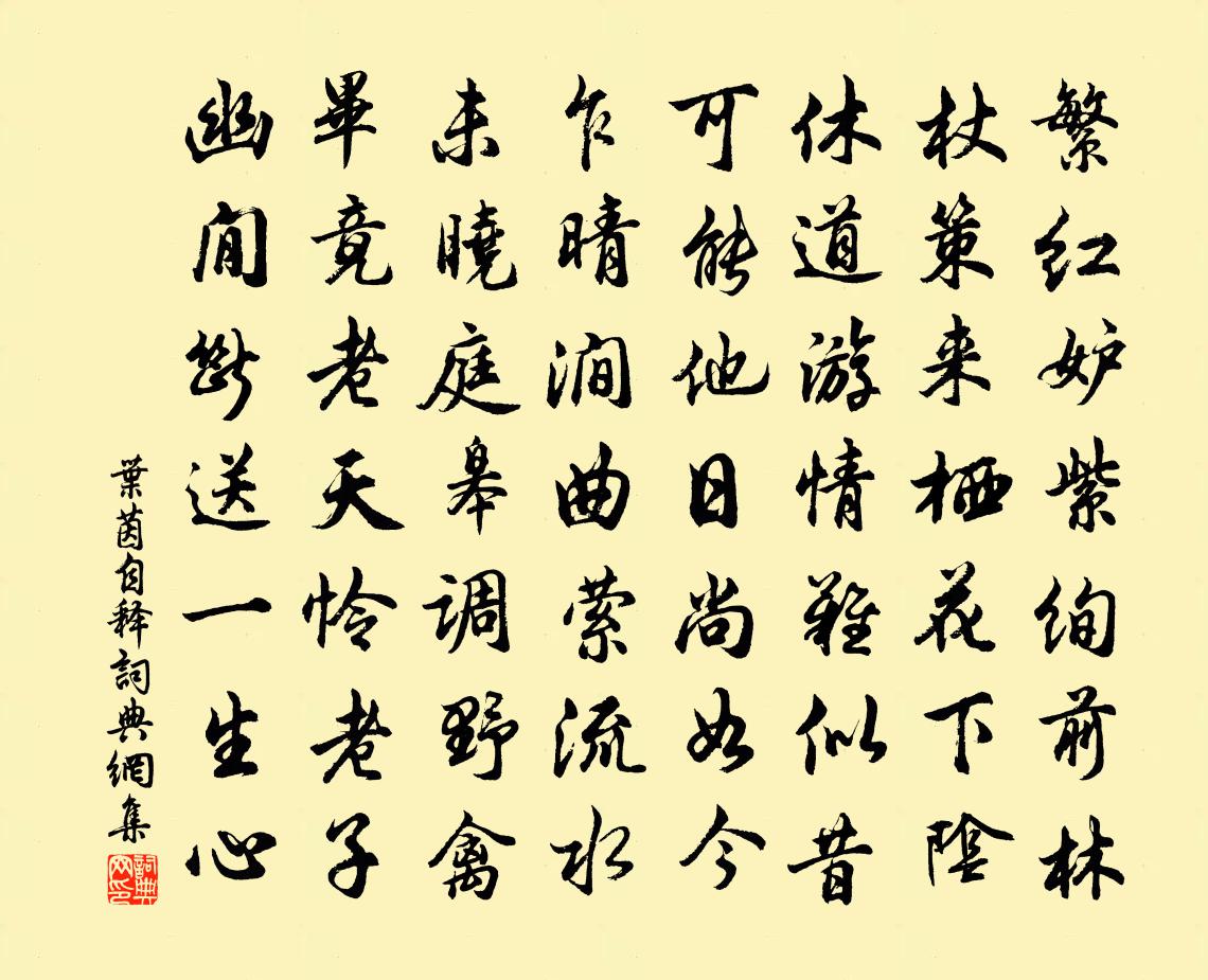 詩詞名句歷史字典書法欣賞書法字典國語詞典說文解字康熙字典古漢語字典標 題 作 者 詩 句 自釋作者:葉茵 朝代:宋代自釋原文繁紅妒紫絢前林,杖策來棲花下陰。休道游情難似昔,可能他日尚如今。乍晴澗曲縈流水,未曉庭皋調野禽。畢竟老天憐老子,幽閒斷送一生心。詩詞問答問:自釋的作者是誰?答:葉茵問:自釋寫於哪個朝代?答:宋代葉茵自釋書法欣賞自釋書法作品詩詞推薦子夜四時歌 夏歌 二蕭衍〔南北朝〕閨中花如繡。簾上露如珠。欲知有所思。停織復歭{止屠}。贈孫先生石介〔宋代〕世無伯樂不識馬,眼看騏驥如駑駘。先生今年四十四,才似皋夔胡為哉。泰山山下水照石,溪聲濊濊白雲堆。我居同次公觀細陂,小坐行店楊萬里〔宋代〕店歇疑為旅,溪行當出郊。莓苔依斷蓼,翡翠上寒梢。予解邑過杭遇介之學士謁告南歸強至〔宋代〕同時兩郡冠鄉書,屈指俄經一紀餘。顧我冗塗移蹇足,羨君榮路駕奔車。方從解紱辭岩邑,已見飛章厭石渠。自古初寒陸游〔宋代〕今日霜露冷,凜然悲暮秋。垂帷跨微火,發篋出輕裘。徂歲逝將換,殘生愈覺浮。一杯還自閔,小獵記梁州。東齋雜書陸游〔宋代〕藥與疾相當,何恙不能已。良醫善用藥,疾去藥亦止。晨晡節飲食,勞佚時臥起。藉臼米長生,耄期直易爾。曉自銀林至東灞登舟,寄宣城親戚范成大〔宋代〕曉山障望眼,脈脈紫翠橫。澄江已不見,況乃江上城。結束治野裝,木末浮三星。羸馬隴頭嘶,小車谷中鳴。亭亭金陵舊院蔣超〔清代〕錦袖歌殘翠黛塵,樓台塌盡曲池湮。荒園一種瓢兒菜,獨占秦淮舊日春。年華陳杰〔宋代〕年華機事息,世故妄心空。一笑播糠眯,多生聞蟻聰。體中痴黠半,酒外醉醒同。天運端如此,聊師五柳翁。寄夾谷書隱何夢桂〔宋代〕巔崖一落費攀躋,汲綆千尋重挈提。往事雪中鴻印跡,舊恩堂上燕銜泥。錢塘東去江濤遠,銀漢西流斗柄低。天地奉和御製殿前松兼以書事徐鉉〔唐代〕長松修斡列承明,虎盼龍盤氣貌靈。風度乍聞琴曲調,巢高初見鶴儀形。枝智慧型陛戟寒生檻,葉帶鑪煙翠滿庭。澗武陵龍興觀黃道士房問易因題王昌齡〔唐代〕齋心問易太陽宮,八卦真形一氣中。仙老言余鶴飛去,玉清壇上雨濛濛。次馬承議韻李復〔宋代〕浮雲飄忽竟多姿,蒼狗須臾化白衣。對客莫思捫虱語,乘風且共跨鯨歸。岩岩清壁三千仞,鬱郁寒松四十圍。君看送張丞歸平江吳儆〔宋代〕來何遲暮去何忙,不道離人慾斷腸。清節如君誰可繼,遺風他日愈難忘。鱸肥酒熟歸時好,水綠山青去興長。便恐頌古一百則釋正覺〔宋代〕沒蹤跡,斷訊息。白雲無根,清風何色。散乾蓋而非心,持坤輿而有力。洞千古之淵源,造萬像之模則。剎塵道會題聽松亭釋文珦〔宋代〕別駕公事閒,翦棘開三徑。天風引長松,蕭蕭滿清聽。坐石琴意真,憑闌醉魂醒。亦使山中人,悠然動歸興。華清宮張玉孃〔宋代〕柳暗春風遠,花飛香夢殘。夜深明月度,寂寞玉雕蘭。醉落魄·離京口作蘇軾〔宋代〕輕雲微月,二更酒醒船初發。孤城回望蒼煙合。記得歌時,不記歸時節。巾偏扇墜藤床滑,覺來幽夢無人說。此生泊舟吳商浩〔唐代〕身逐煙波魂自驚,木蘭舟上一帆輕。雲中有寺在何處,山底宿時聞磬聲。余與李廌方叔相知久矣領貢舉事而李不得第愧蘇軾〔宋代〕與君相從非一日,筆勢翩翩疑可識。平時謾說古戰場,過眼終迷日五色。我慚不出君大笑,行止皆天子何責。青袍名句推薦去年今日臥燕台,銅鼓中宵隱地雷王守仁《元夕二首》 更可惜,雪中高樹,香篝熏素被。周邦彥《花犯·小石梅花》 吳洲春草蘭杜芳,感物思歸懷故鄉。宋之問《寒食江州滿塘驛》 兩情若是久長時,又豈在朝朝暮暮。秦觀《鵲橋仙·纖雲弄巧》 凡所有相。皆是虛妄。若見諸相非相。則見如來。鳩摩羅什譯《金剛經·如理實見》 中年親友難別,絲竹緩離愁。蘇軾《水調歌頭·安石在東海》 寒英坐銷落,何用慰遠客。柳宗元《早梅》 戲馬台南山簇簇,山邊飲酒歌別曲。張籍《送遠曲》 斑竹枝,斑竹枝,淚痕點點寄相思。劉禹錫《瀟湘神·斑竹枝》 素衣莫起風塵嘆,猶及清明可到家。陸游《臨安春雨初霽》