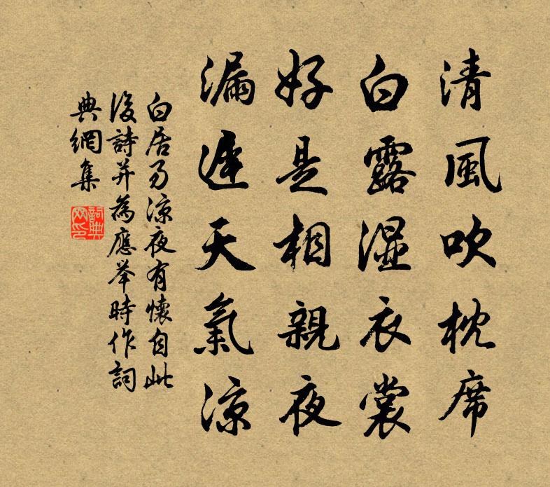 清風吹枕席,白露濕衣裳。好是相親夜,漏遲天氣涼。