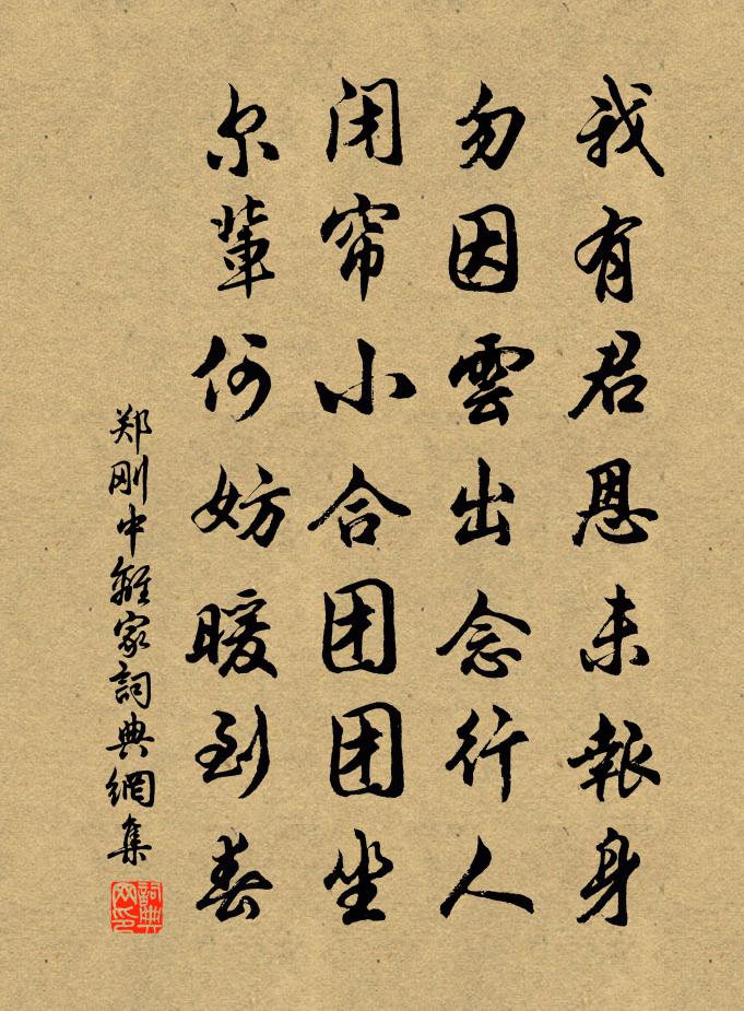 詩詞名句歷史字典書法欣賞書法字典國語詞典說文解字康熙字典古漢語字典標 題 作 者 詩 句 離家作者:鄭剛中 朝代:宋代離家原文我有君恩未報身,勿因雲出念行人。閉簾小合團團坐,爾輩何妨暖到春。詩詞問答問:離家的作者是誰?答:鄭剛中問:離家寫於哪個朝代?答:宋代鄭剛中離家書法欣賞離家書法作品詩詞推薦??亭山頂白龍穴蔡肇〔宋代〕南山咚咚天作鼓,號召諸龍盡行雨。惟有禿角最先到,潑墨雲中鱗鬣舞。品畫袁枚〔清代〕品畫先神韻,論詩重性情。蛟龍生氣盡,不若鼠橫行。十七日集清湖劉子翬〔宋代〕石堤蟠素虬,捍此百尺灣。臨灣喚客飲,四座搖潺湲。殘歊紅盪析,凜若超塵寰。卻愁涼吹多,奪我酣醉顏。時方公子重耳對秦客佚名〔先秦〕晉獻公之喪,秦穆公使人吊公子重耳,且曰:“寡人聞之,亡國恆於斯,得國恆於斯。雖吾子儼然在憂服之中,喪讀可翁閒坐偈蒲壽宬〔宋代〕夜久風浪息,驪龍弄頷珠。水怪不敢動,明月滿江湖。和陳必強韻廖行之〔宋代〕三旌之位不足貴,萬鍾於我其何加。誰如日欲無骨相,底用眼眩鳩盤茶。喔詩清籟助蕭爽,角壯餘子空雄夸。東洋秦人謠佚名〔先秦〕天帝醉秦暴。金誤隕石墜。楚天王安石〔宋代〕楚天如夢水悠悠,花底殘紅漫不收。獨繞去年揮淚處,還將牢落對滄洲。醉落魄/一斛珠佚名〔宋代〕梅花似雪。賞花記得同歡悅。更闌猶自貪攀折。不 * ,須要待明月。如今月上花爭發。疏枝冷蕊對離缺。人心雙雁兒楊無咎〔宋代〕休驚明日歲華新。且喜得,又逢春。北堂歌舞奉慈親。願遐齡,等大椿。□□□□□□□。□□□,□□□。□□錦堂春司馬光〔宋代〕紅日遲遲,虛郎轉影,槐陰迤邐西斜。彩筆工夫,難狀晚景煙霞。蝶尚不知春去,謾繞幽砌尋花。奈猛風過後,縱宿楚國寺有懷趙嘏〔唐代〕風動衰荷寂寞香,斷煙殘月共蒼蒼。寒生晚寺波搖壁,紅墮疏林葉滿床。起雁似驚南浦棹,陰雲欲護北樓霜。江邊官滿趨朝留滯吳門即事書懷十首仲並〔宋代〕燕羽差池何處歸,銜恩春傍主人飛。定須借與一巢穩,十載飄零事事非。偈頌七十八首釋正覺〔宋代〕丙丁童子來求火,南海波斯鼻孔大。鋯獠舌頭會者難,直下而今照得破。照得破,沒功過。知你被底穿,曾與同床薌林五十詠泛宅楊萬里〔宋代〕猶道山中淺,仍移水上居。俗人又剝啄,掉入白芙蕖。掃苔倪槐坡〔宋代〕紙屏竹榻亦生涯,掩上柴扉不用推。人似春雲離複合,愁如潮水去還來。壺頭新釀今朝熟,籬腳寒梅昨夜開。岳頂往在杜甫〔唐代〕往在西京日,胡來滿彤宮。中宵焚九廟,雲漢為之紅。解瓦飛十里,繐帷紛曾空。疚心惜木主,一一灰悲風。合昏踏莎行(和田守)阮閱〔宋代〕驛使初回,新陽才報。時和倍覺青春早。華燈和月擁朱轓,花間萬點寒星小。團扇歌清,重裀舞妙。遊人只恐歸來代人悼亡魚玄機〔唐代〕曾睹夭桃想玉姿,帶風楊柳認蛾眉。珠歸龍窟知誰見,鏡在鸞台話向誰。從此夢悲煙雨夜,不堪吟苦寂寥時。西山蘇溪特護坐禪岩釋智朋〔宋代〕當機突出鴨吞螺,奈此懸崖峭壁何。等是蘇溪蹲坐處,且非蒼檜影婆娑。名句推薦人生在勤,不索何獲。范曄《後漢書·列傳·張衡列傳》 古之史也辯道,今之史也耀文。王通《中說·卷三·事君篇》 與人不求備,檢身若不及佚名《尚書·商書·伊訓》 人間四月芳菲盡,山寺桃花始盛開。白居易《大林寺桃花》 忽如一夜春風來,千樹萬樹梨花開。岑參《白雪歌送武判官歸京》 寄治亂於法術,托是非於賞罰韓非及後人《韓非子·大體》 忍淚佯低面,含羞半斂眉。韋莊《女冠子·四月十七》 我居北海君南海,寄雁傳書謝不能。黃庭堅《寄黃幾復》 相送巴陵口,含淚上舟行。陳子龍《三洲歌》 廄馬散連山,軍容威絕域。李白《君子有所思行》